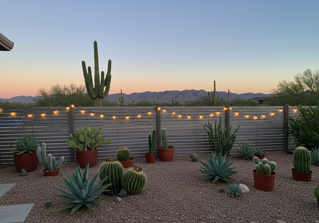 native courtyard landscaping reflects the existing landscape beyond the fence line