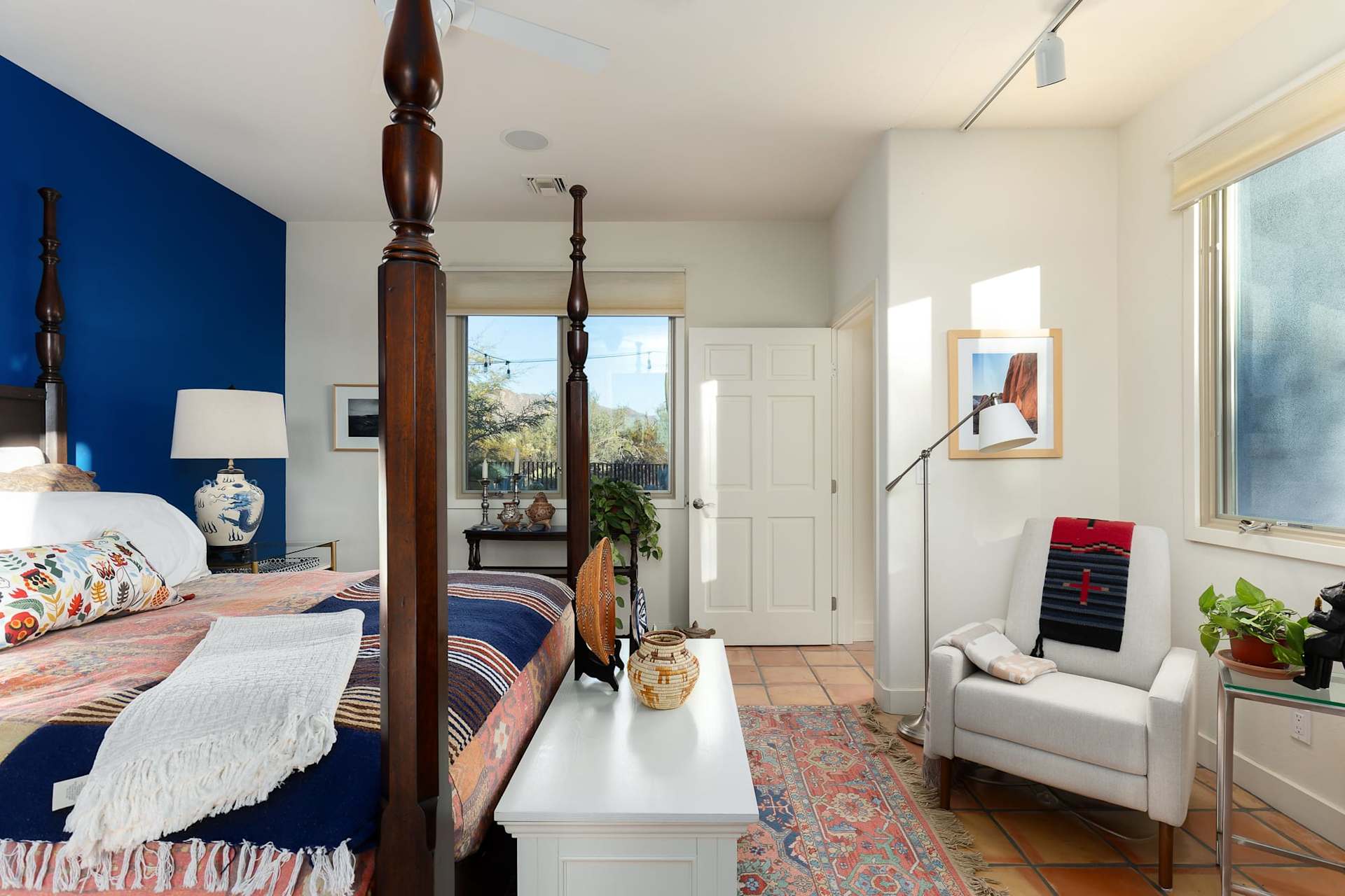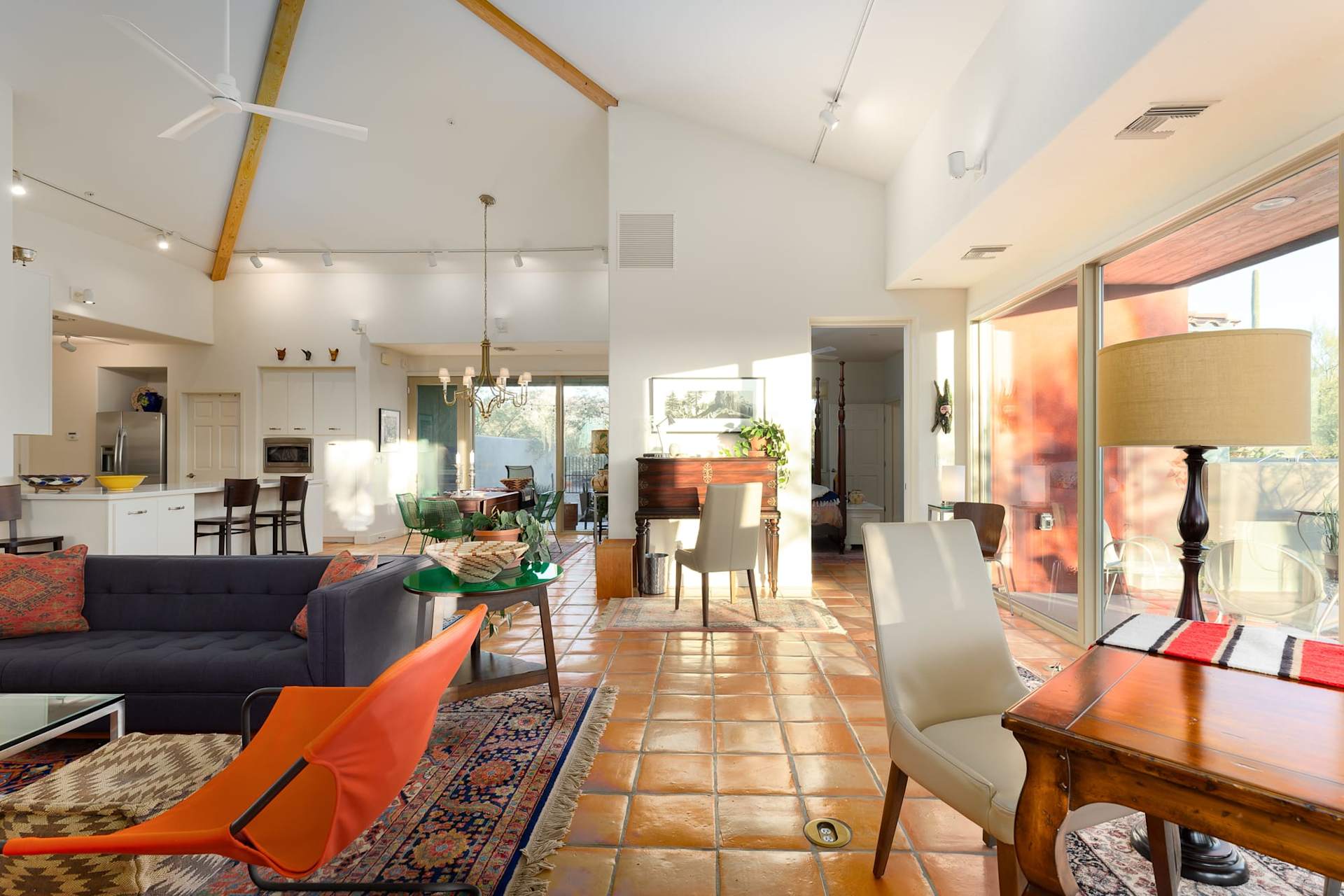 T: I’m an architectural photographer and was immediately taken with the enormous amount of light entering the house, bringing the outdoors into a space that blends strong modern lines with a traditional southwest feel. The strong use of color deepens both design aspects. But as distinct as the design is, the house sits comfortably in the surrounding desert, its proportions, unlike many houses, never upstaging the landscape. It’s a unique and thoughtful vision that really resonates for me.