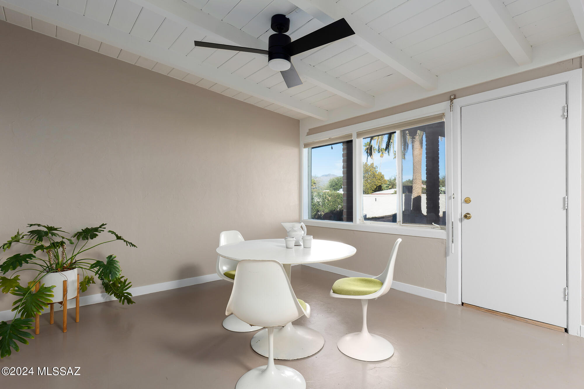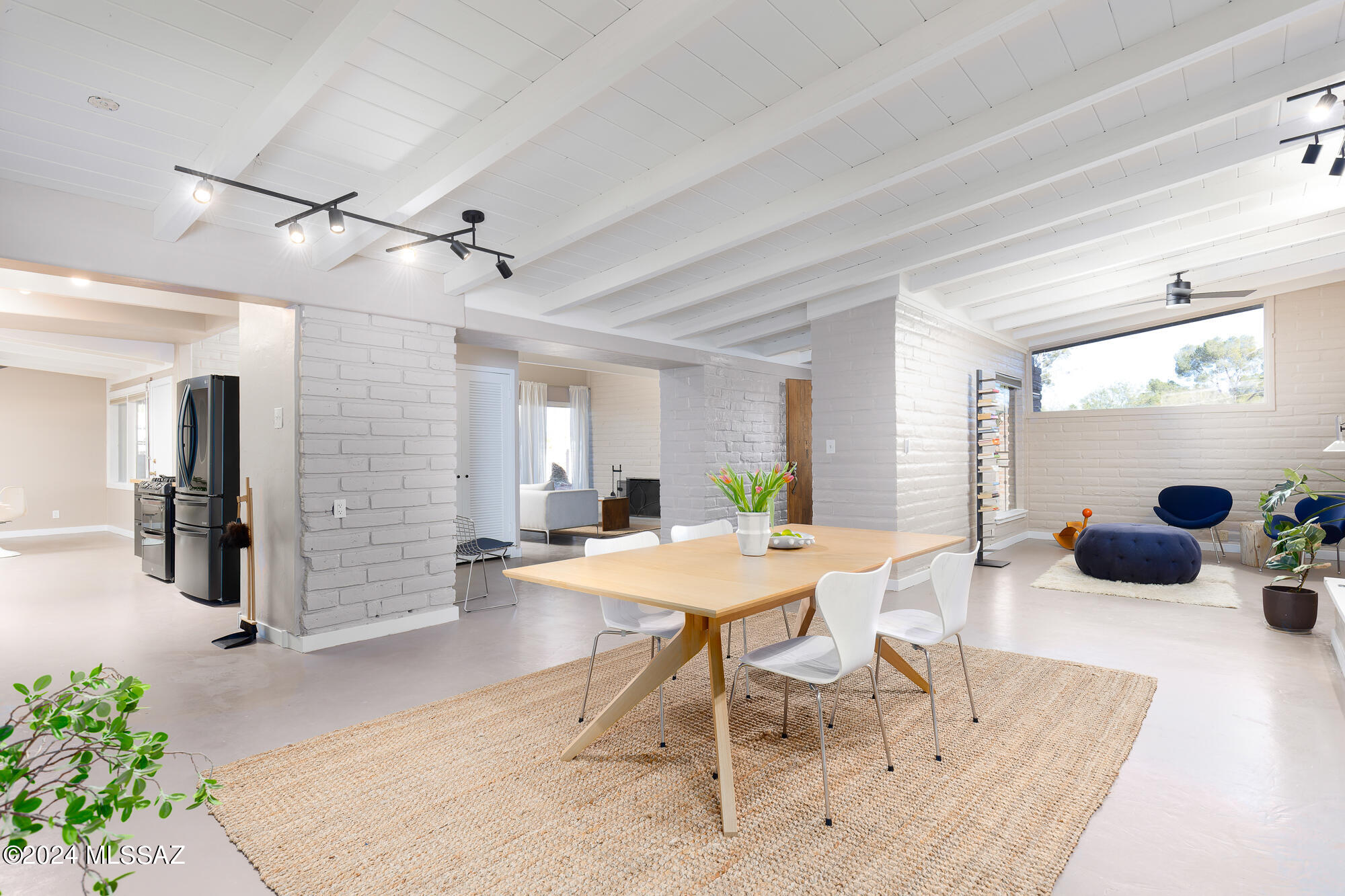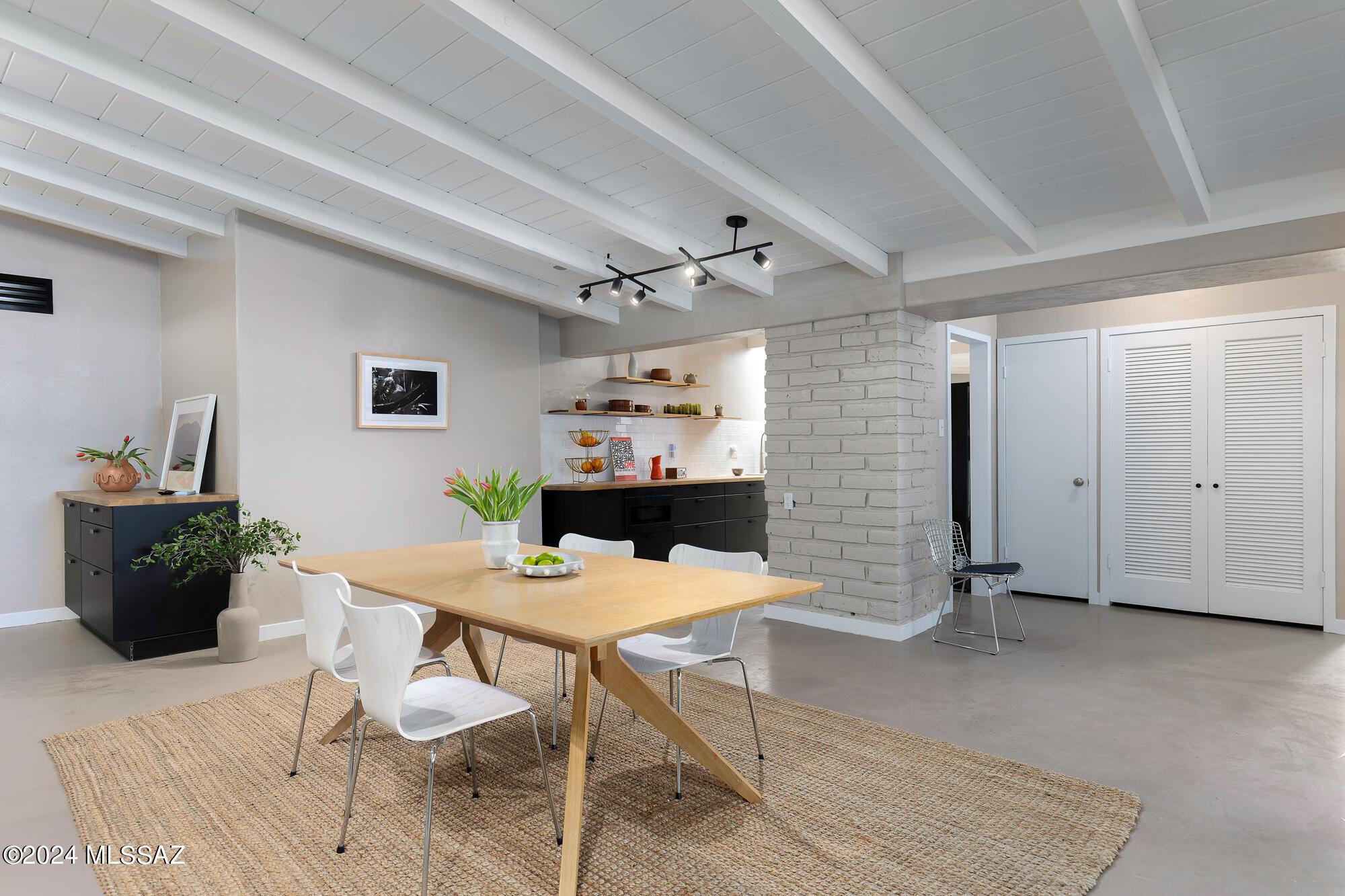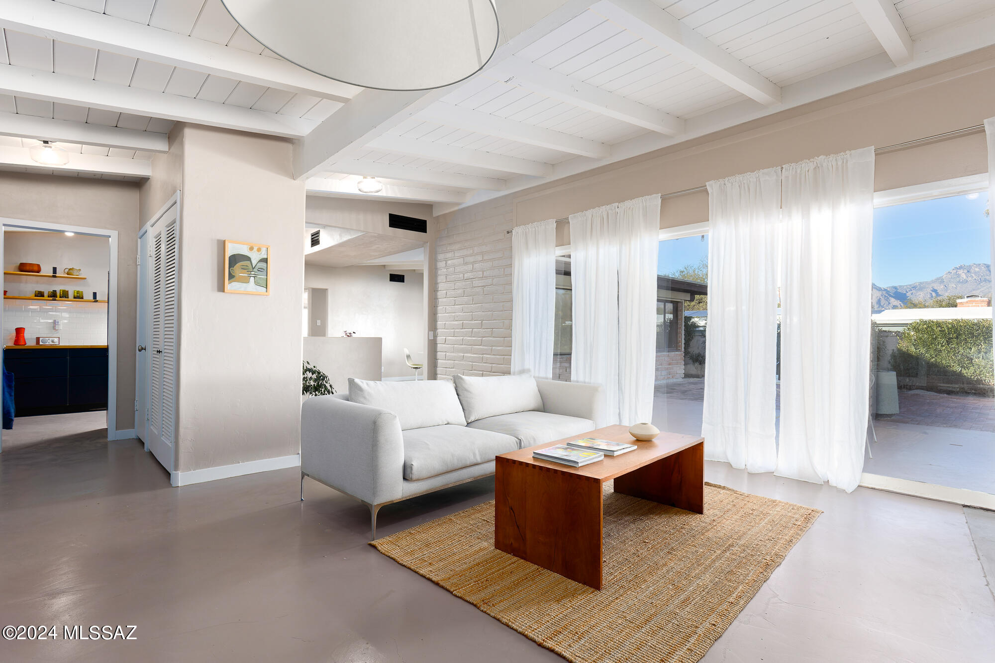 Thoughtfully updated mid-century modern nestled into the sought after Indian Ridge community. Perched on an elevated lot with breathtaking views of the Catalinas. Originally designed by Arthur H. Rada and Ray Kruger for Lusk, the open floor plan offers multiple living and dining areas that are perfect for entertaining. The updated kitchen with stainless appliances complements the original feel of the home. With 5 bedrooms and 2 baths, the layout offers additional space for offices or an art studio.