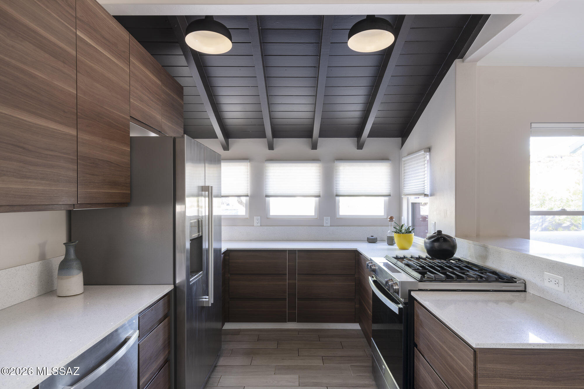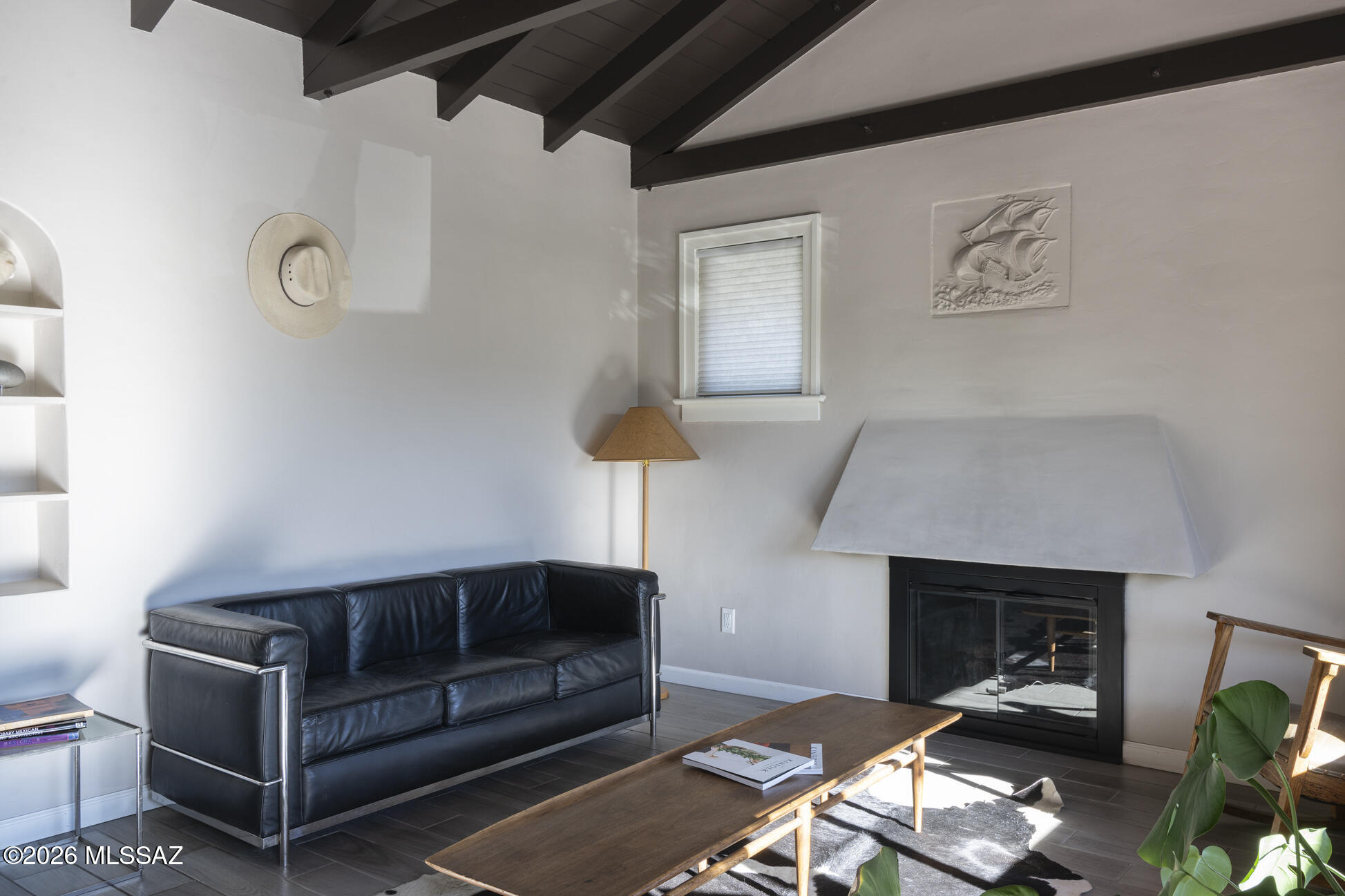 Updated bungalow in historic Rincon Heights, just steps from the University of Arizona. Extensively renovated in 2020 and well maintained by the current owners, this 2-bedroom, 2-bath home offers 1,158 square feet of comfortable living with a bright, modern interior. Features include beamed ceilings, built-ins, ceramic plank flooring, and abundant natural light throughout.
