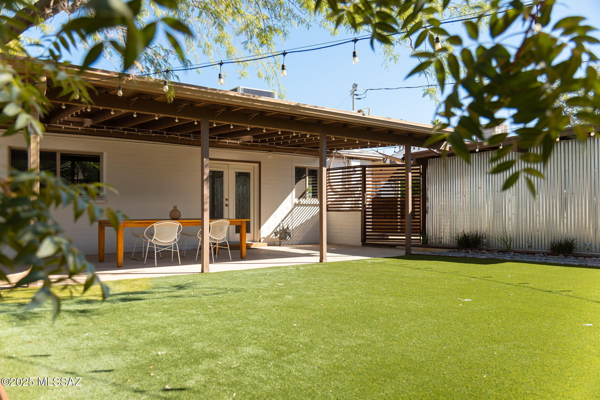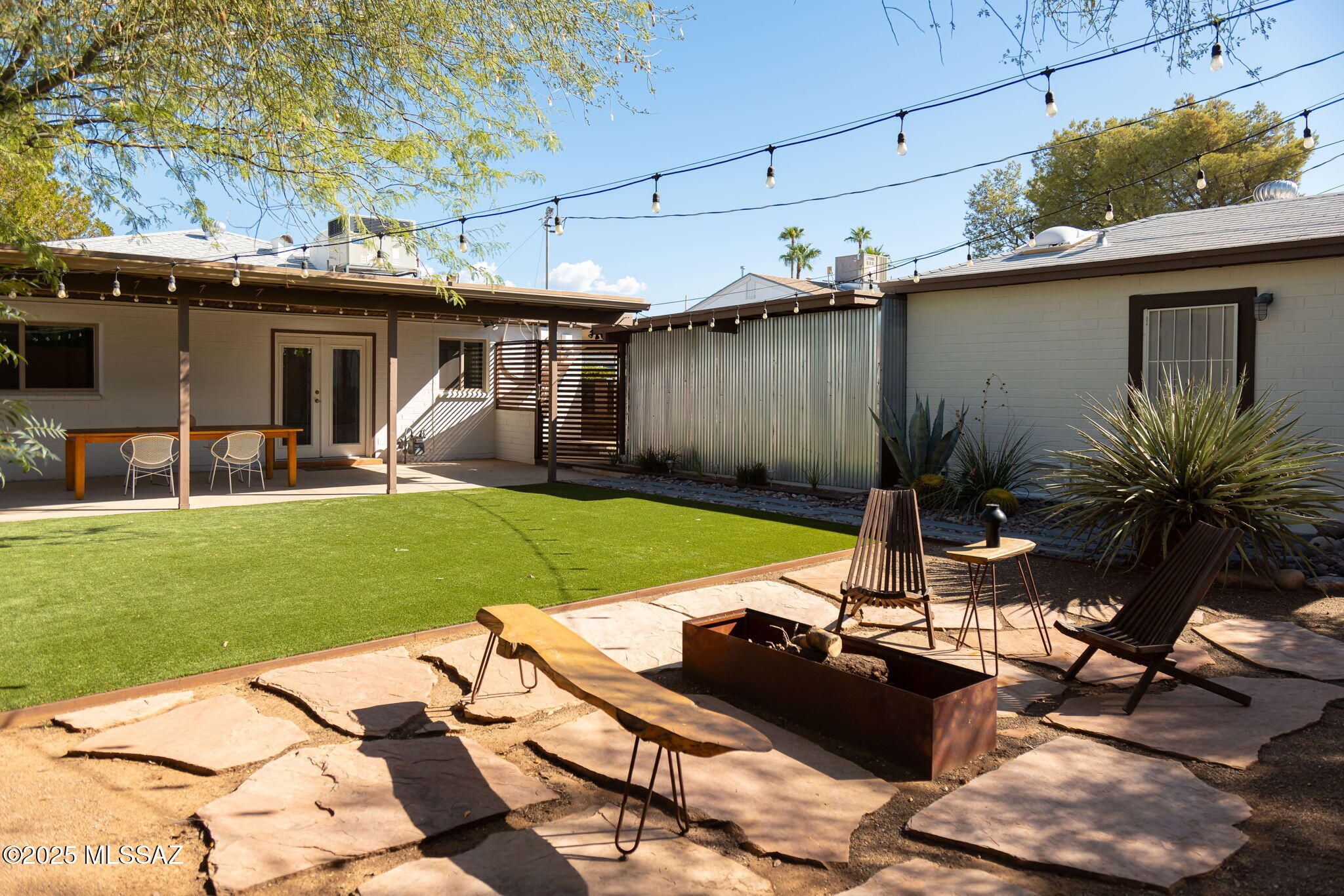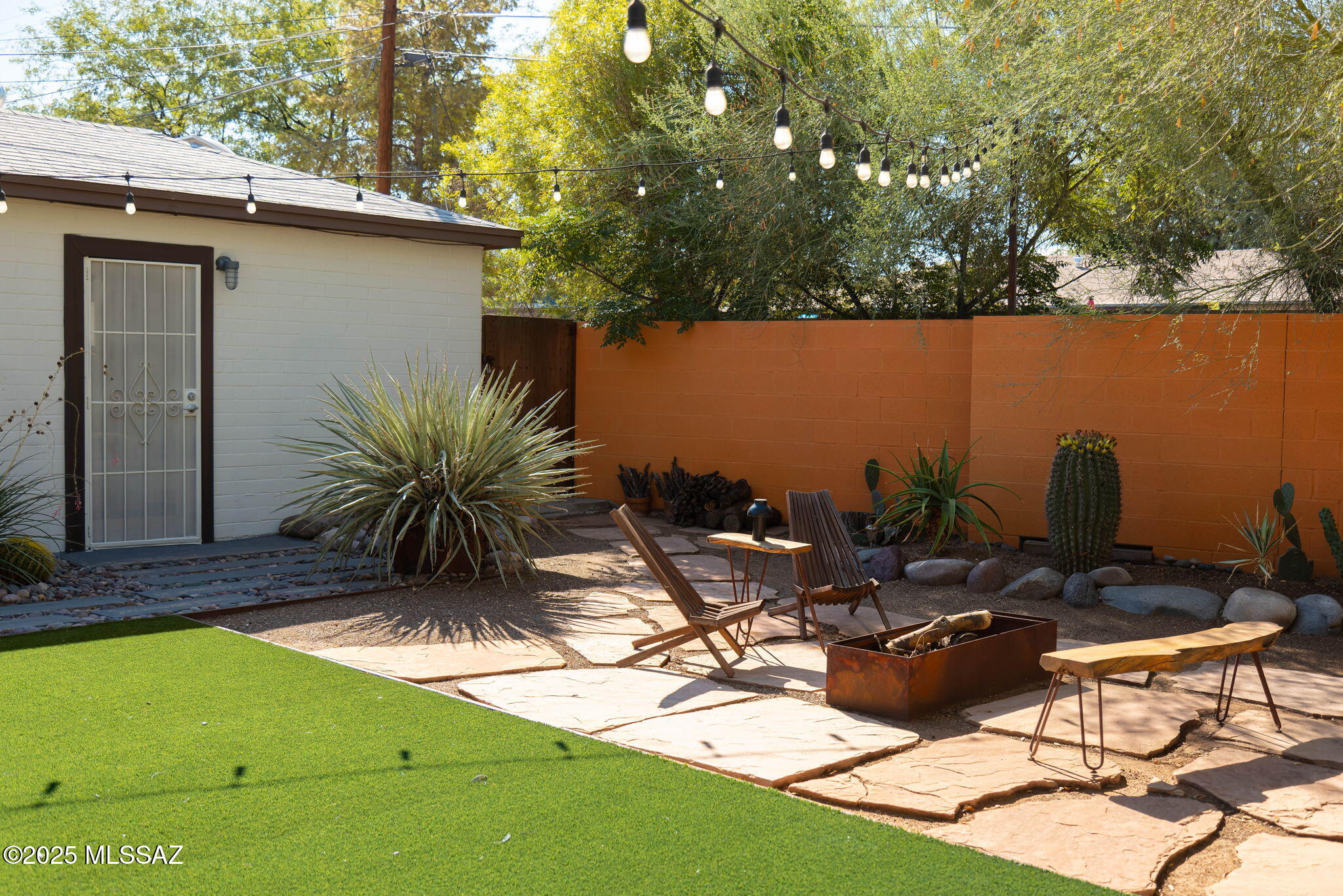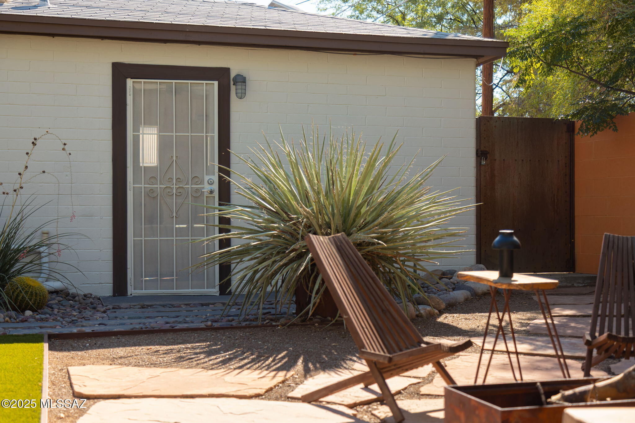 Tucked into Tucson's historic Poets Square, this 1949 ranch home blends mid-century character with modern comfort. The 1,188 sq. ft. main house offers three bedrooms and one-and-a-half baths, arranged in a layout that feels more spacious than its size suggests. Thoughtfully updated with a renovated kitchen, refreshed baths, new roof, dual cooling systems, and recent interior and exterior paint. Light filters easily through replaced windows, while upgraded systems--plumbing, electrical, and HVAC--add peace of mind. A 301 sq. ft. guest house with its own bath and mini split extends the home's versatility, perfect for guests, work, or studio space. Outdoors, mature landscaping, turf installation, and a motorized gate create a private retreat with ease of use.