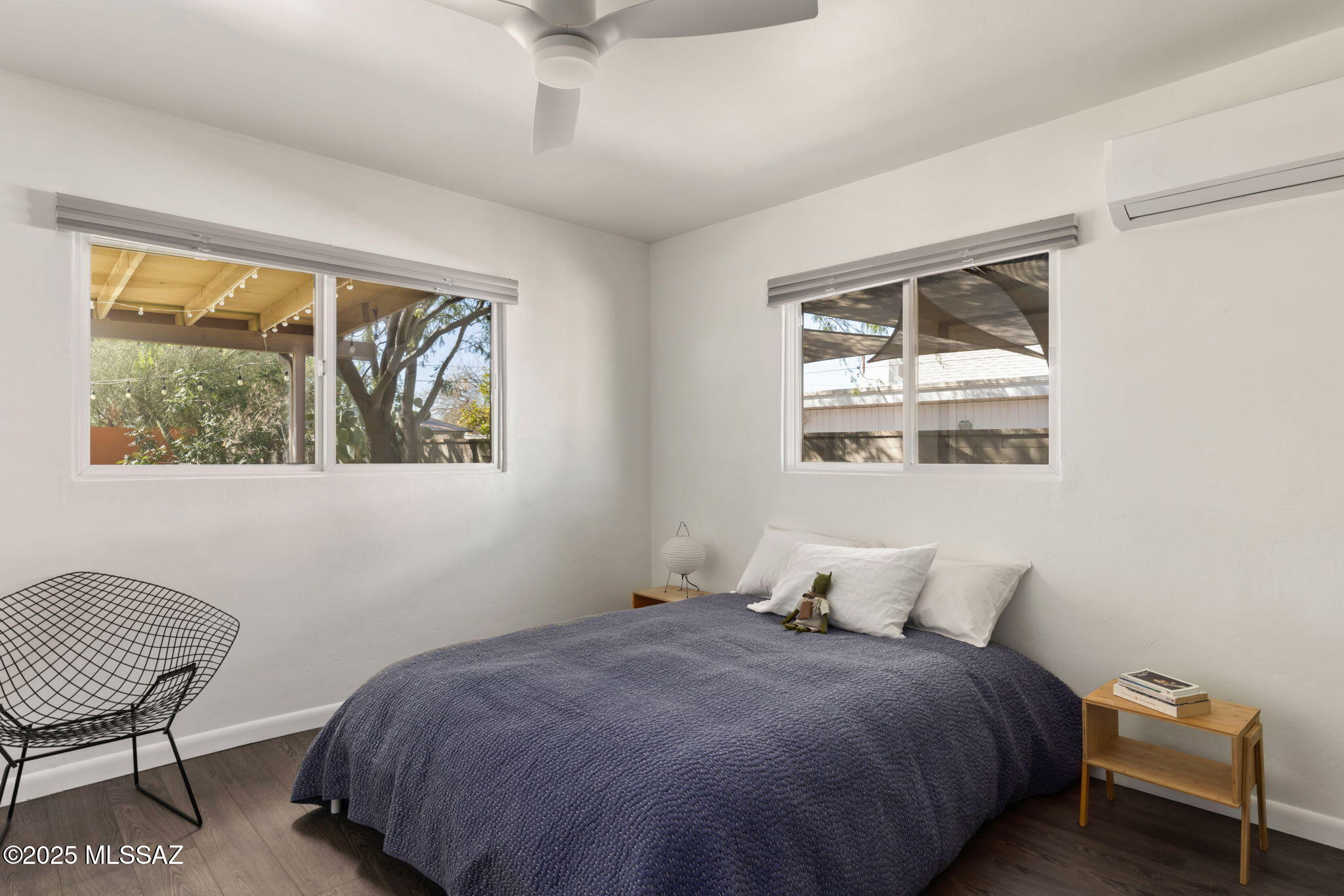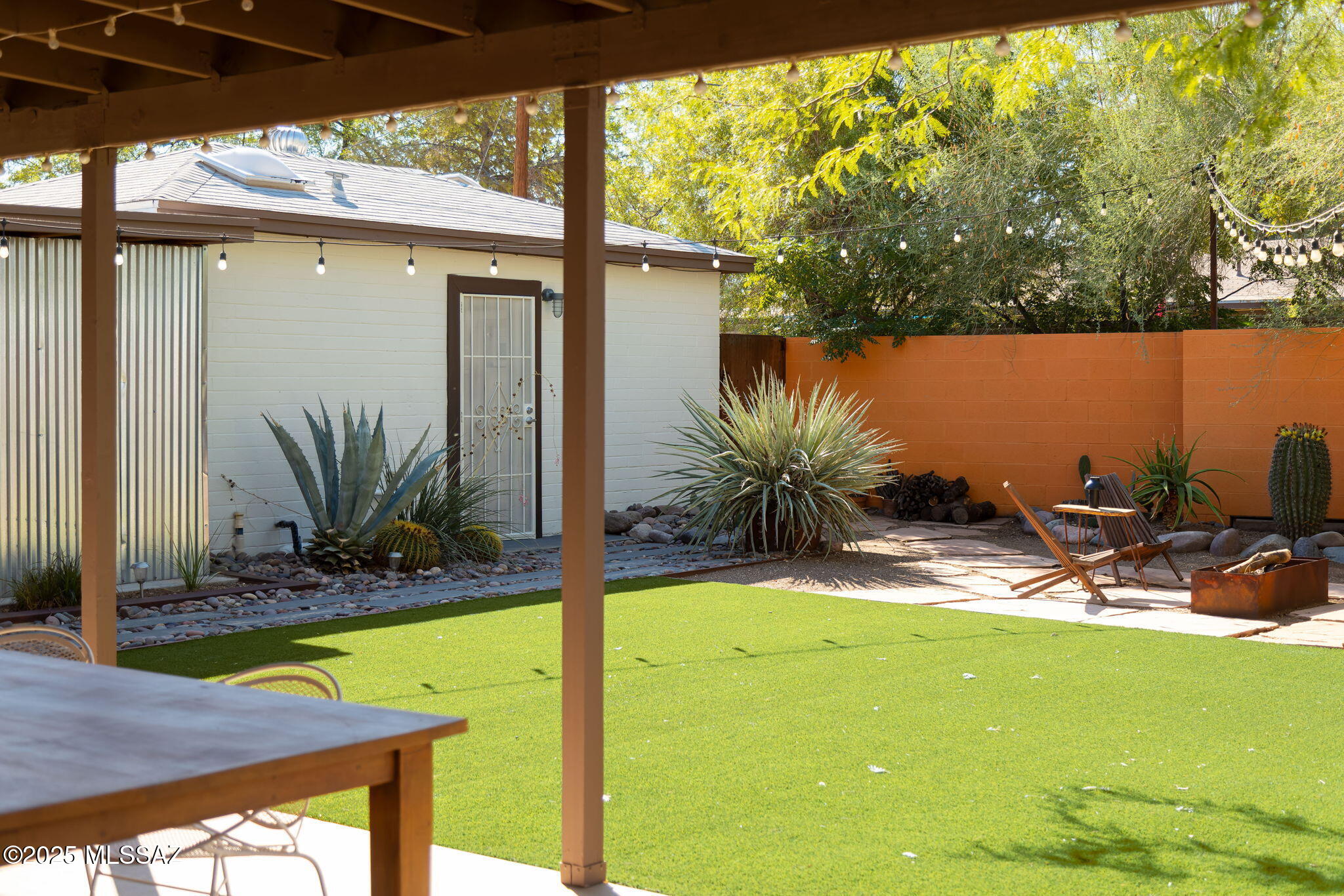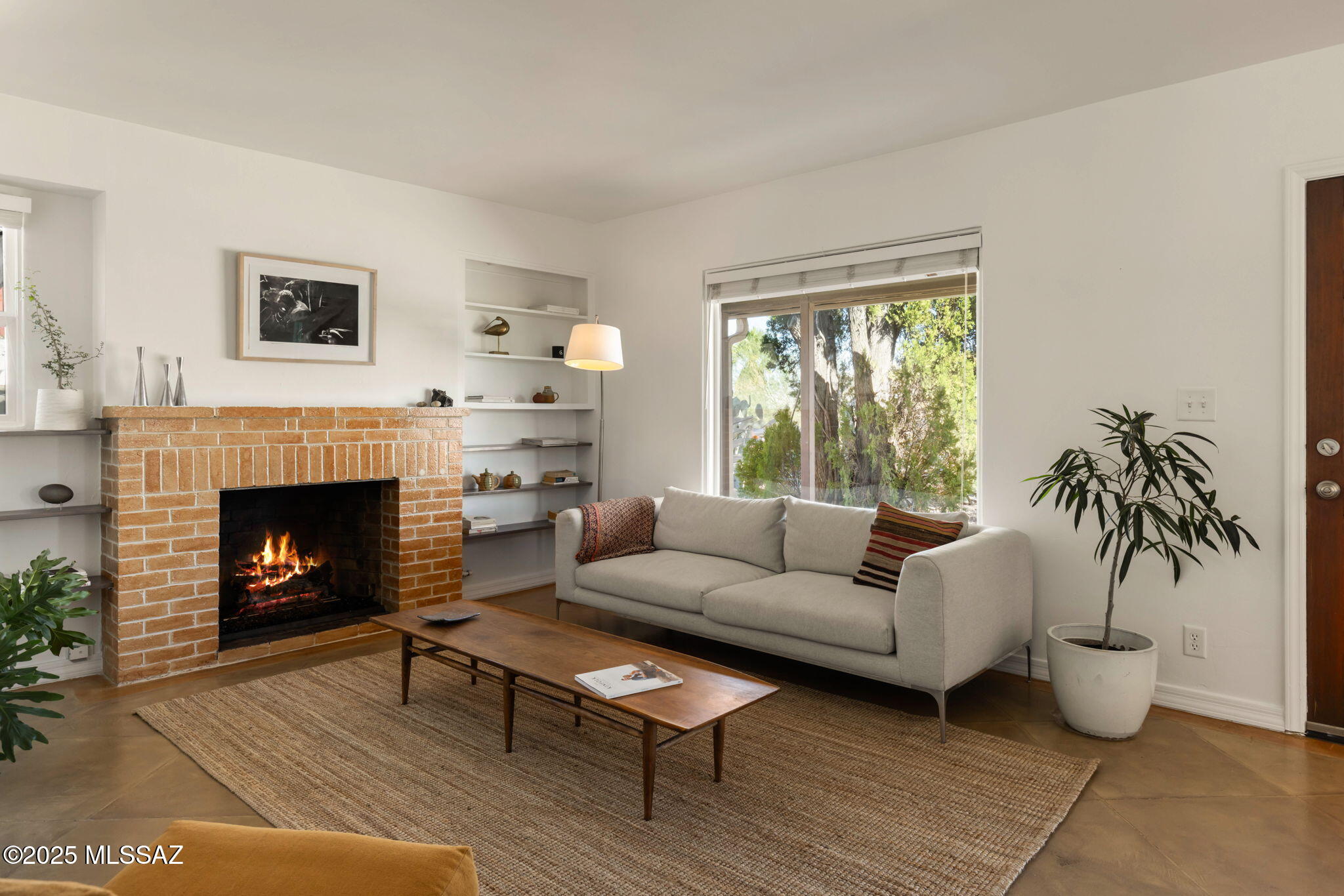 Tucked into Tucson's historic Poets Square, this 1949 ranch home blends mid-century character with modern comfort. The 1,188 sq. ft. main house offers three bedrooms and one-and-a-half baths, arranged in a layout that feels more spacious than its size suggests. Thoughtfully updated with a renovated kitchen, refreshed baths, new roof, dual cooling systems, and recent interior and exterior paint. Light filters easily through replaced windows, while upgraded systems--plumbing, electrical, and HVAC--add peace of mind. A 301 sq. ft. guest house with its own bath and mini split extends the home's versatility, perfect for guests, work, or studio space. Outdoors, mature landscaping, turf installation, and a motorized gate create a private retreat with ease of use.