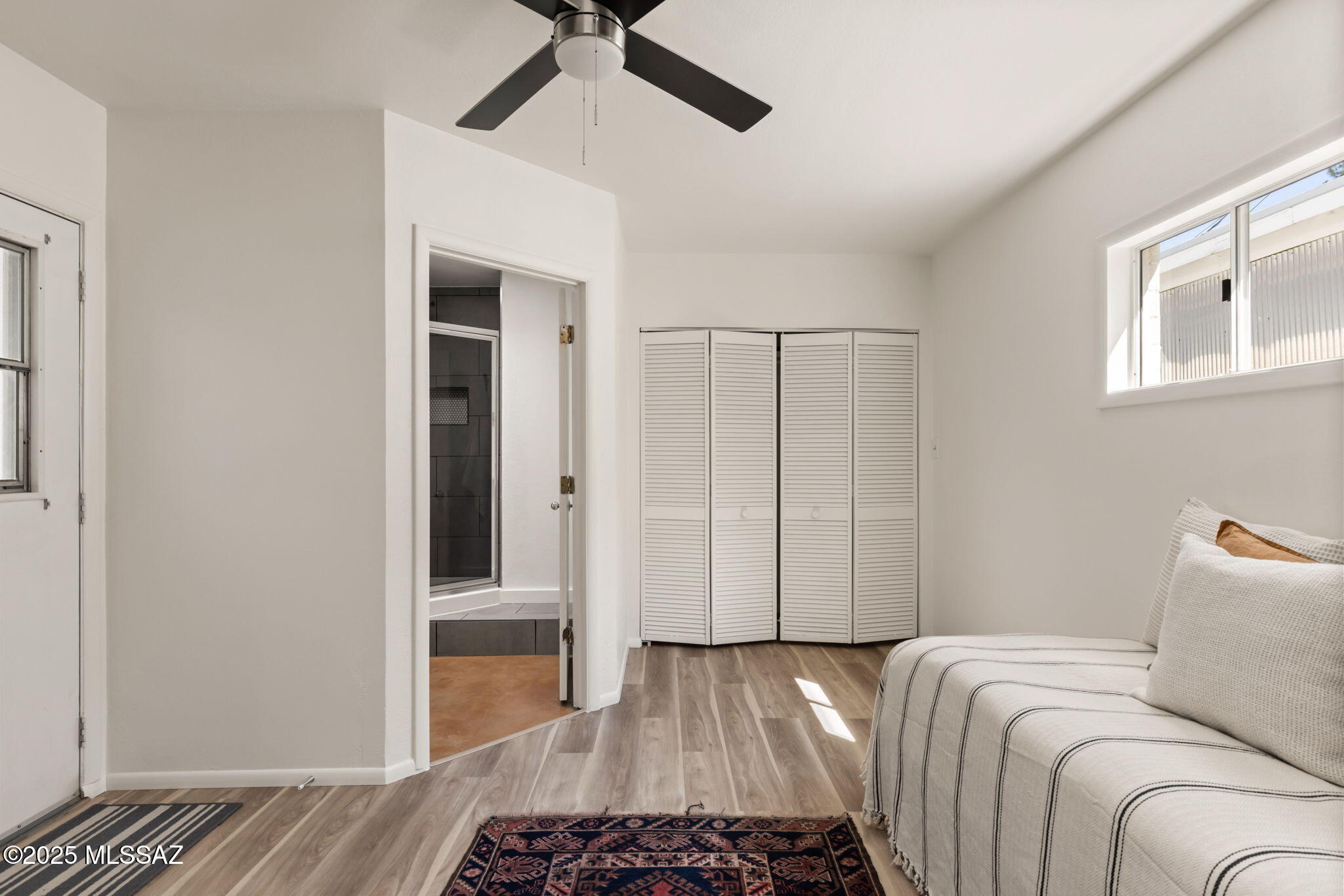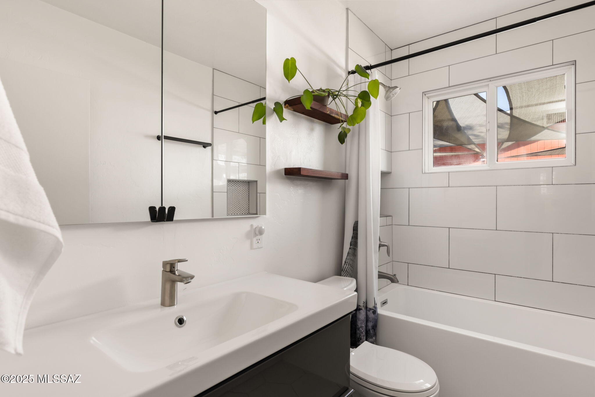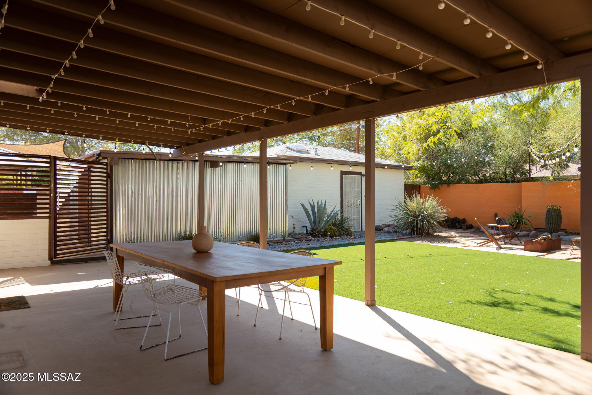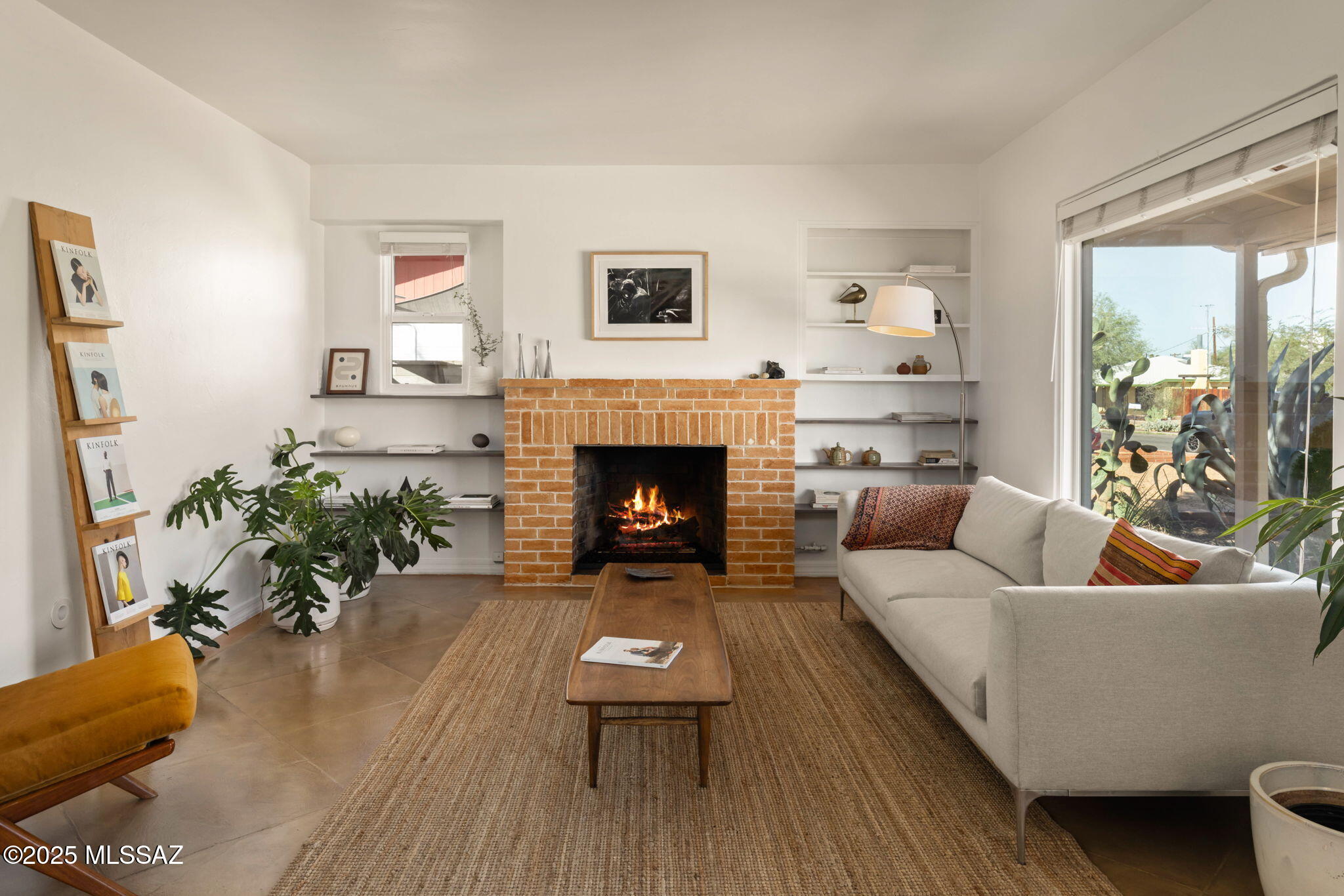 Tucked into Tucson's historic Poets Square, this 1949 ranch home blends mid-century character with modern comfort. The 1,188 sq. ft. main house offers three bedrooms and one-and-a-half baths, arranged in a layout that feels more spacious than its size suggests. Thoughtfully updated with a renovated kitchen, refreshed baths, new roof, dual cooling systems, and recent interior and exterior paint. Light filters easily through replaced windows, while upgraded systems--plumbing, electrical, and HVAC--add peace of mind. A 301 sq. ft. guest house with its own bath and mini split extends the home's versatility, perfect for guests, work, or studio space. Outdoors, mature landscaping, turf installation, and a motorized gate create a private retreat with ease of use.