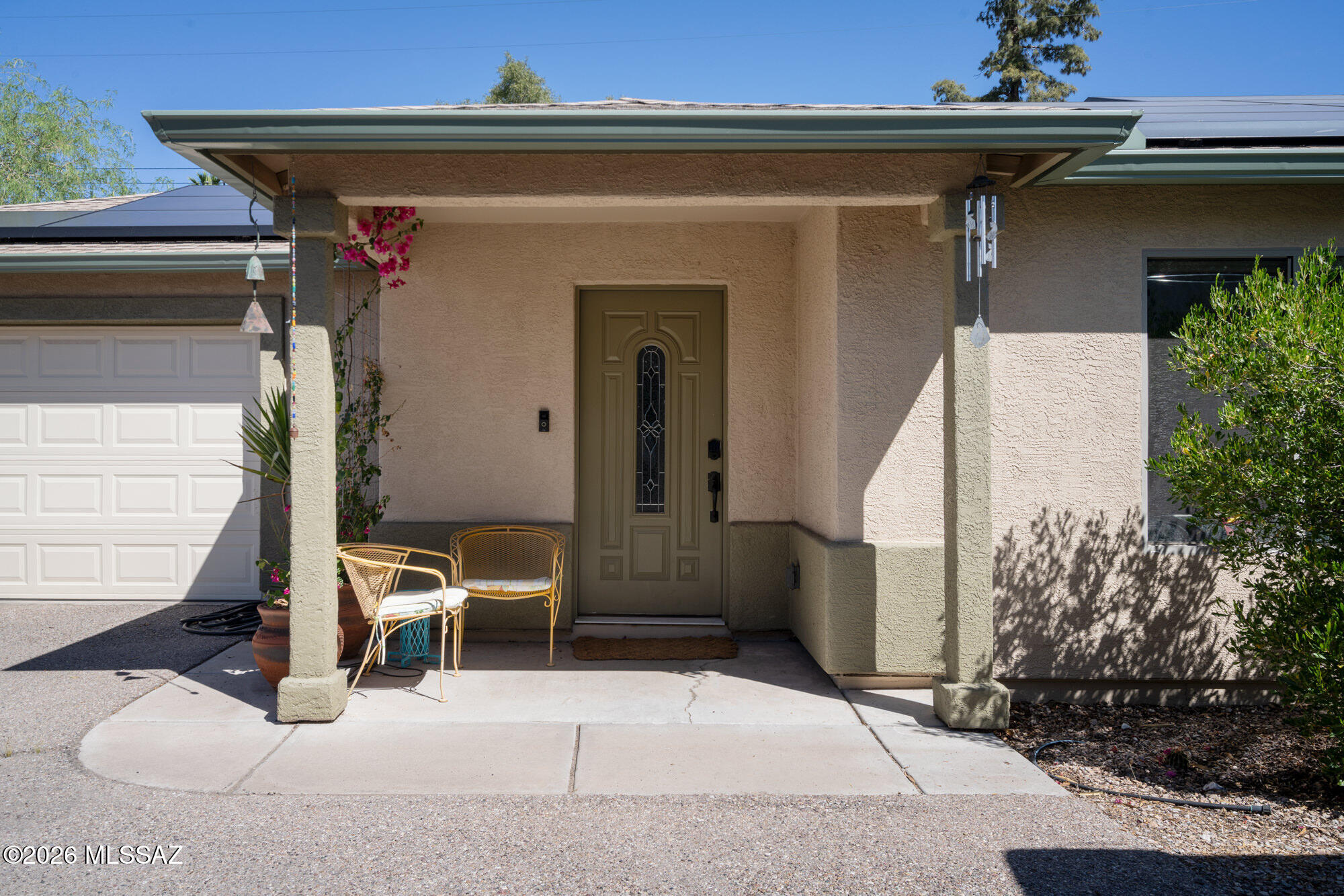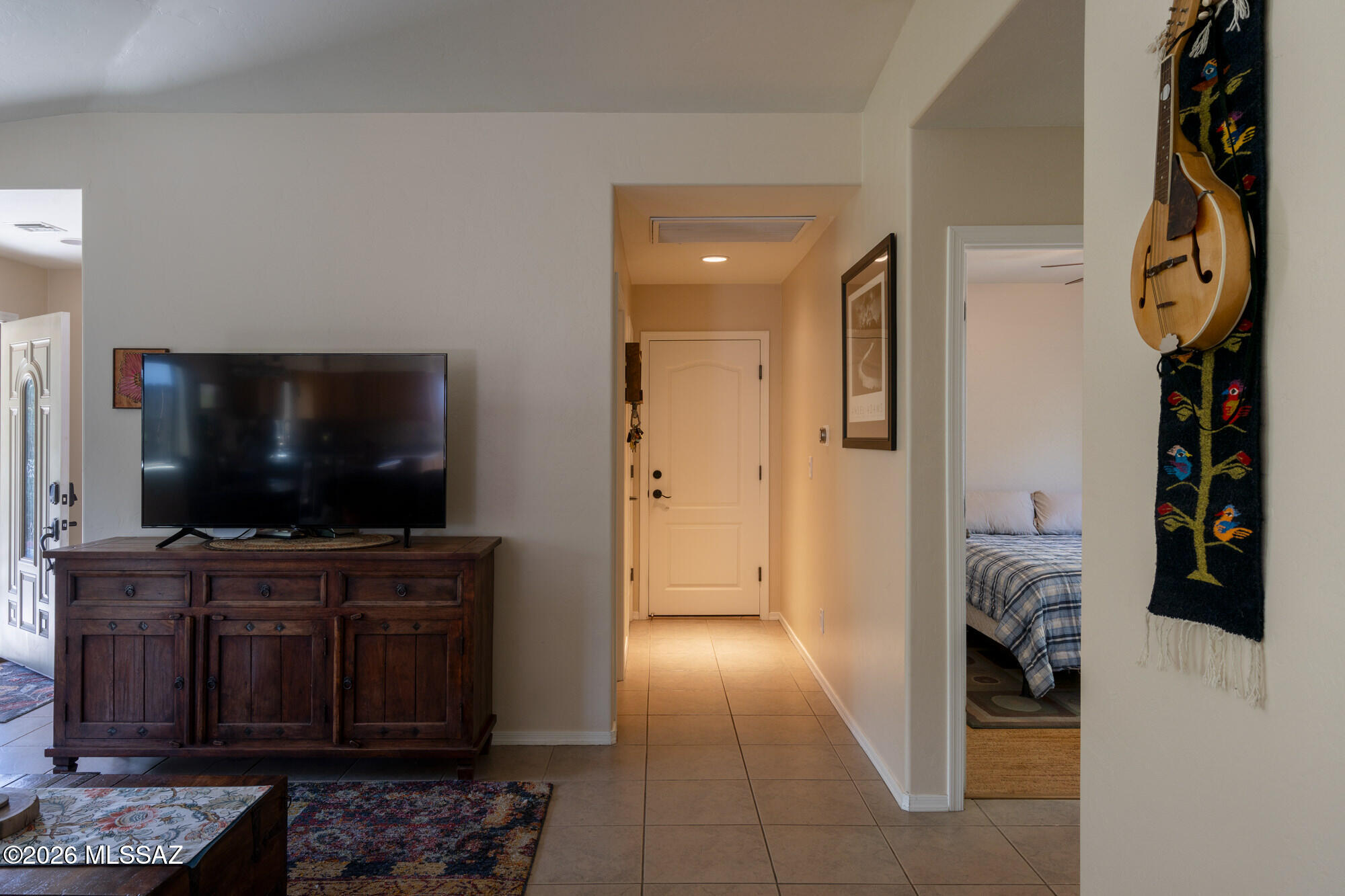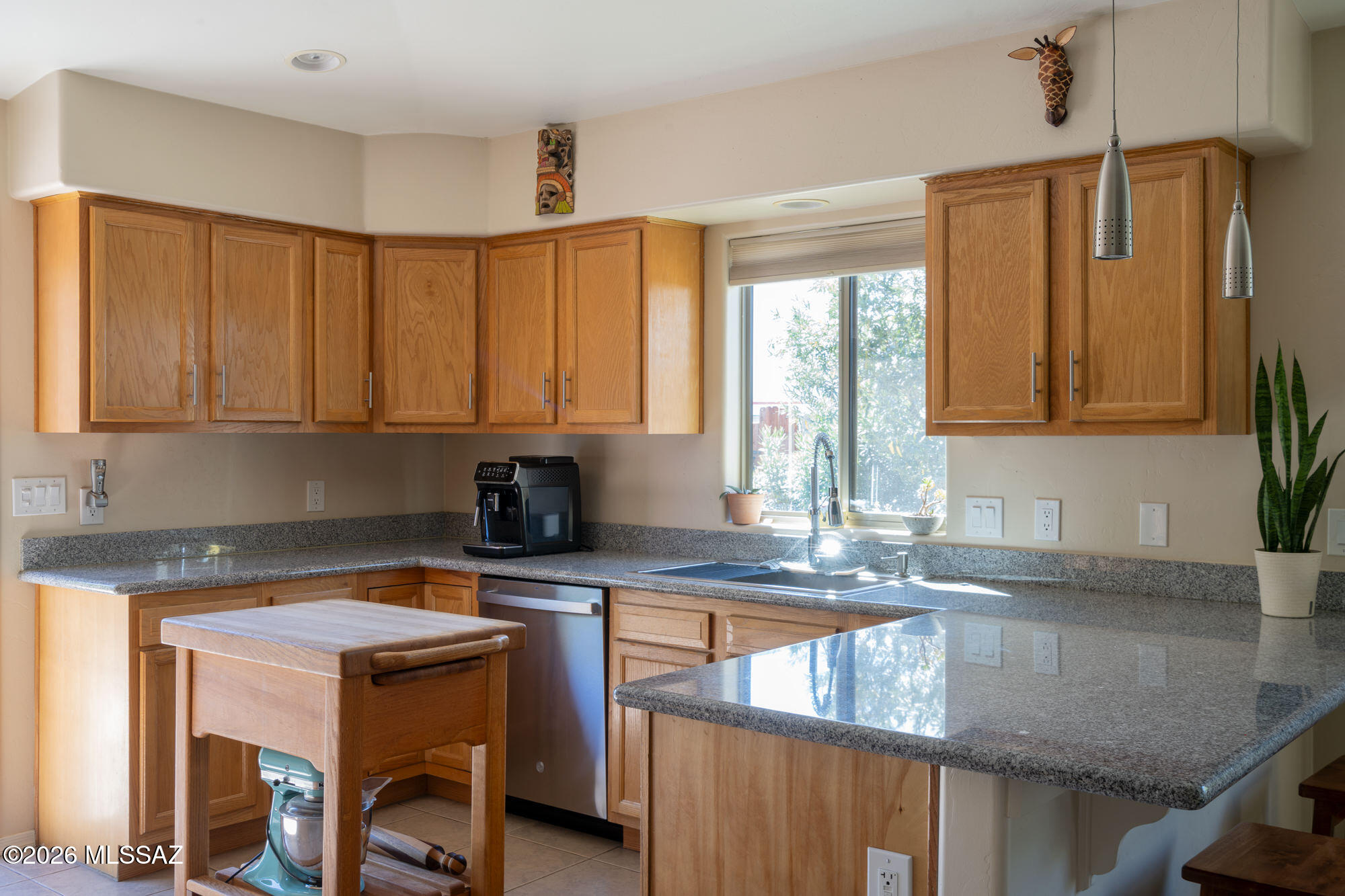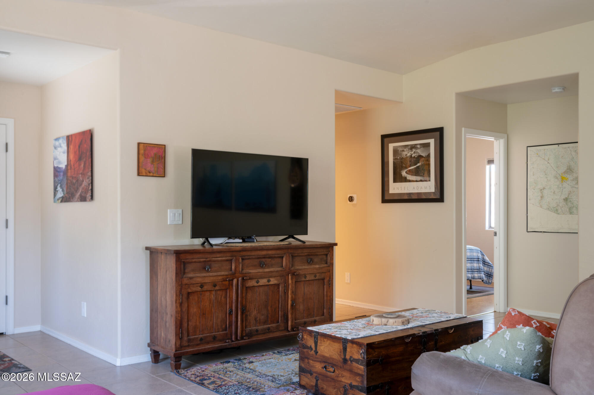 Private 3 bedroom, 2 bath home tucked away in a central Tucson location. Lofty ceilings in the great room and living room create a bright, open feel, while ceramic tile throughout and cork flooring in the bedrooms add comfort and function. The open living, dining, and kitchen layout works well for both everyday living and entertaining. The kitchen features generous cabinet storage, a pantry closet, granite countertops, and direct access to the yard. Bedrooms are nicely sized and well positioned off the main living area.