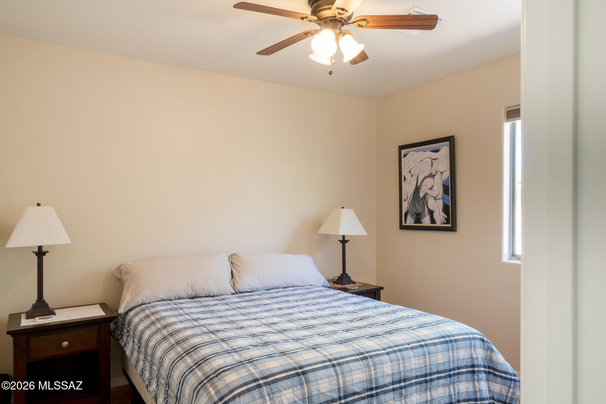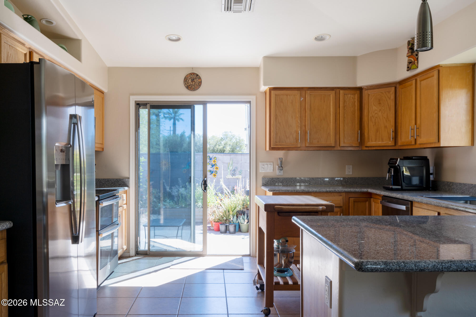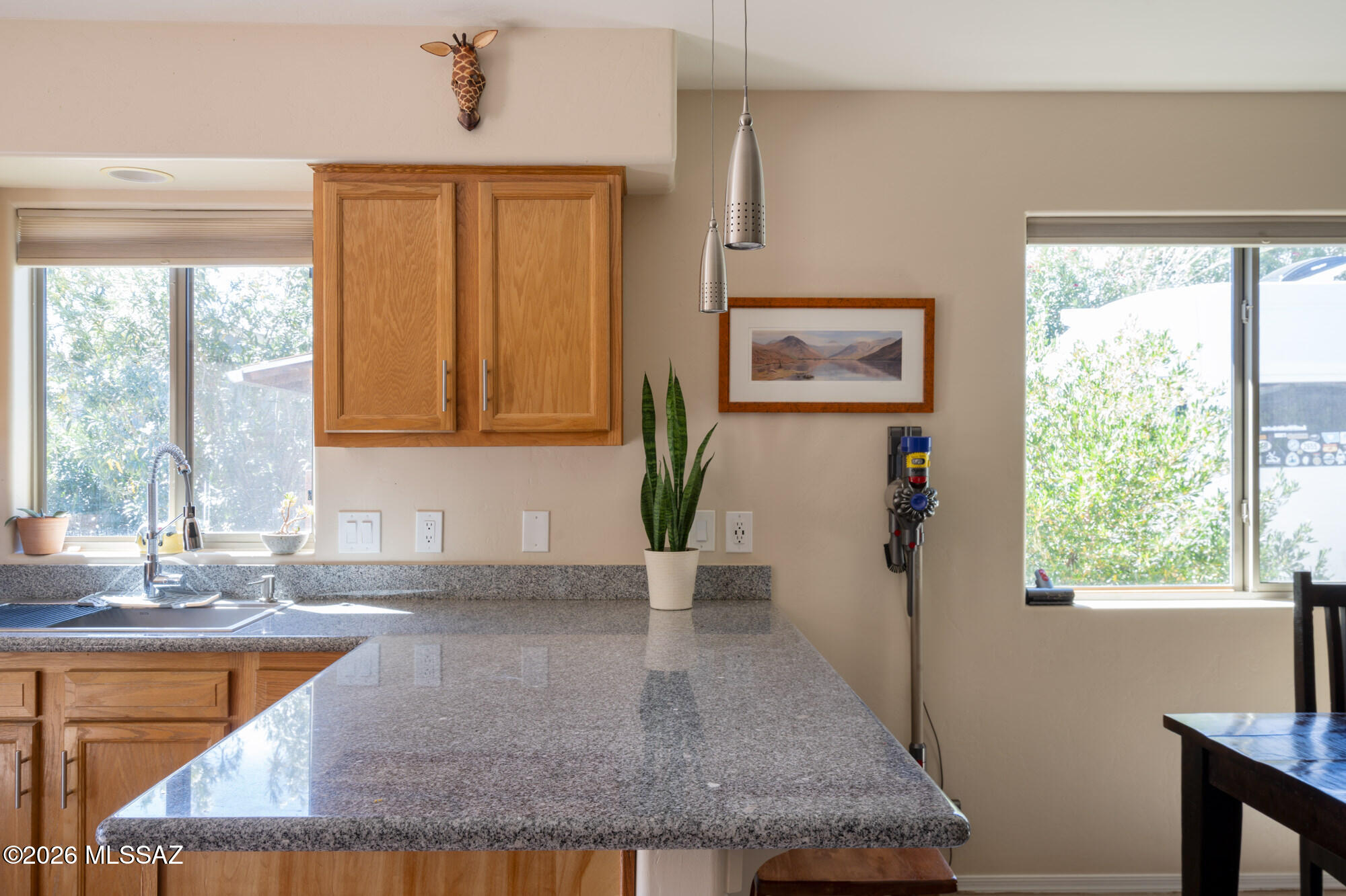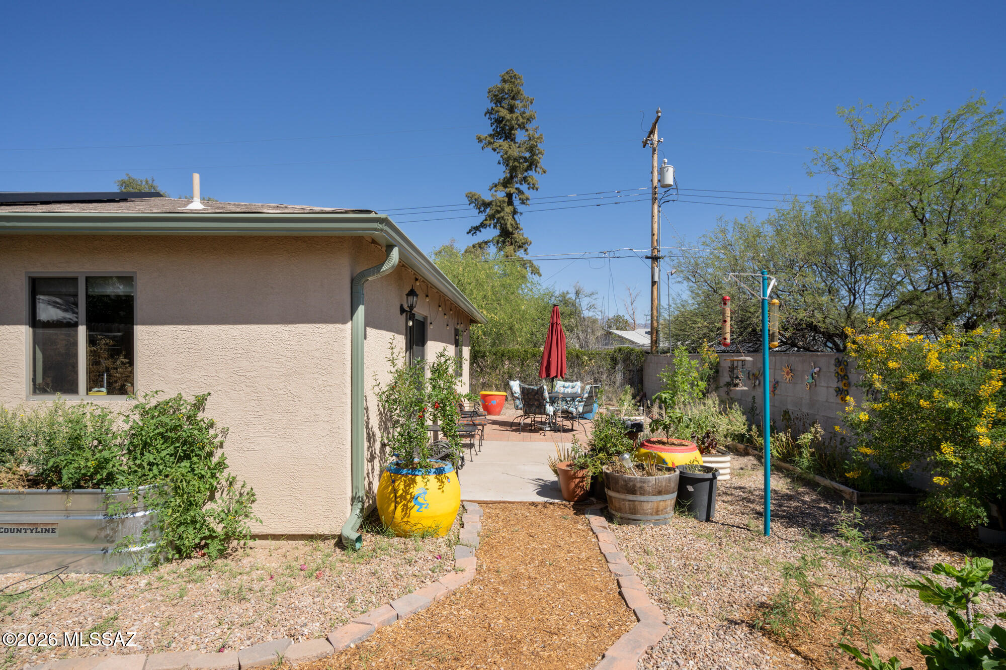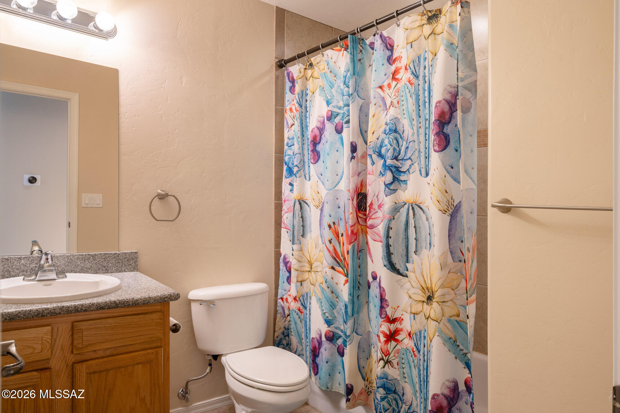 Private 3 bedroom, 2 bath home tucked away in a central Tucson location. Lofty ceilings in the great room and living room create a bright, open feel, while ceramic tile throughout and cork flooring in the bedrooms add comfort and function. The open living, dining, and kitchen layout works well for both everyday living and entertaining. The kitchen features generous cabinet storage, a pantry closet, granite countertops, and direct access to the yard. Bedrooms are nicely sized and well positioned off the main living area.