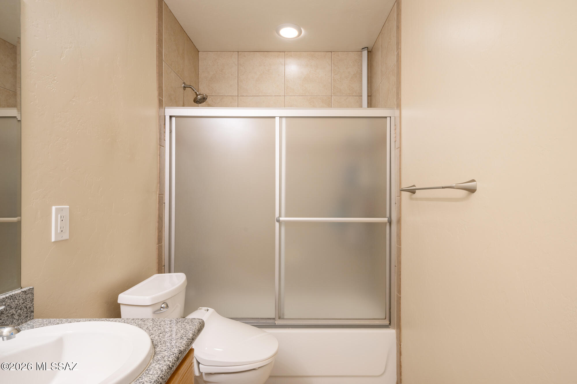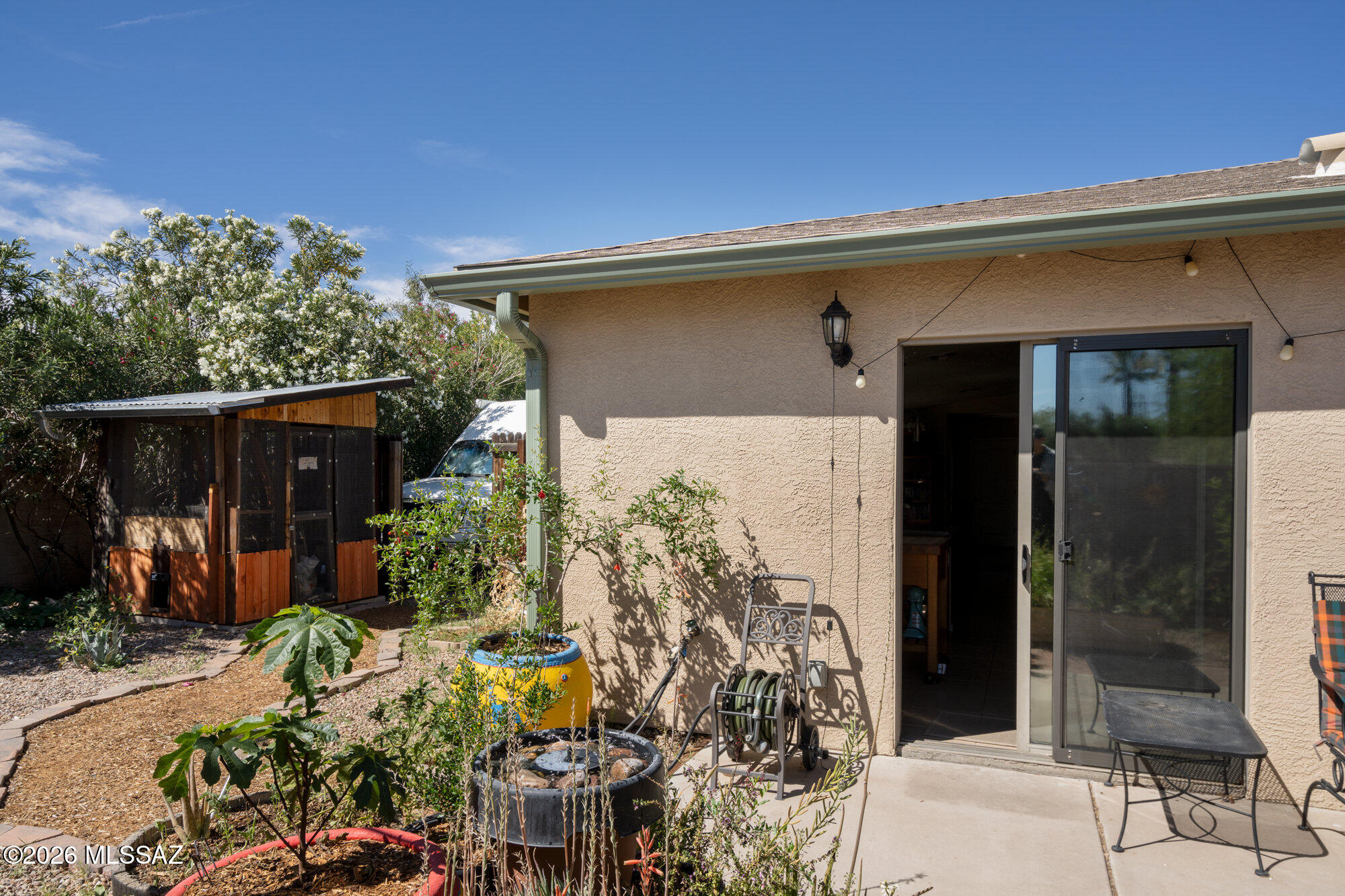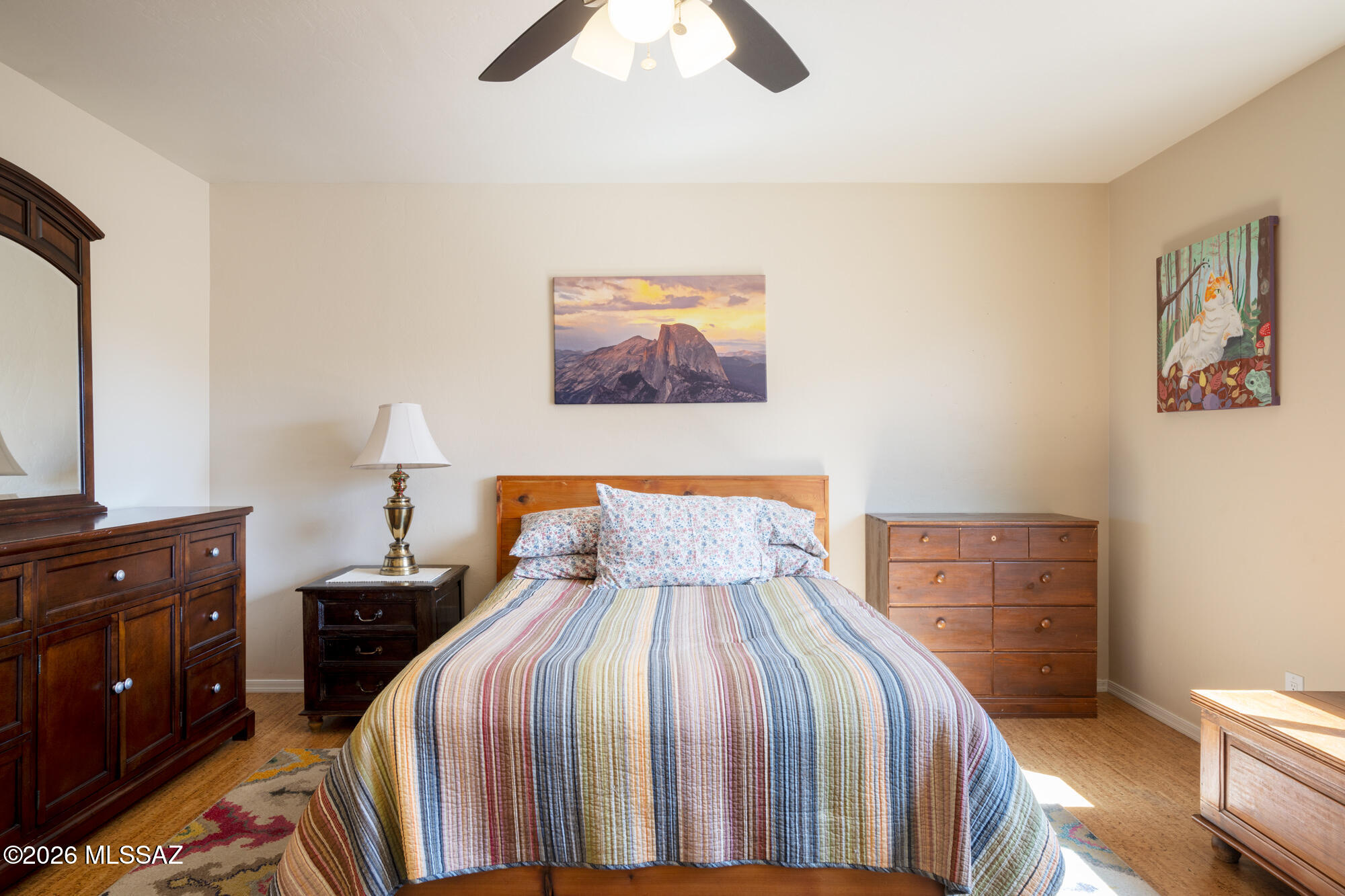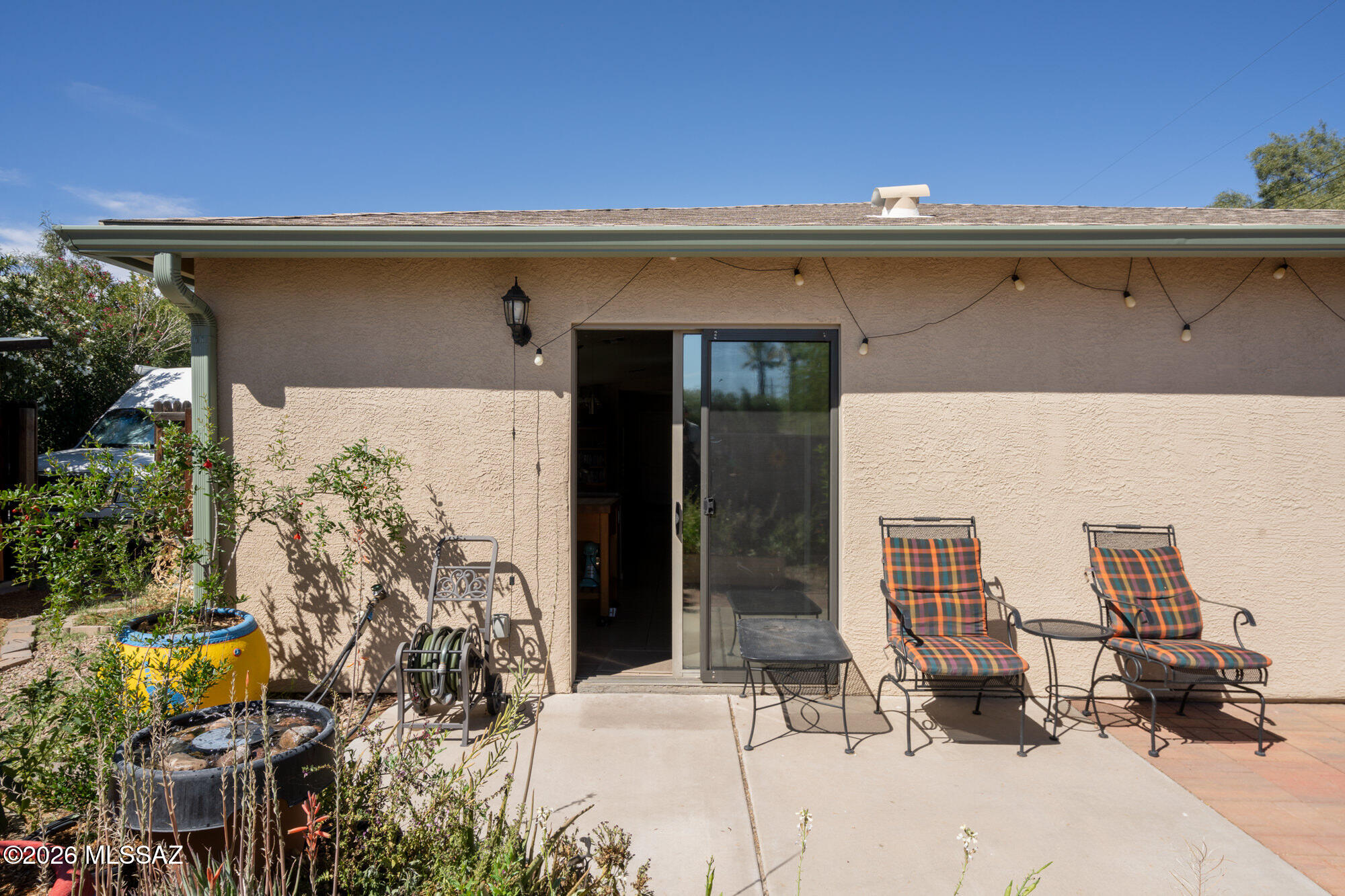 Private 3 bedroom, 2 bath home tucked away in a central Tucson location. Lofty ceilings in the great room and living room create a bright, open feel, while ceramic tile throughout and cork flooring in the bedrooms add comfort and function. The open living, dining, and kitchen layout works well for both everyday living and entertaining. The kitchen features generous cabinet storage, a pantry closet, granite countertops, and direct access to the yard. Bedrooms are nicely sized and well positioned off the main living area.
