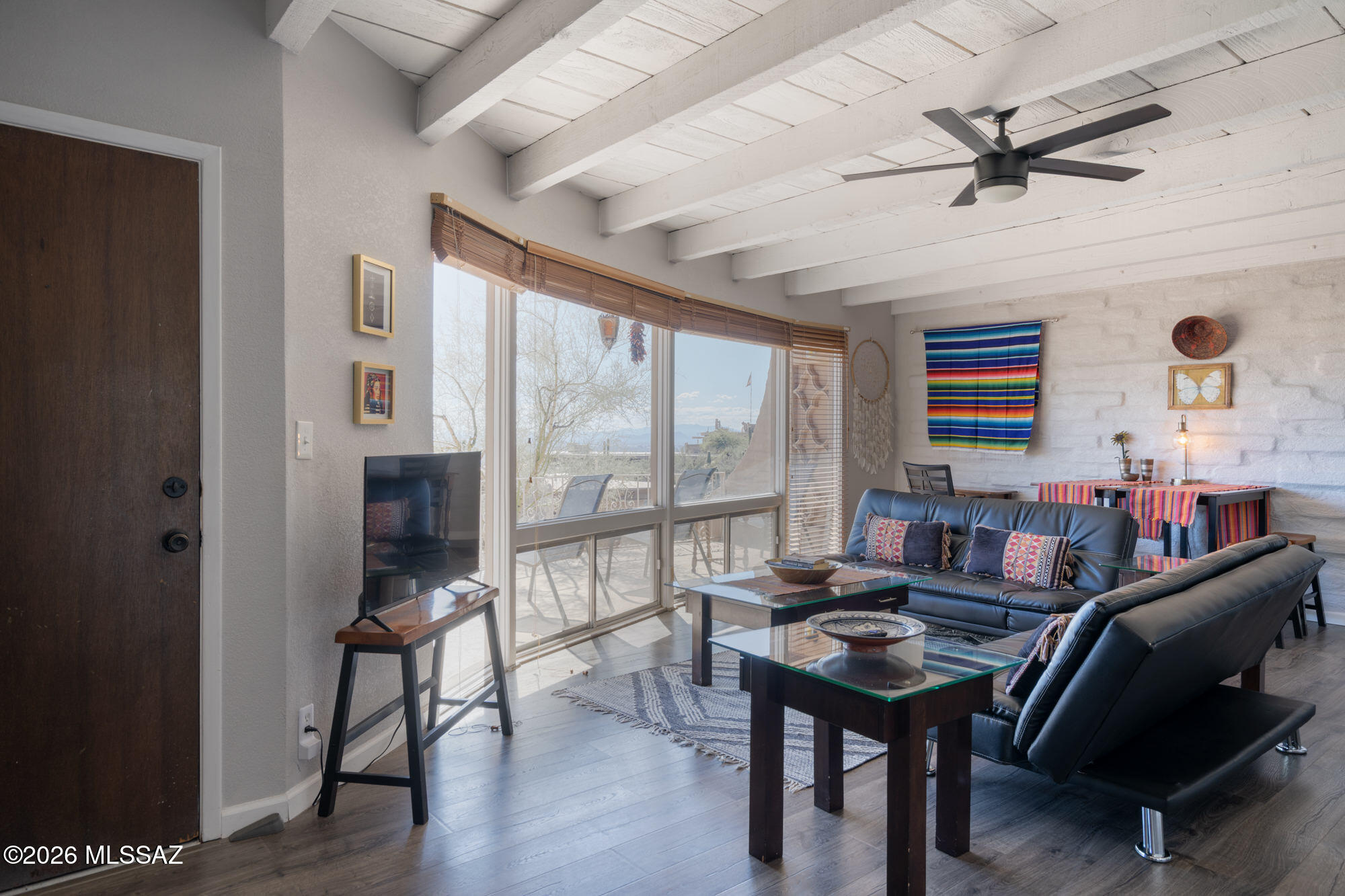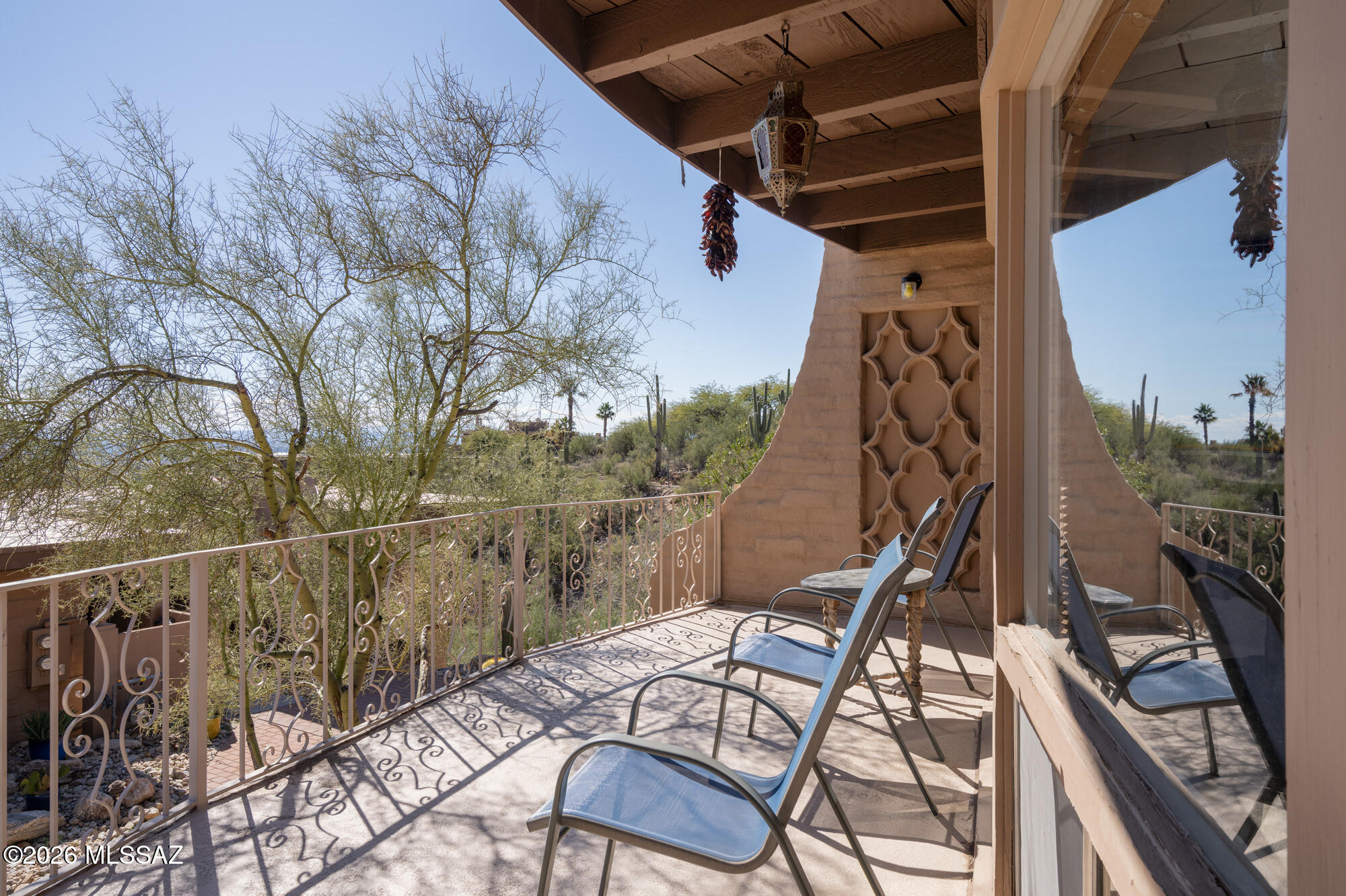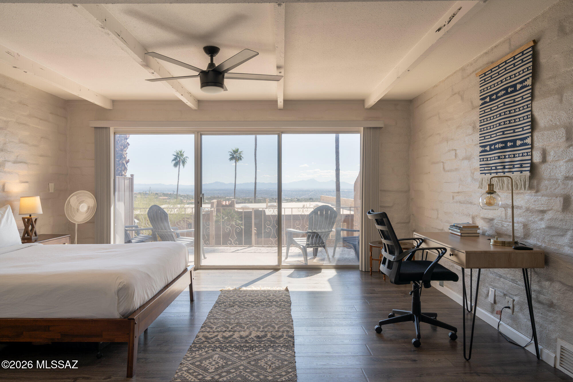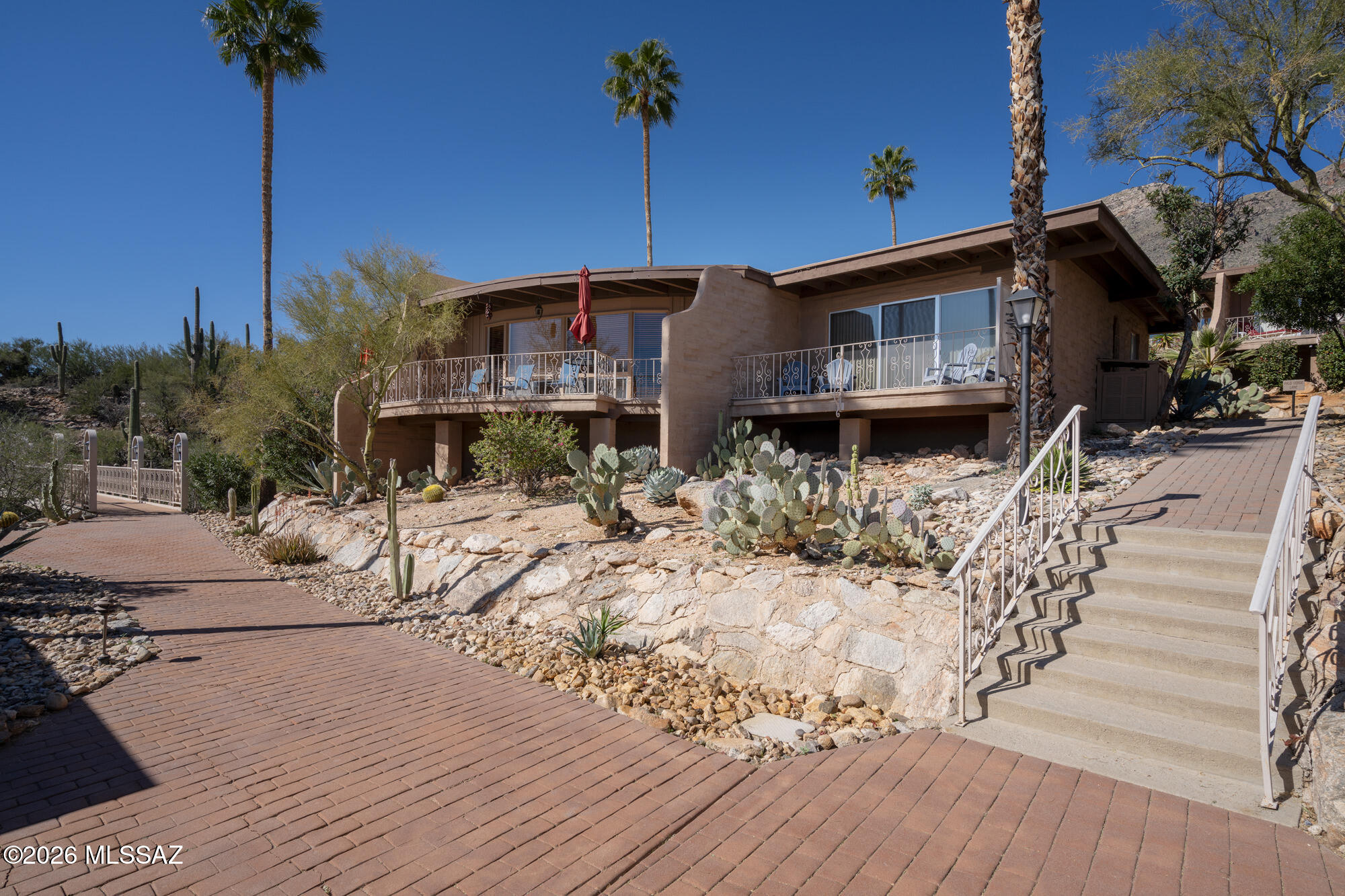 Perched high on Mission Hill within the coveted Skyline Country Club, this thoughtfully updated town-home captures sweeping views of Tucson. The layout is designed for maximum flexibility - the unit divides seamlessly into two independent spaces, each with its own private balcony, separate entrance, and full bath. Live on one side and rent the other, set up a dedicated home office, or welcome extended-stay guests without giving up your privacy. Each side has floor-to-ceiling sliding doors and windows framing the views beyond the private deck. A direct walking path connects you to all that Skyline Country Club has to offer -- without ever getting in a car.
