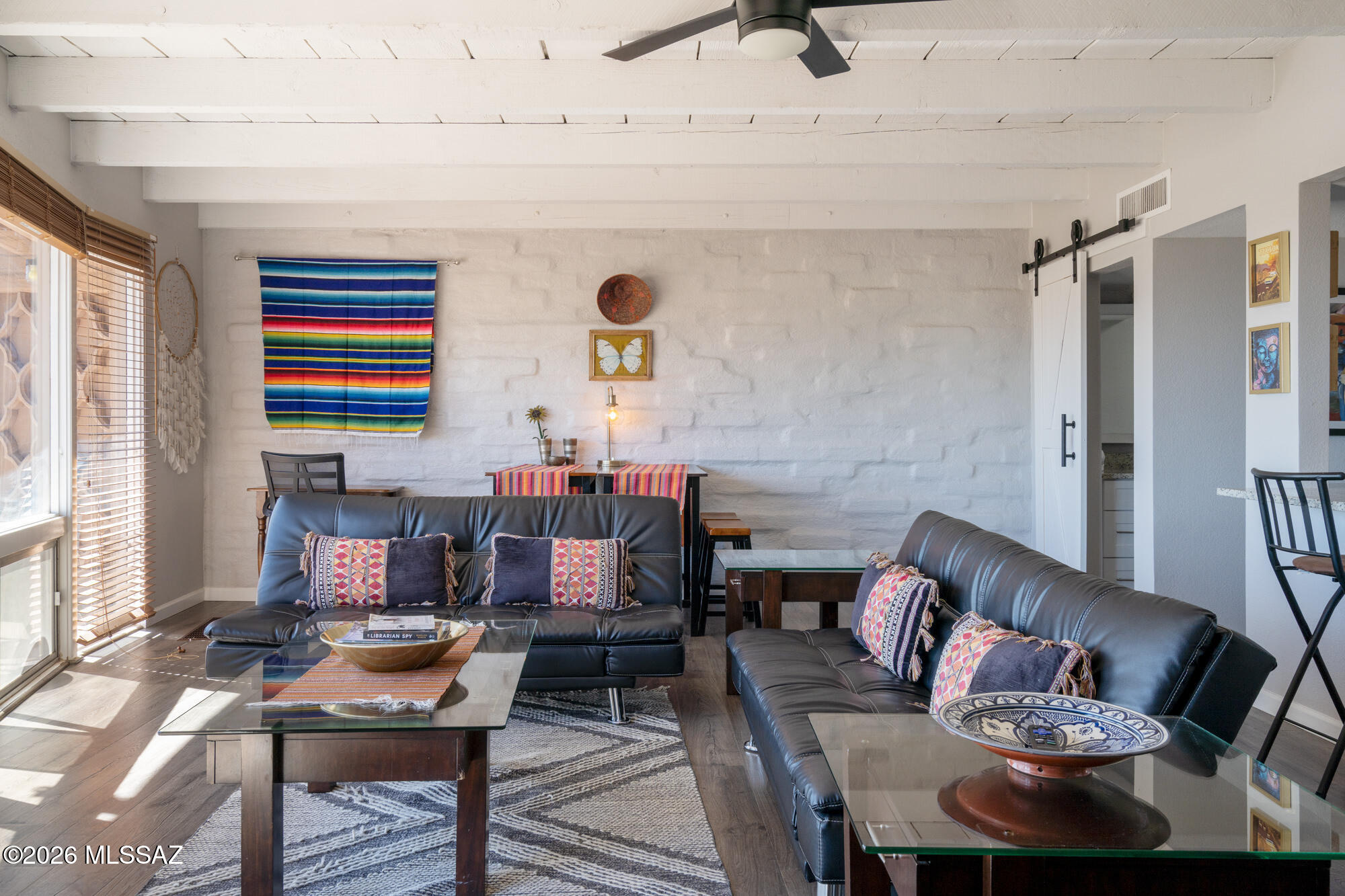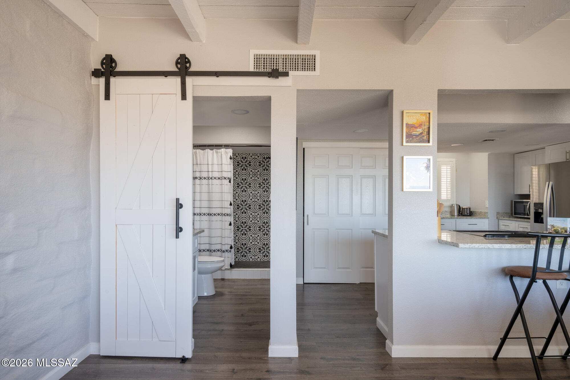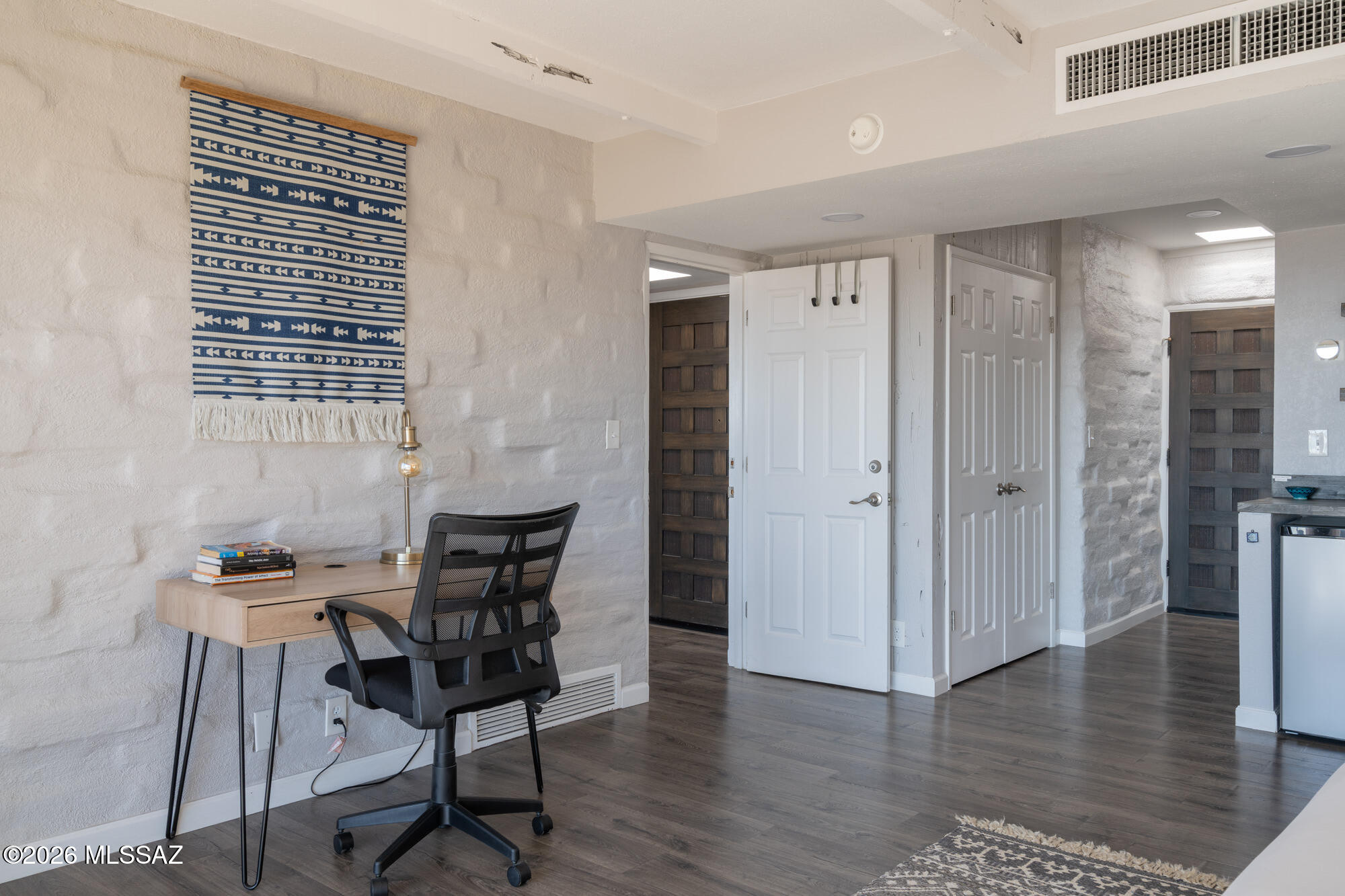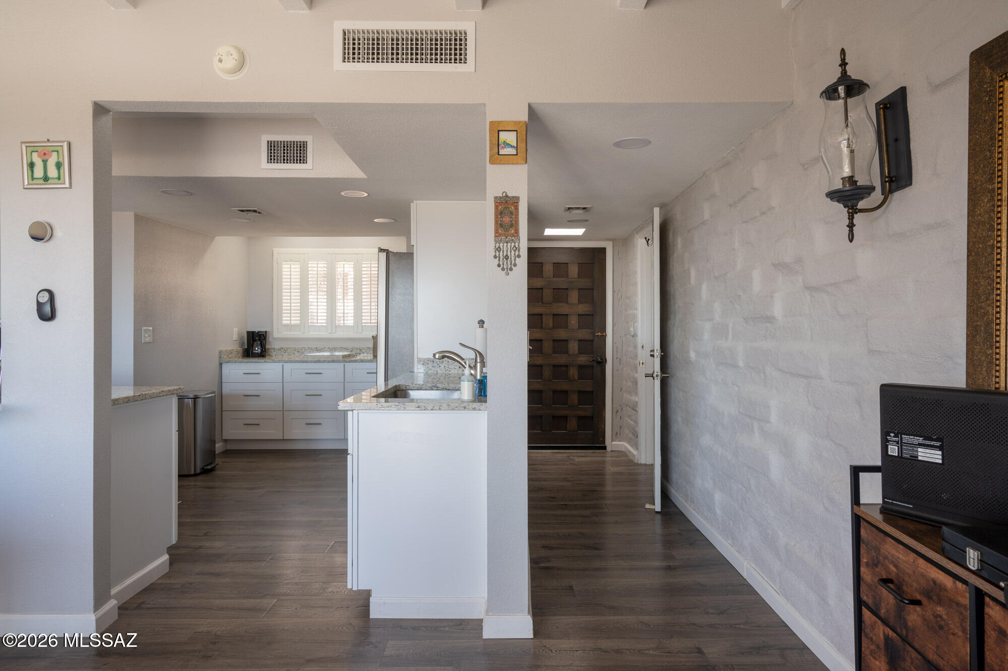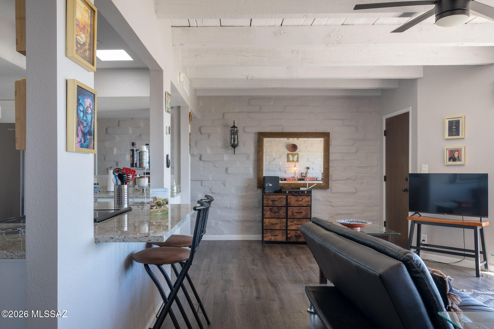 Perched high on Mission Hill within the coveted Skyline Country Club, this thoughtfully updated town-home captures sweeping views of Tucson. The layout is designed for maximum flexibility - the unit divides seamlessly into two independent spaces, each with its own private balcony, separate entrance, and full bath. Live on one side and rent the other, set up a dedicated home office, or welcome extended-stay guests without giving up your privacy. Each side has floor-to-ceiling sliding doors and windows framing the views beyond the private deck. A direct walking path connects you to all that Skyline Country Club has to offer -- without ever getting in a car.
