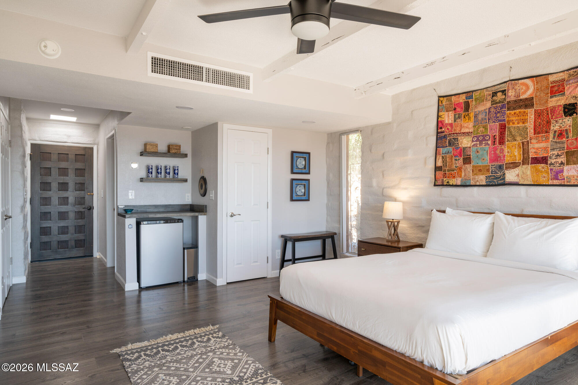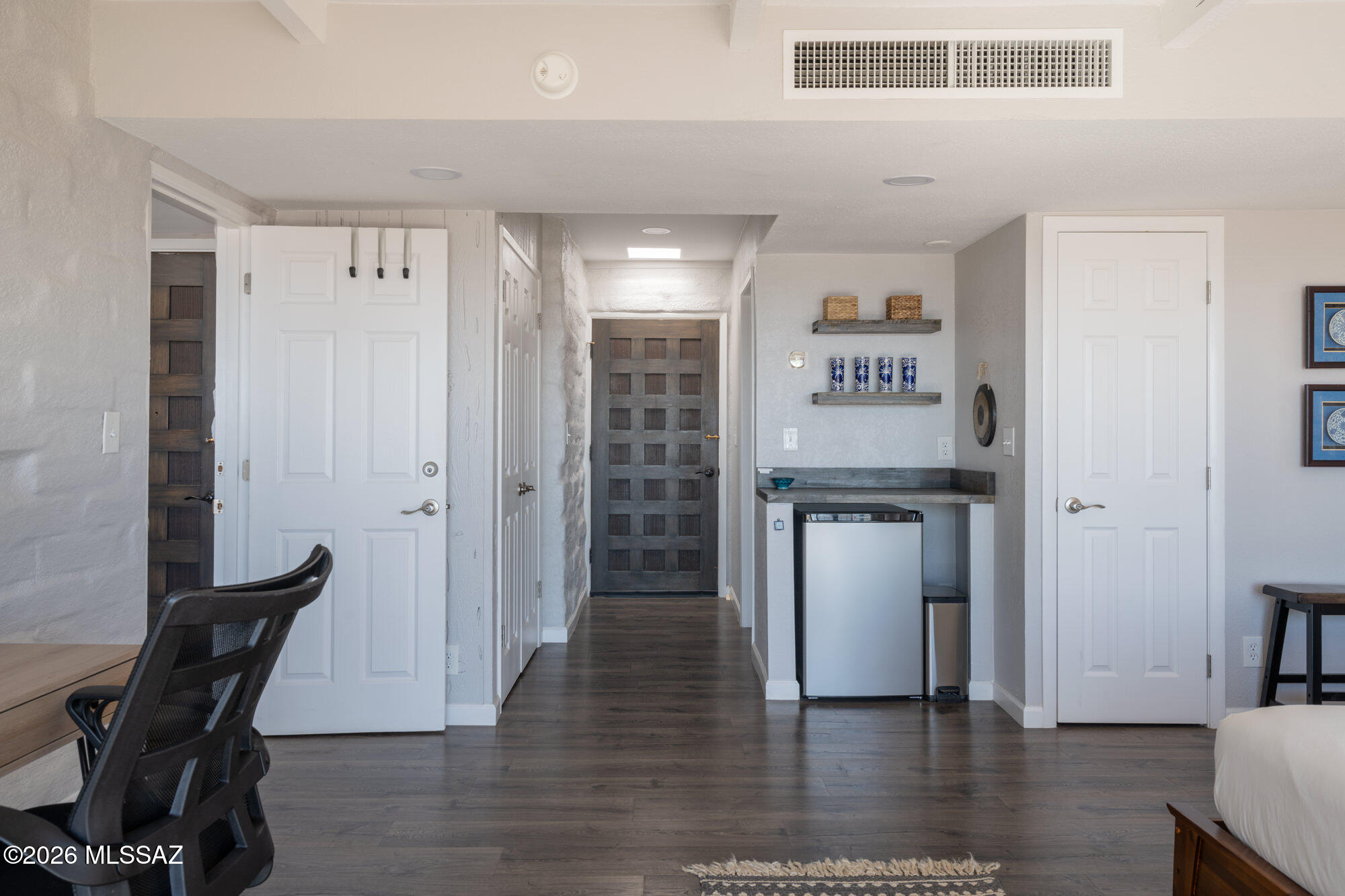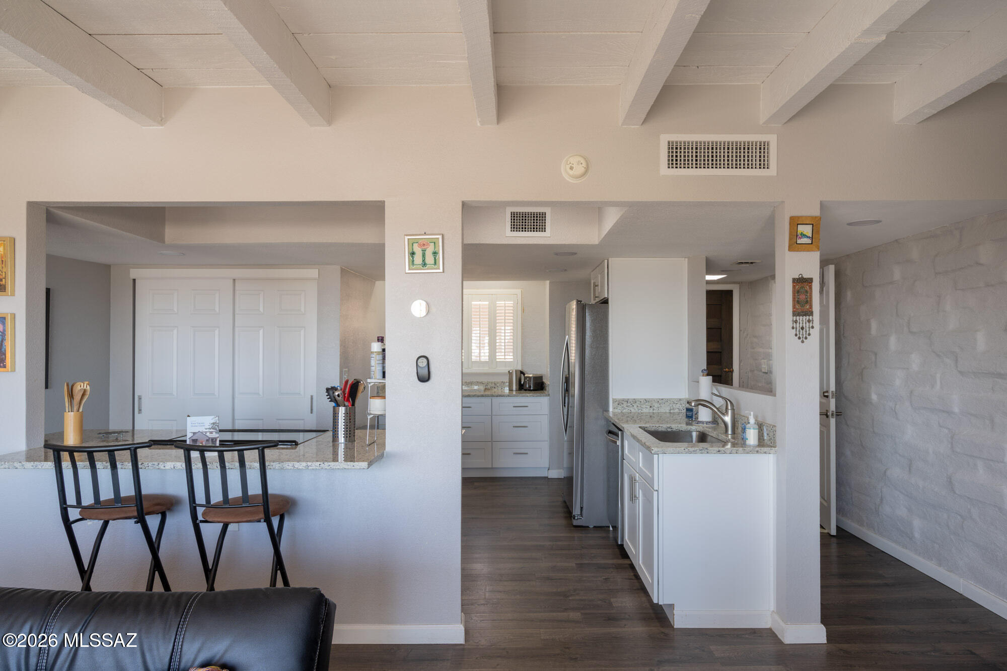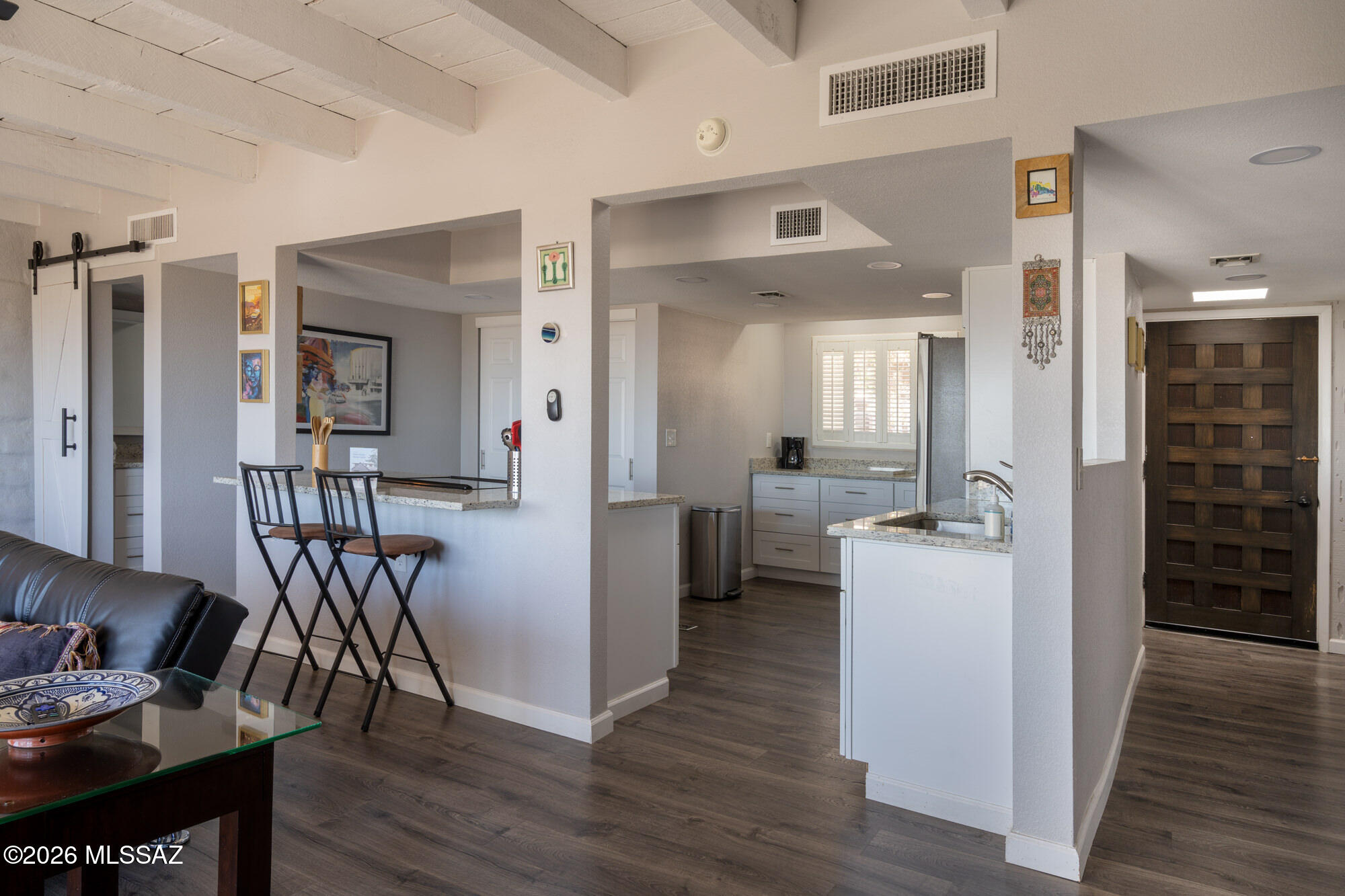 Perched high on Mission Hill within the coveted Skyline Country Club, this thoughtfully updated town-home captures sweeping views of Tucson. The layout is designed for maximum flexibility - the unit divides seamlessly into two independent spaces, each with its own private balcony, separate entrance, and full bath. Live on one side and rent the other, set up a dedicated home office, or welcome extended-stay guests without giving up your privacy. Each side has floor-to-ceiling sliding doors and windows framing the views beyond the private deck. A direct walking path connects you to all that Skyline Country Club has to offer -- without ever getting in a car.
