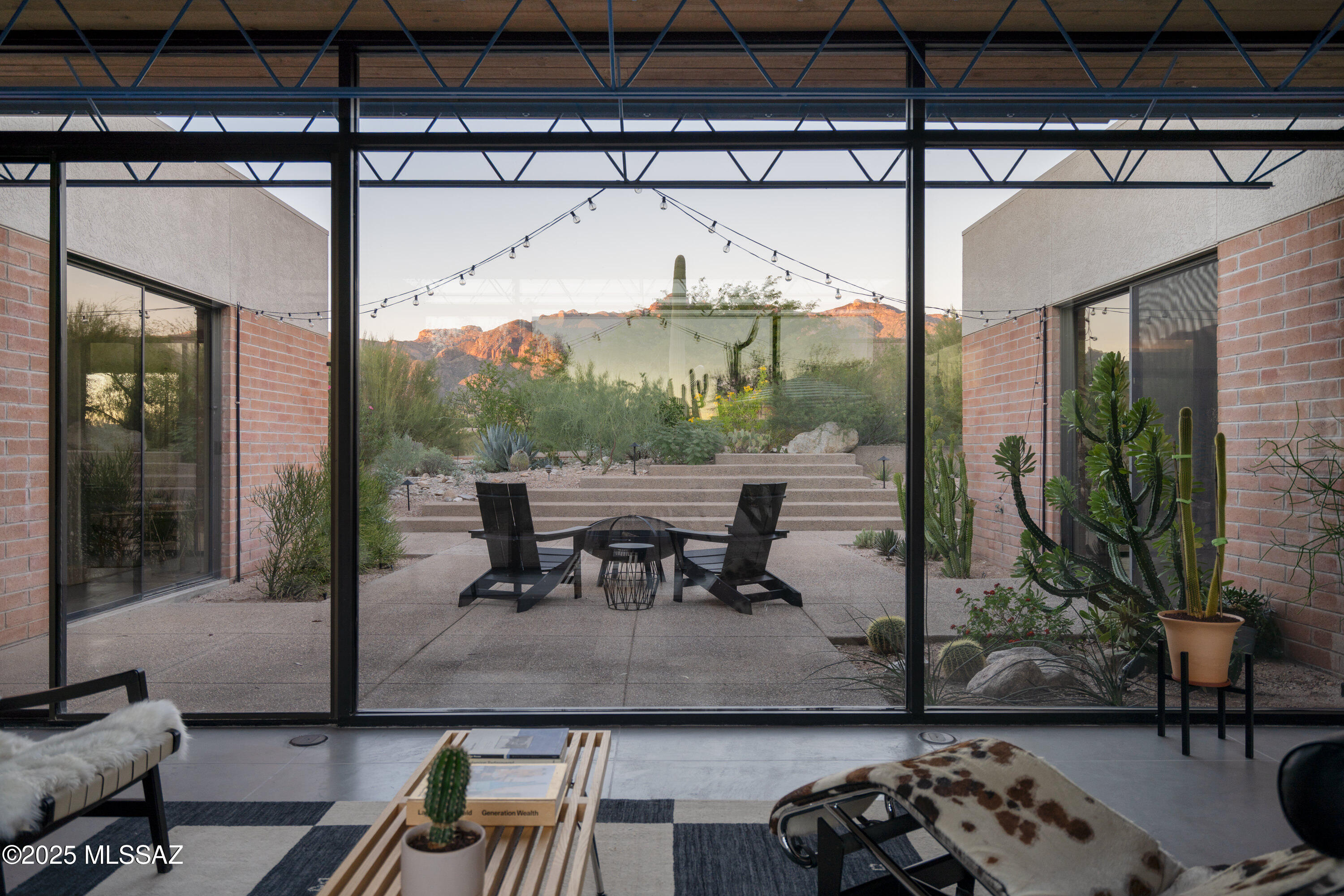 Nestled into the desert on 2.2 acres in the Catalina Foothills, the Module House by architect Robert Swaim was completed in 1988. It is a rare Limited Edition Series residence, the only realized example of Swaim's modular concept, with sweeping mountain, city, and sunset views. The home was featured in Sunset magazine; the original owner served as Vice President and Editor at Sunset at the time.A refined palette of honest materials was carefully carried throughout: concrete, masonry, and glass, with a clear expression of structure. A central spine organizes volume and movement, while vaulted ceilings and expansive walls of glass connect the interior to patios, pool, and desert. The boundary between inside and out is continuous.