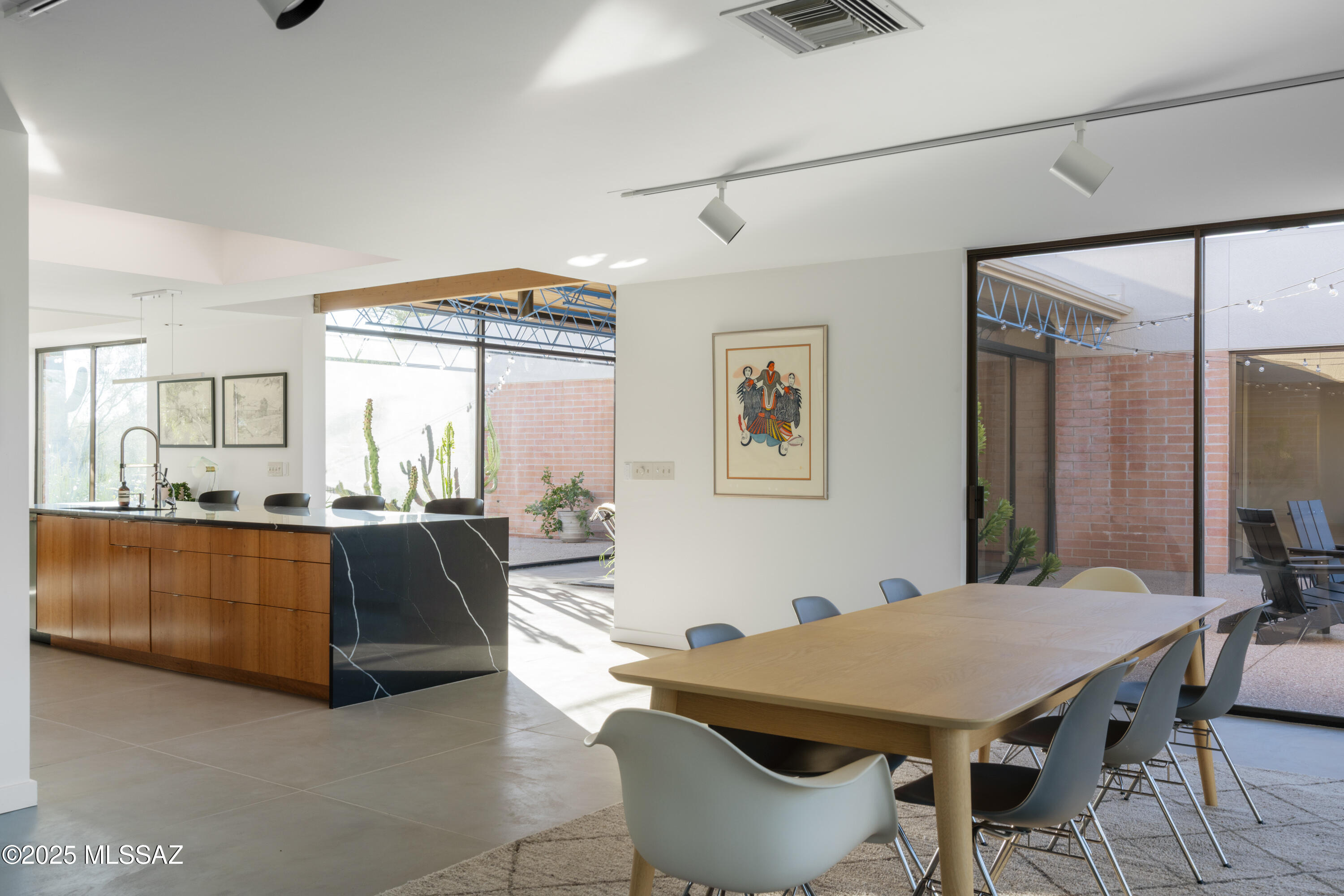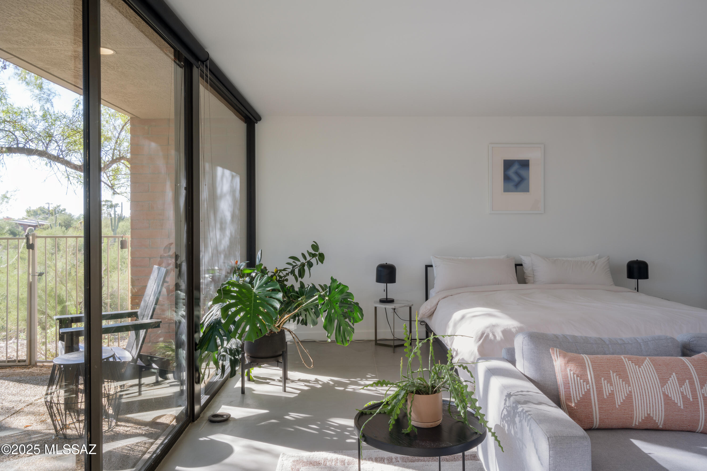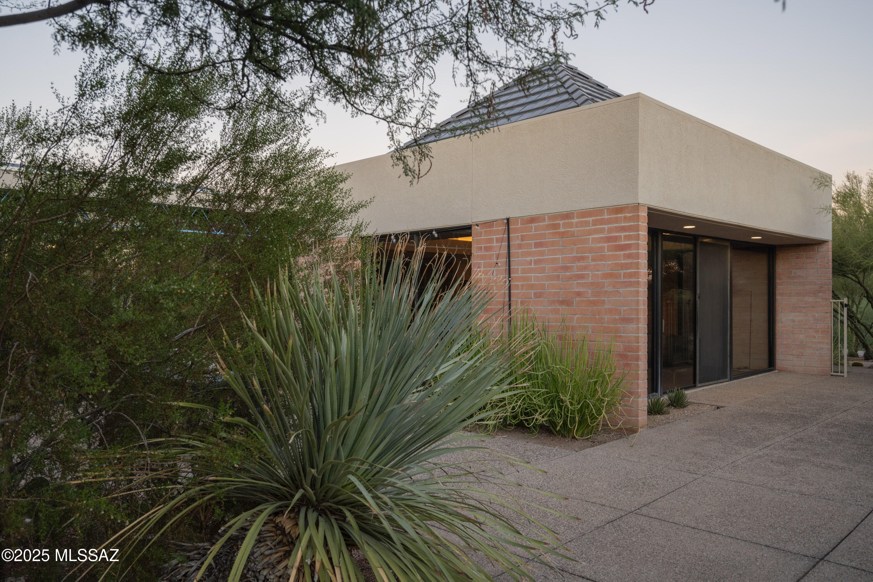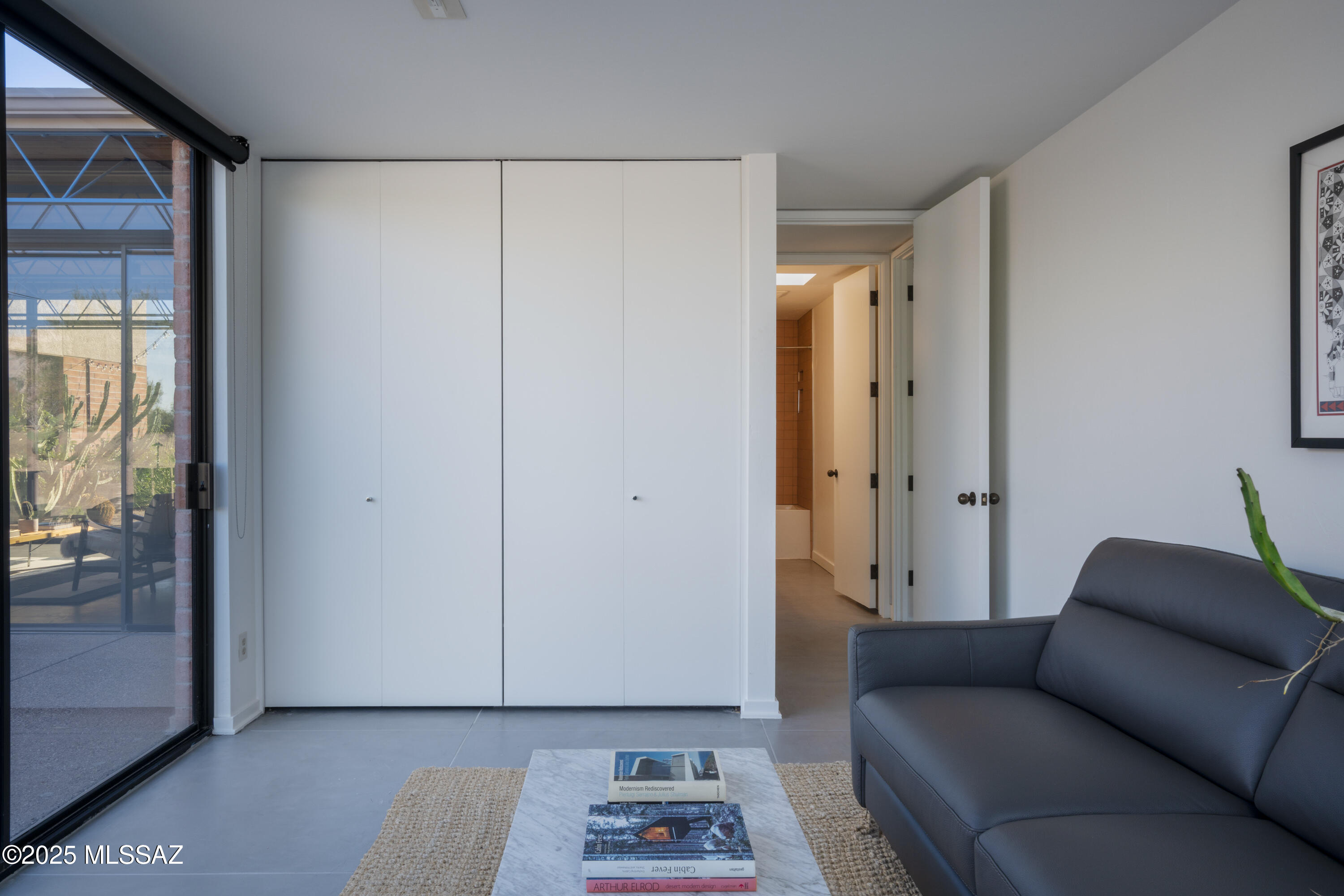 Tucked into the desert on a quiet side street off Campbell Avenue, the Module House by architect Robert Swaim sits on 2.2 acres in the Catalina Foothills. It is a rare Limited Edition Series residence, the only realized example of Swaim's modular concept, with sweeping mountain, city, & sunset views. The home was featured in Sunset magazine; the original owner served as Vice President & Editor at Sunset at the time. An honest material palette was carefully carried throughout: concrete, masonry, and glass, with a clear expression of structure. A central spine organizes volume and movement, while vaulted ceilings and expansive walls of glass connect the interior to patios, pool, and desert. The boundary between inside and out is continuous. Floors, framed views, & walls extend out into the landscape. The landscape reciprocates as shadows and reflections, the desert beyond is drawn into the rooms. The open plan of public spaces brings in natural light throughout the day and supports easy living between indoors and out.