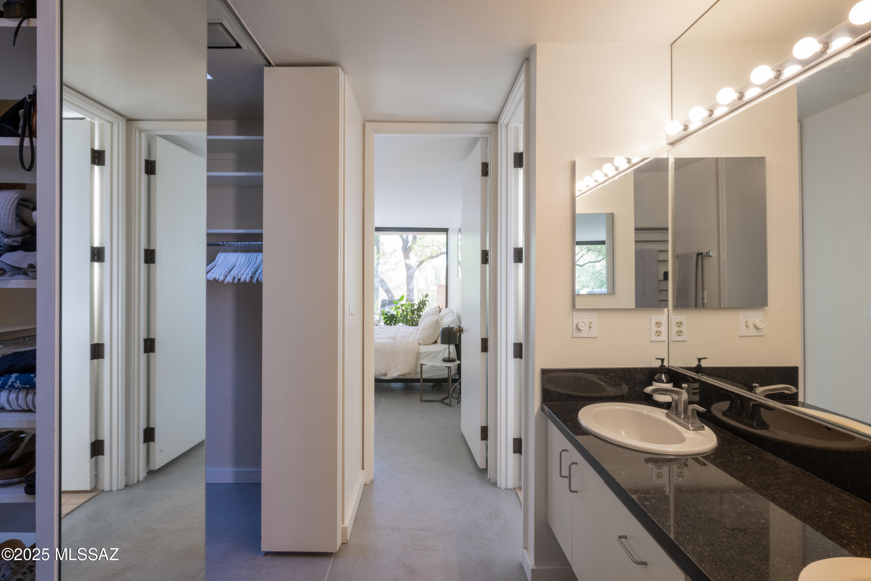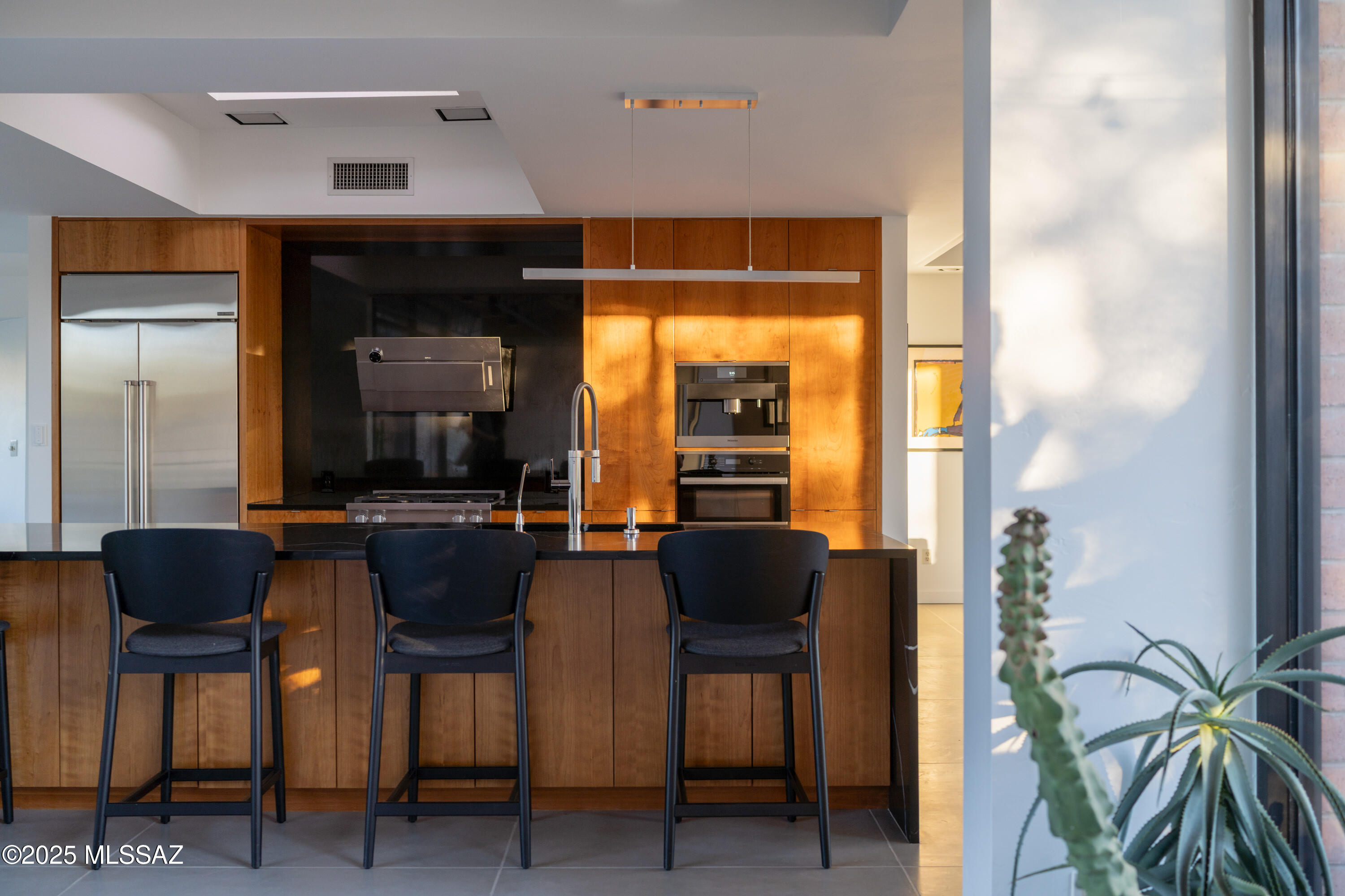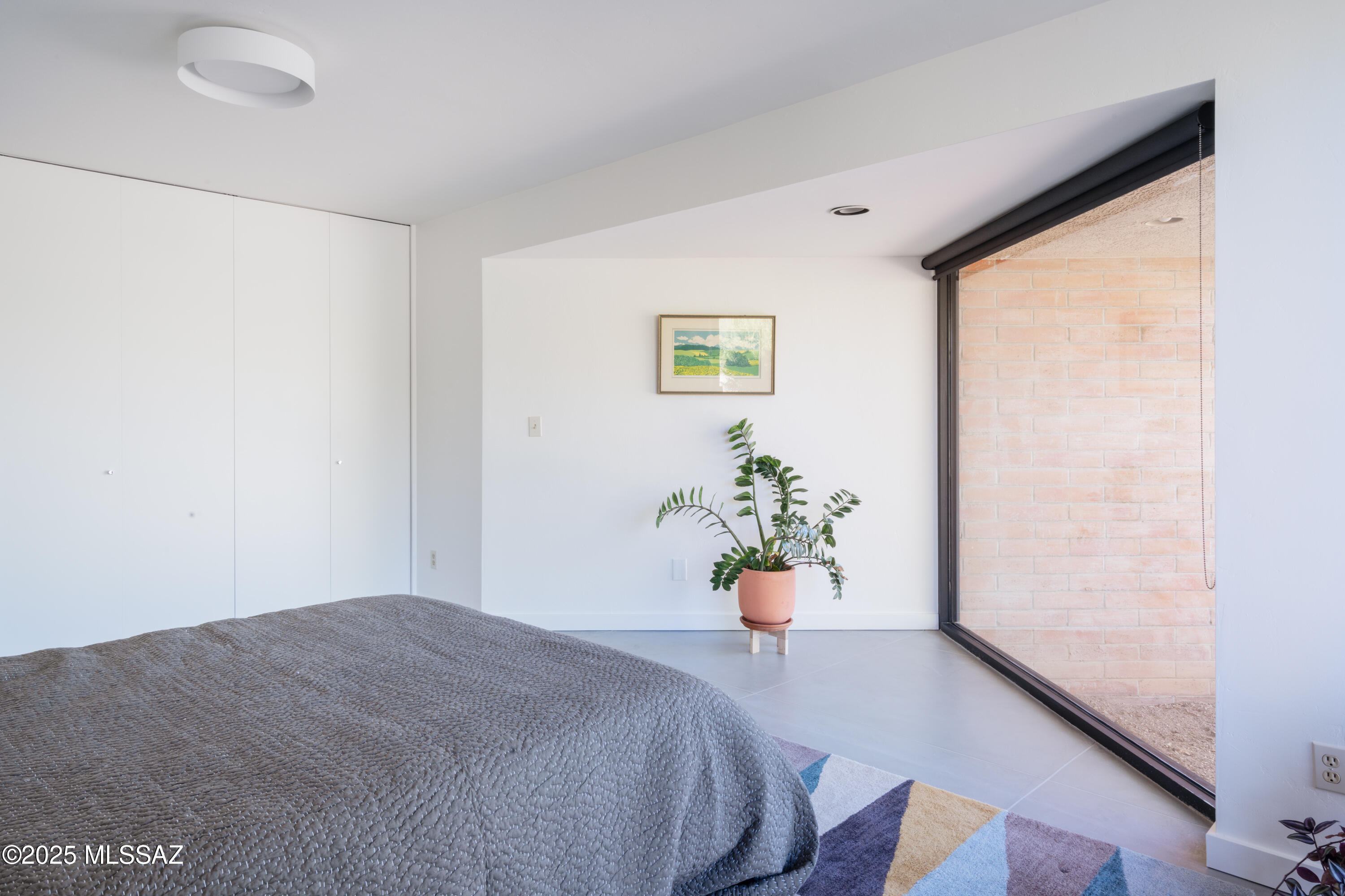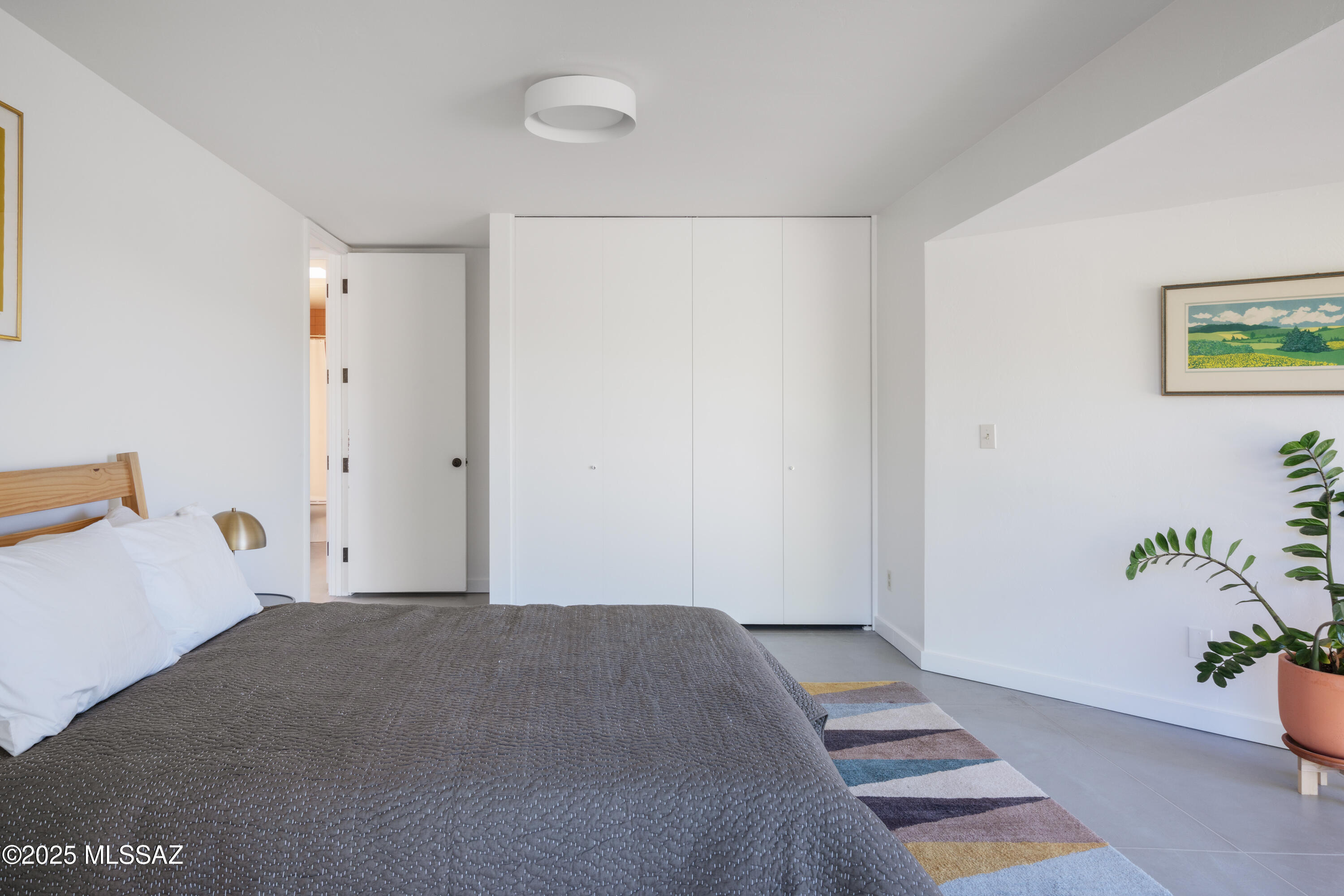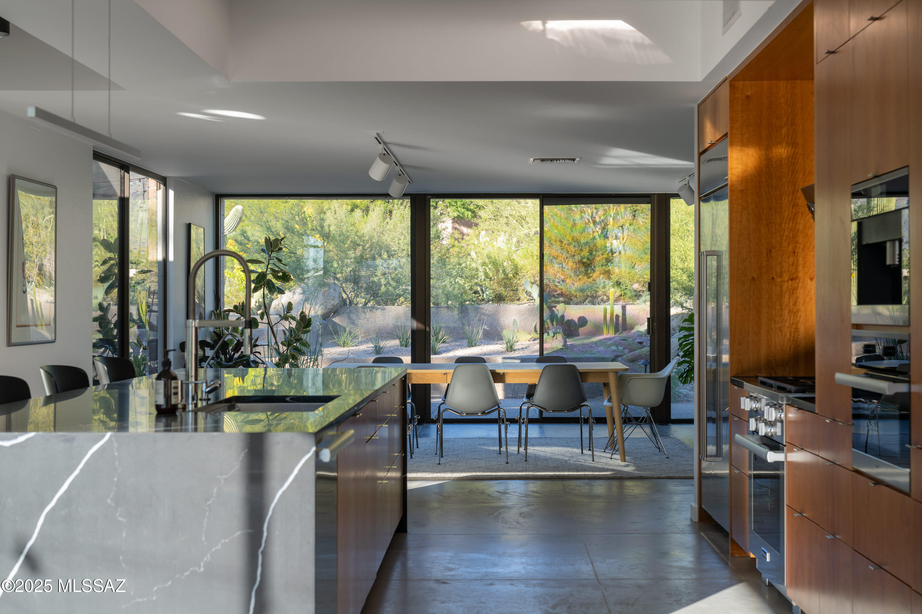 Tucked into the desert on a quiet side street off Campbell Avenue, the Module House by architect Robert Swaim sits on 2.2 acres in the Catalina Foothills. It is a rare Limited Edition Series residence, the only realized example of Swaim's modular concept, with sweeping mountain, city, & sunset views. The home was featured in Sunset magazine; the original owner served as Vice President & Editor at Sunset at the time. An honest material palette was carefully carried throughout: concrete, masonry, and glass, with a clear expression of structure. A central spine organizes volume and movement, while vaulted ceilings and expansive walls of glass connect the interior to patios, pool, and desert. The boundary between inside and out is continuous. Floors, framed views, & walls extend out into the landscape. The landscape reciprocates as shadows and reflections, the desert beyond is drawn into the rooms. The open plan of public spaces brings in natural light throughout the day and supports easy living between indoors and out.