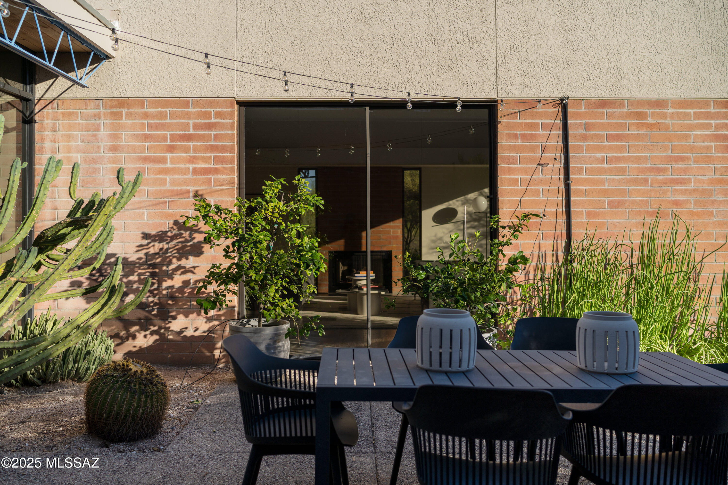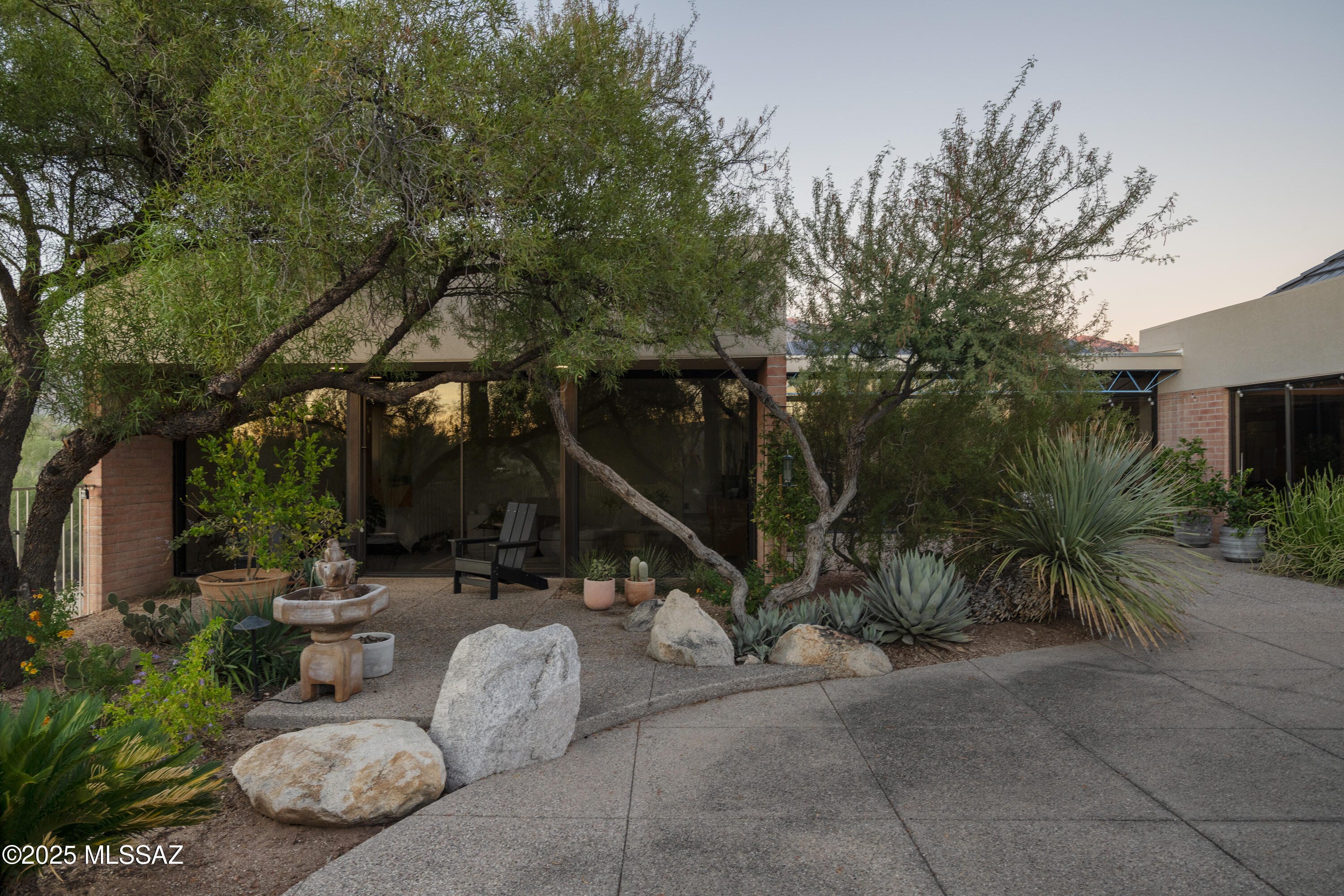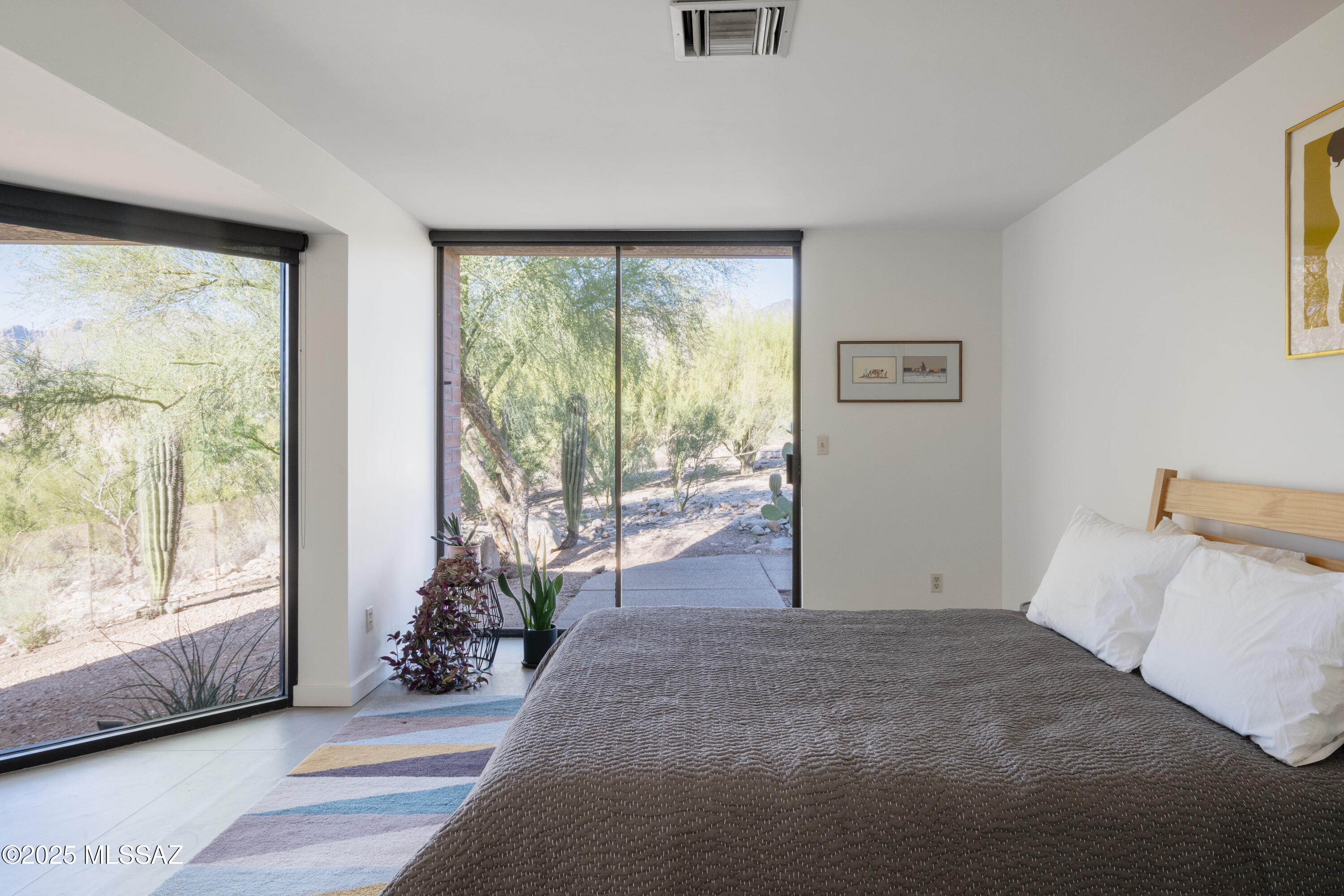 This exceptional home offers 3 bedrooms and 2.5 baths, living and sitting rooms, dining, owned solar, and a 2-car garage. The private main suite includes an additional sitting area, walk-in closet, a generous bath, and direct access to the pool patio for evening swims. Recent improvements include central HVAC, a tankless water heater, a new roof coating, a new driveway, and updated hall bath and powder room. See the improvements sheet for the full list. This is a rare opportunity to live in an architecturally significant gem, well situated in the Catalina Foothills. The sale of this property also includes an adjacent vacant lot. Please note, this property is not located on the loud + busy Campbell Avenue.