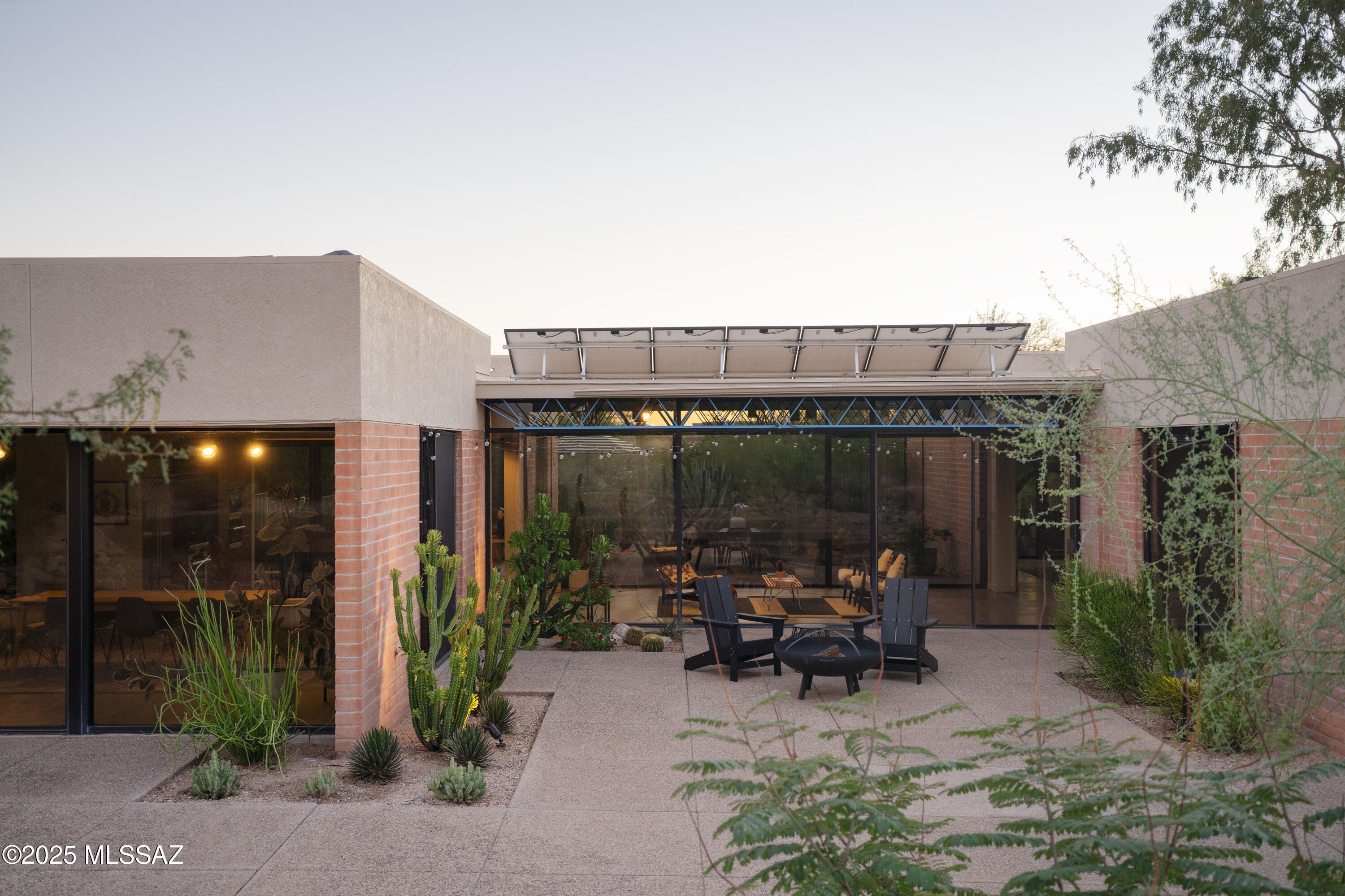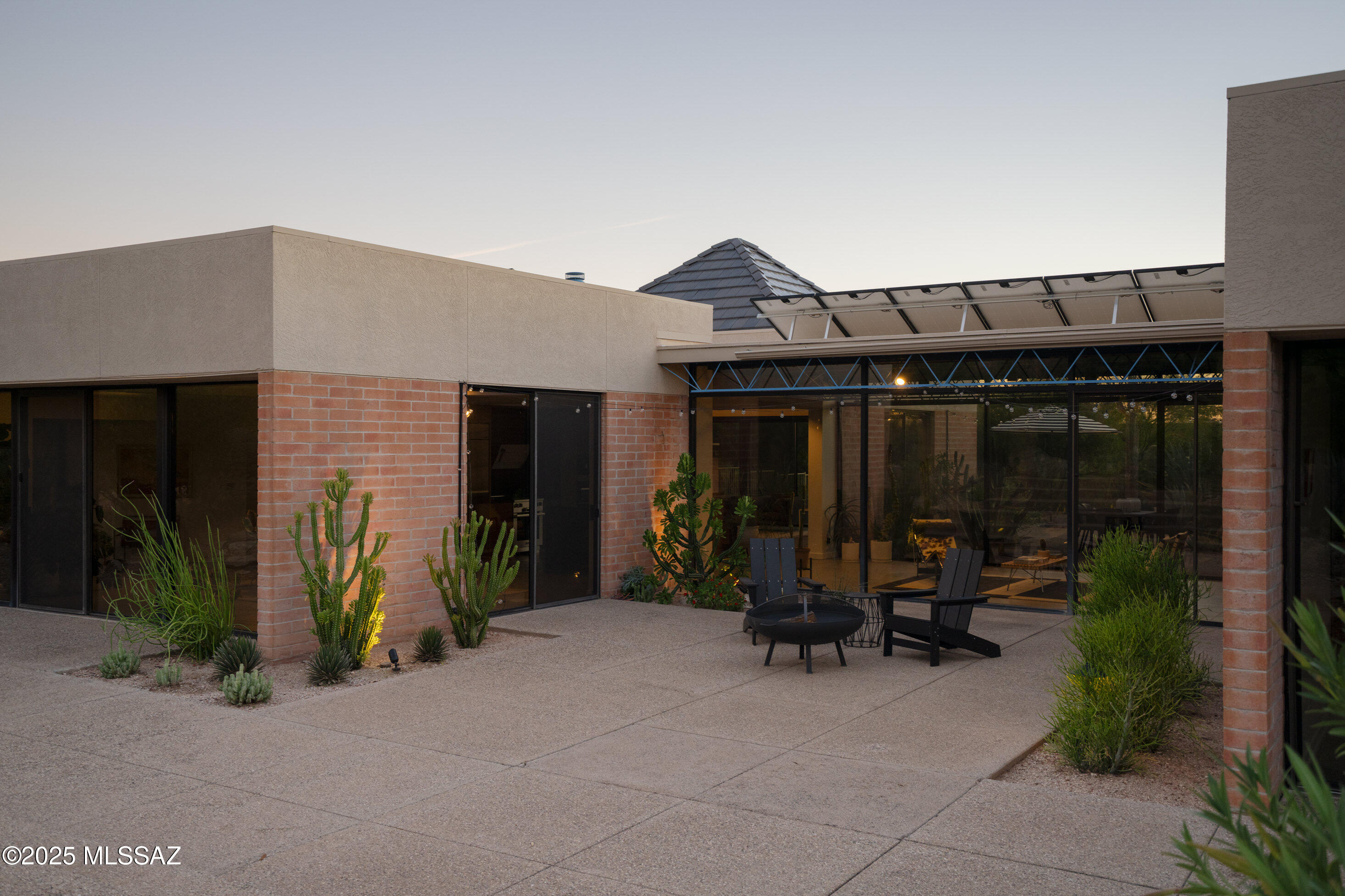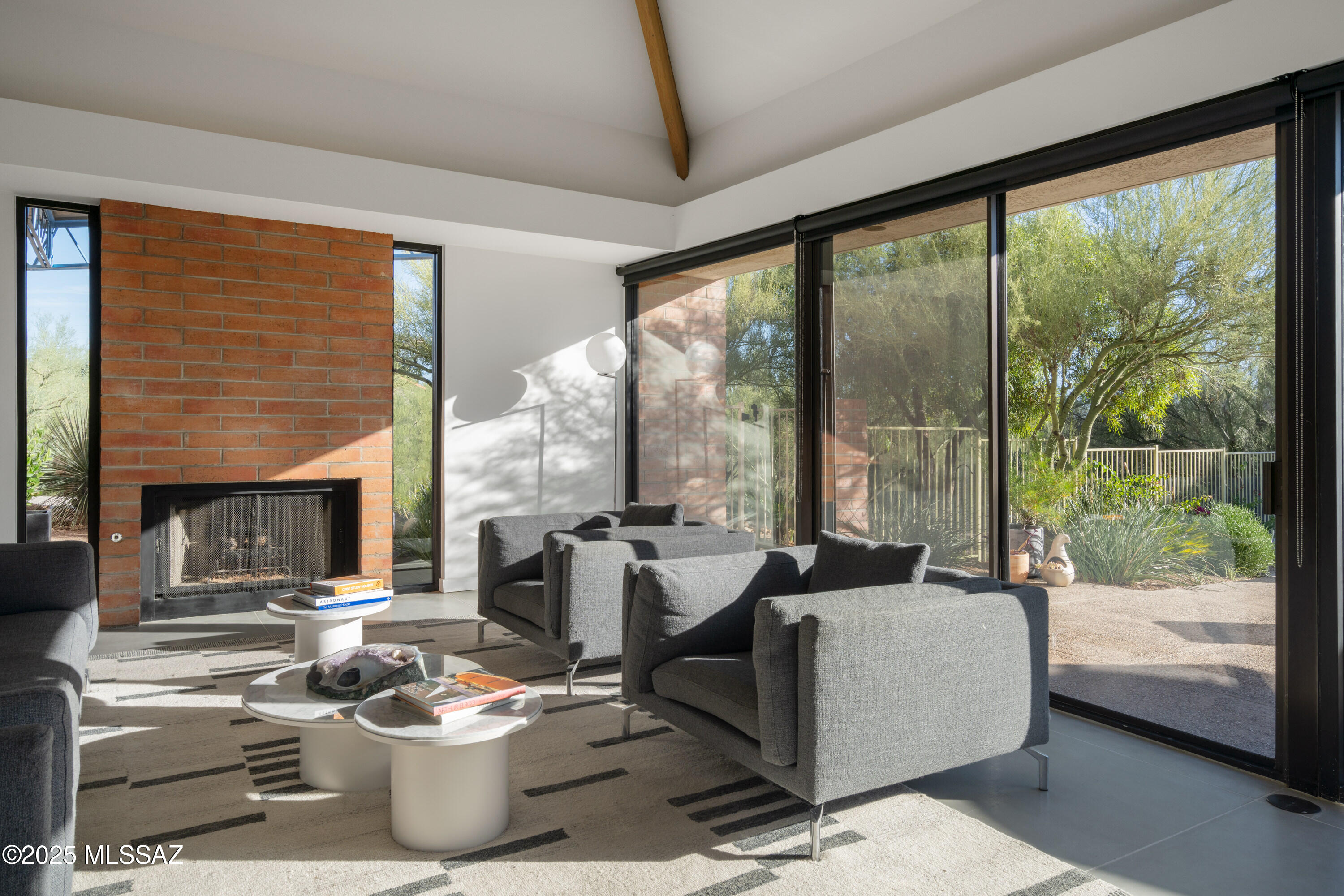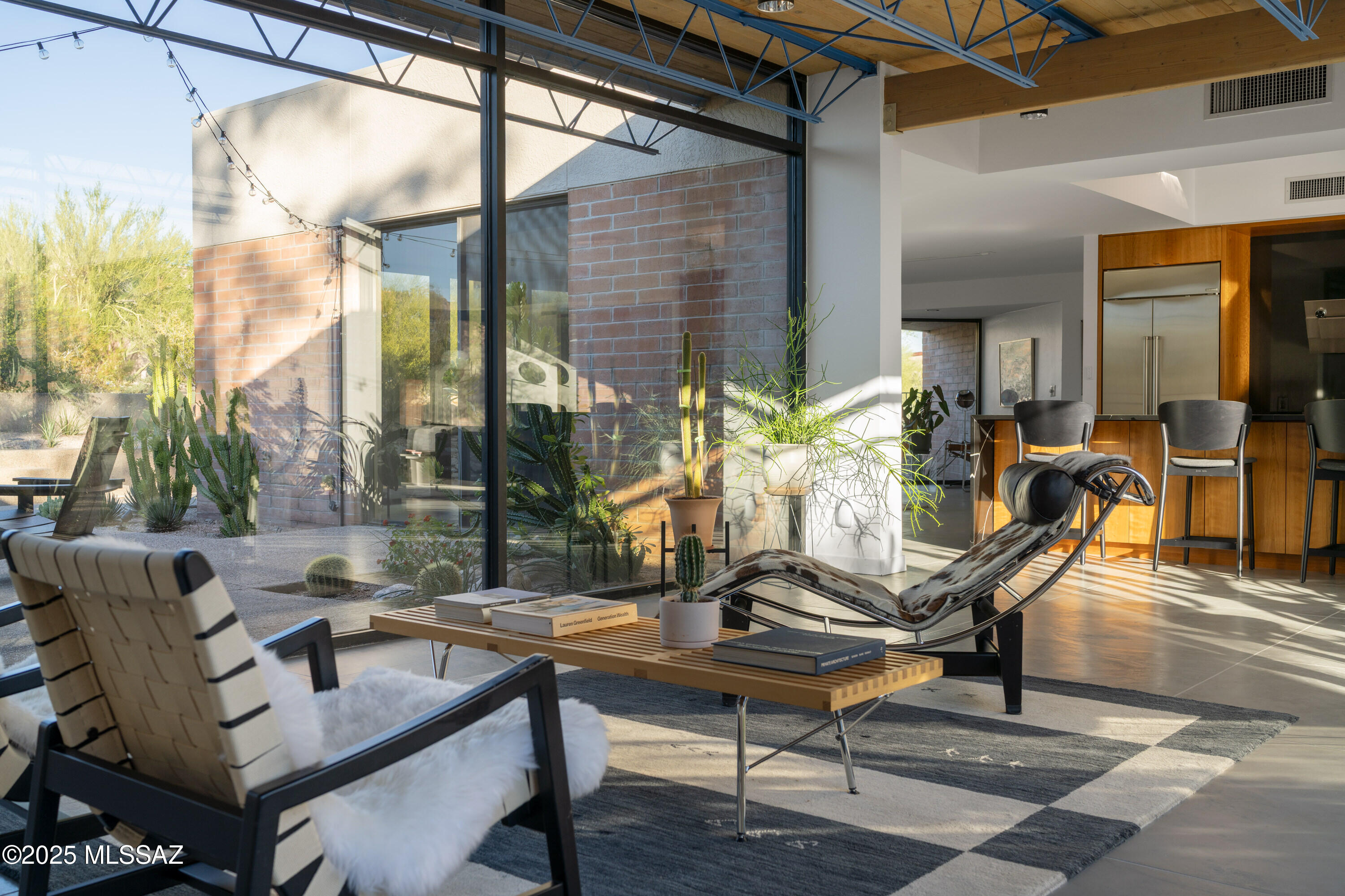 Tucked into the desert on a quiet side street off Campbell Avenue, the Module House by architect Robert Swaim sits on 2.2 acres in the Catalina Foothills. It is a rare Limited Edition Series residence, the only realized example of Swaim's modular concept, with sweeping mountain, city, & sunset views. The home was featured in Sunset magazine; the original owner served as Vice President & Editor at Sunset at the time. An honest material palette was carefully carried throughout: concrete, masonry, and glass, with a clear expression of structure. A central spine organizes volume and movement, while vaulted ceilings and expansive walls of glass connect the interior to patios, pool, and desert. The boundary between inside and out is continuous.