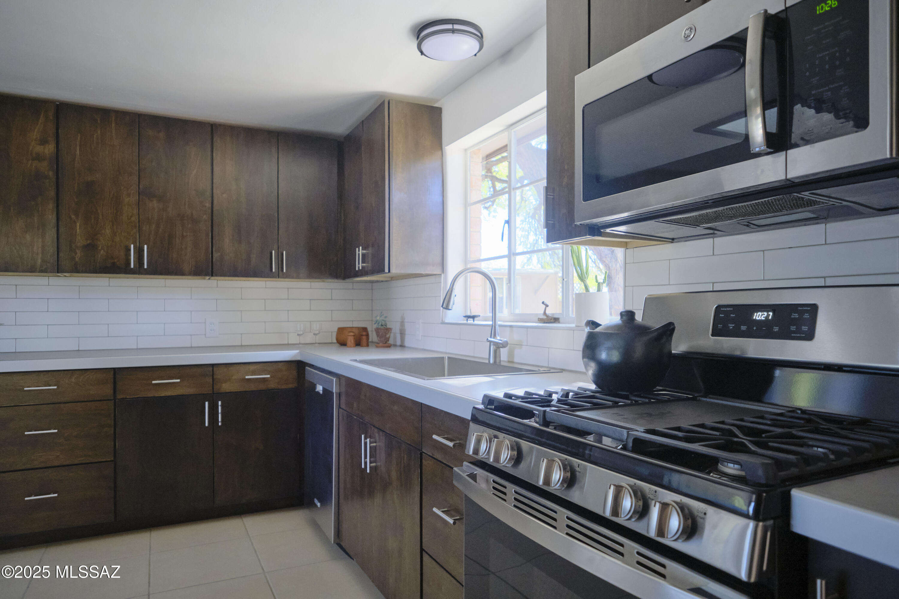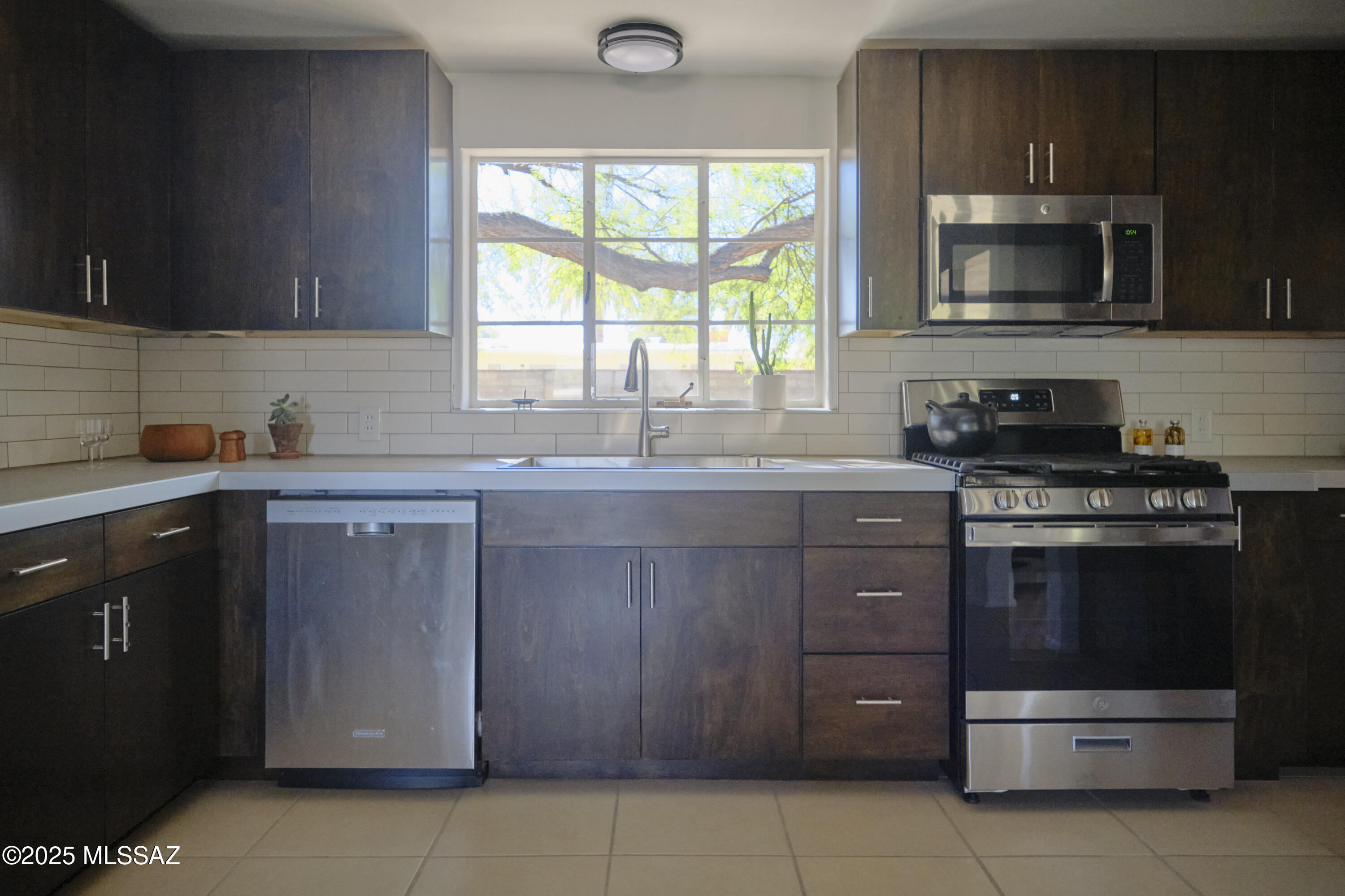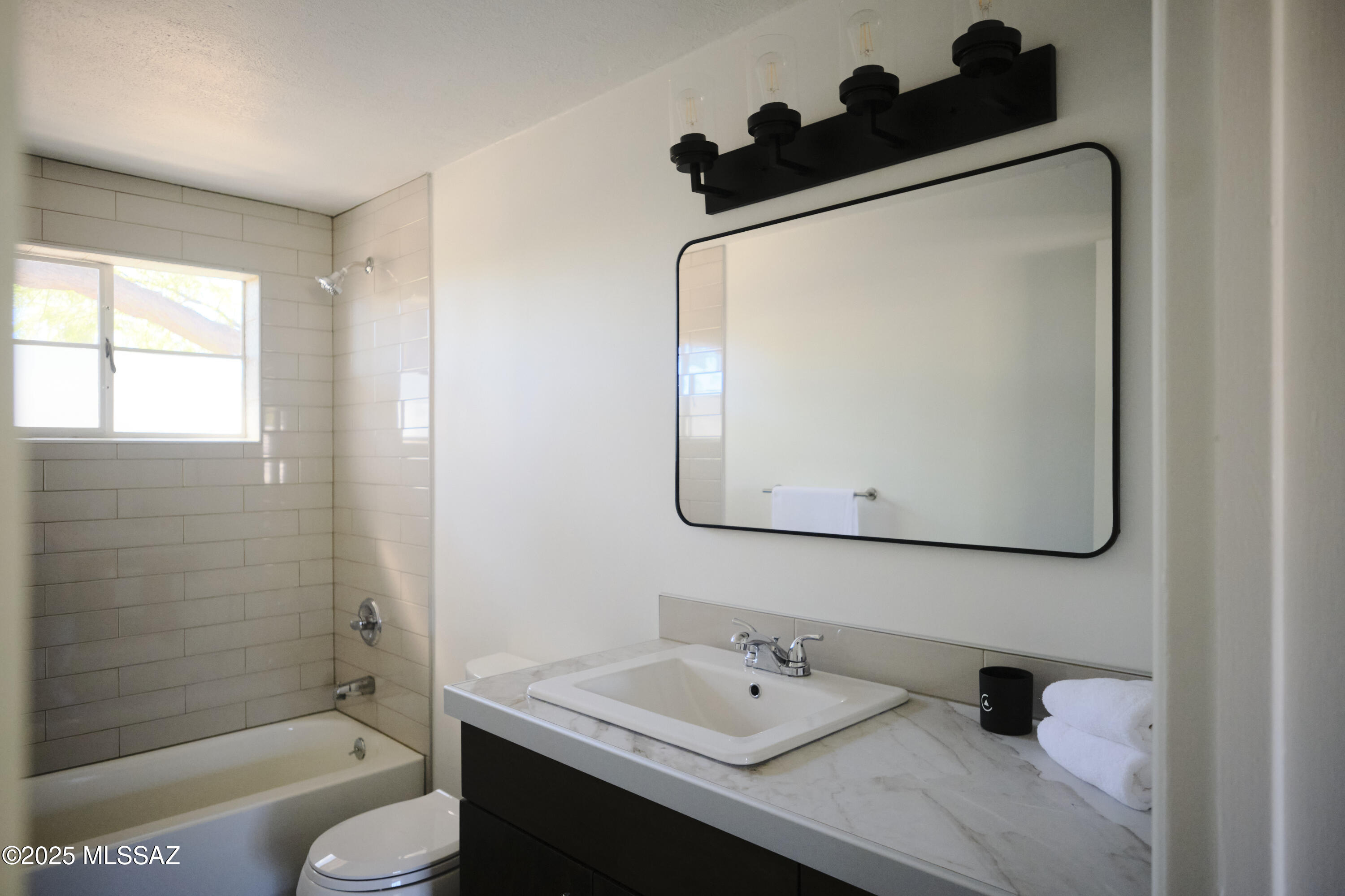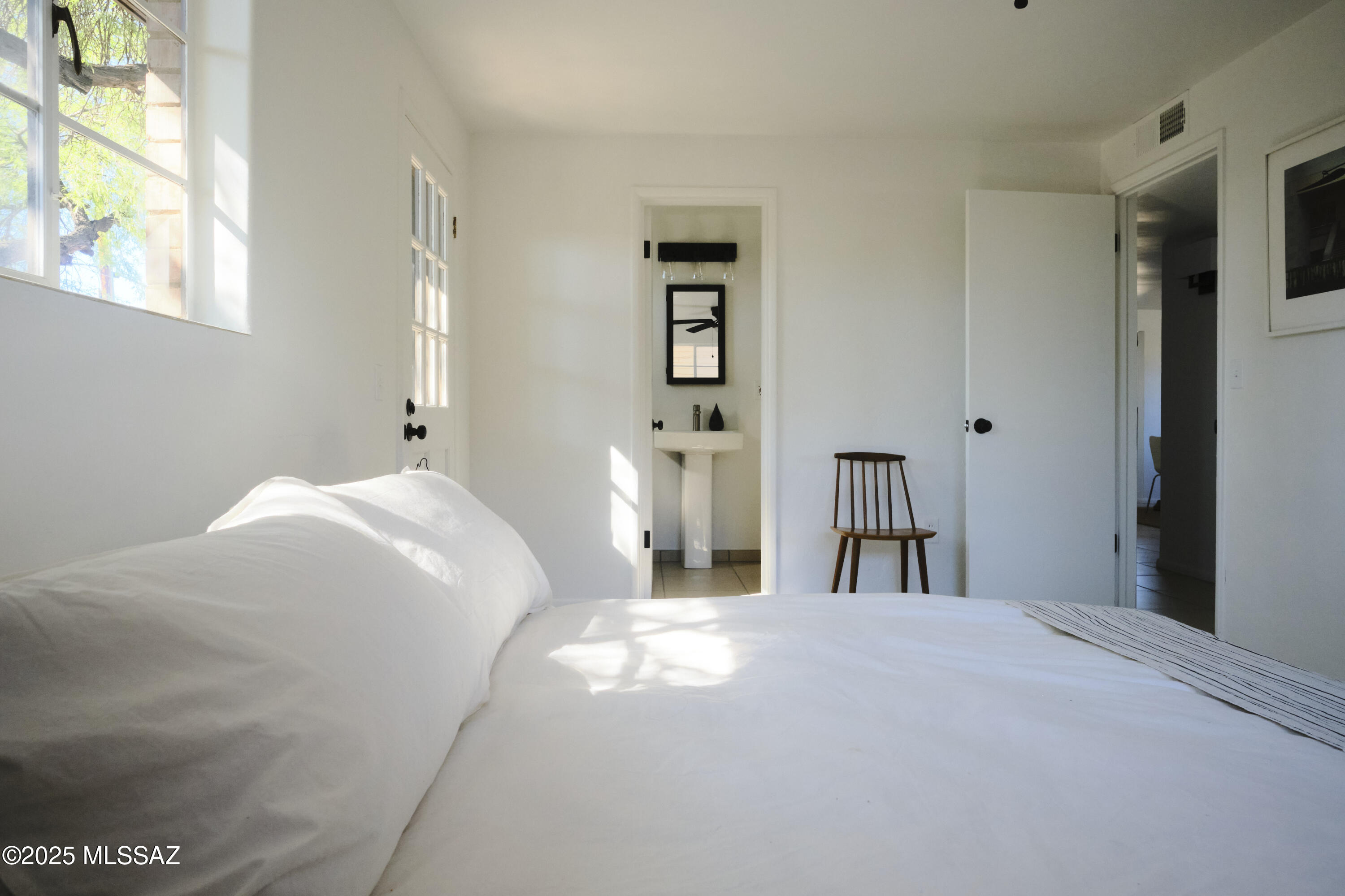 Situated on a generous central Tucson lot, this classic single-level ranch balances tasteful updates with easy everyday living. An efficient 3 bedroom, 2 bath plan opens to light-filled living and dining areas, with an updated kitchen at the heart of the home. The private bedroom wing includes a comfortable main suite and two secondary bedrooms that are flexible for guests, office, or studio. Outside, the roomy backyard invites your personal touch: gardens, a shade ramada, or expanded alfresco living. Mature trees cast afternoon shade & create a natural gathering spot for outdoor dining with friends & family. Minutes to midtown staples, the University, and neighborhood parks, the location makes day-to-day logistics simple while keeping you close to Tucson's restaurants and shopping.