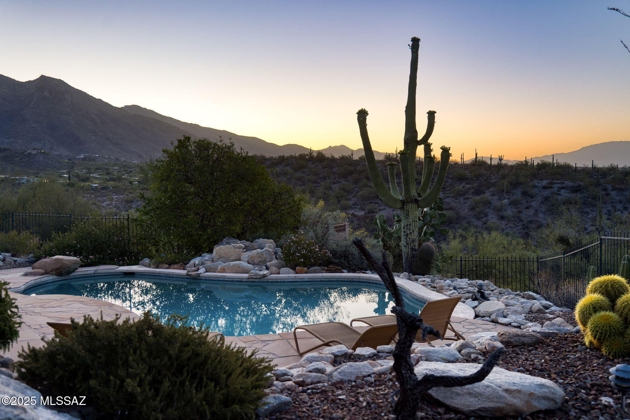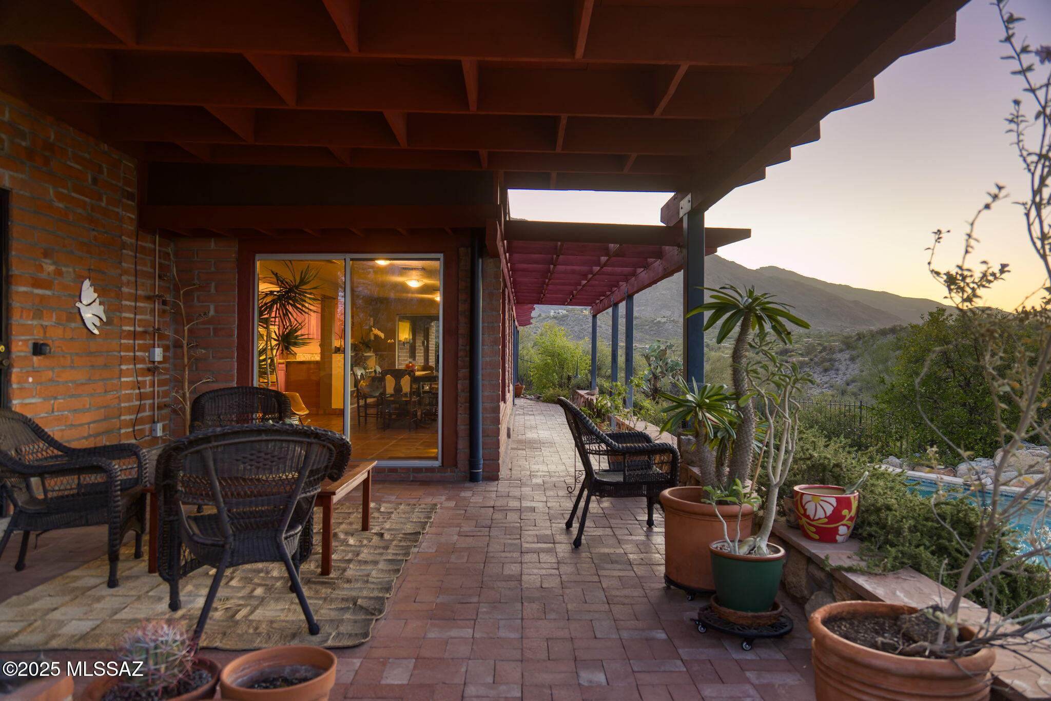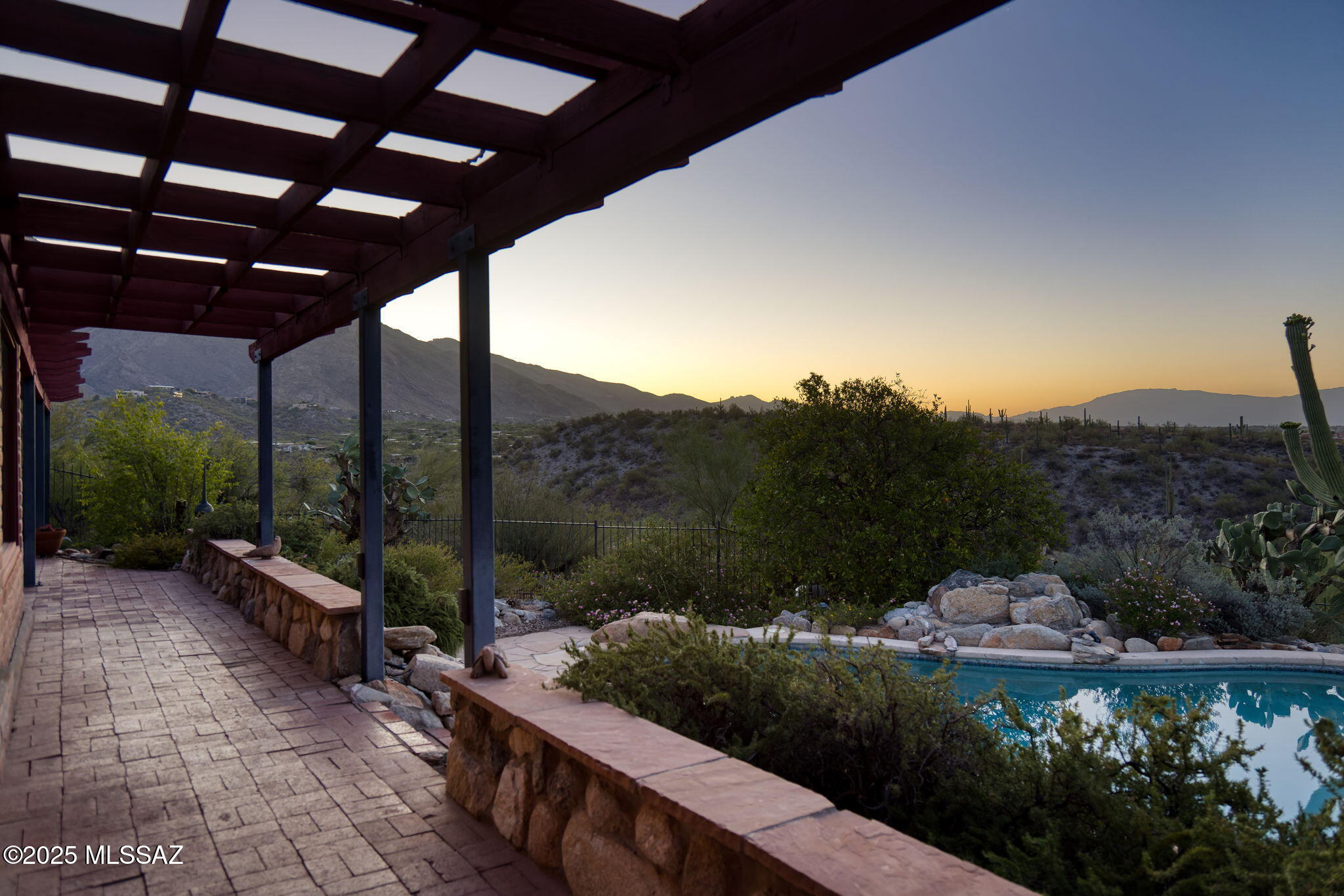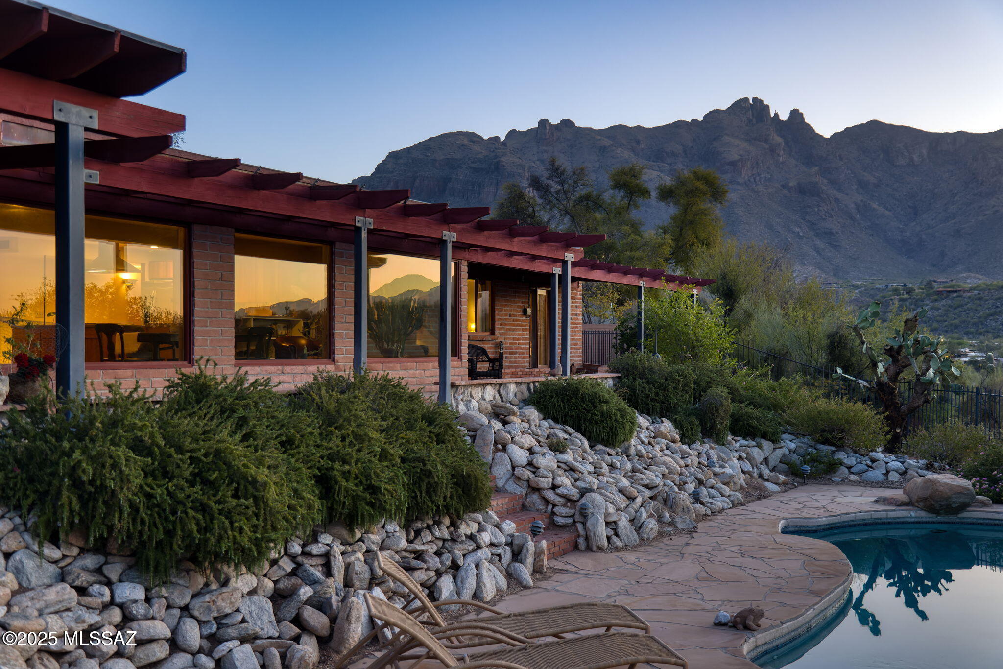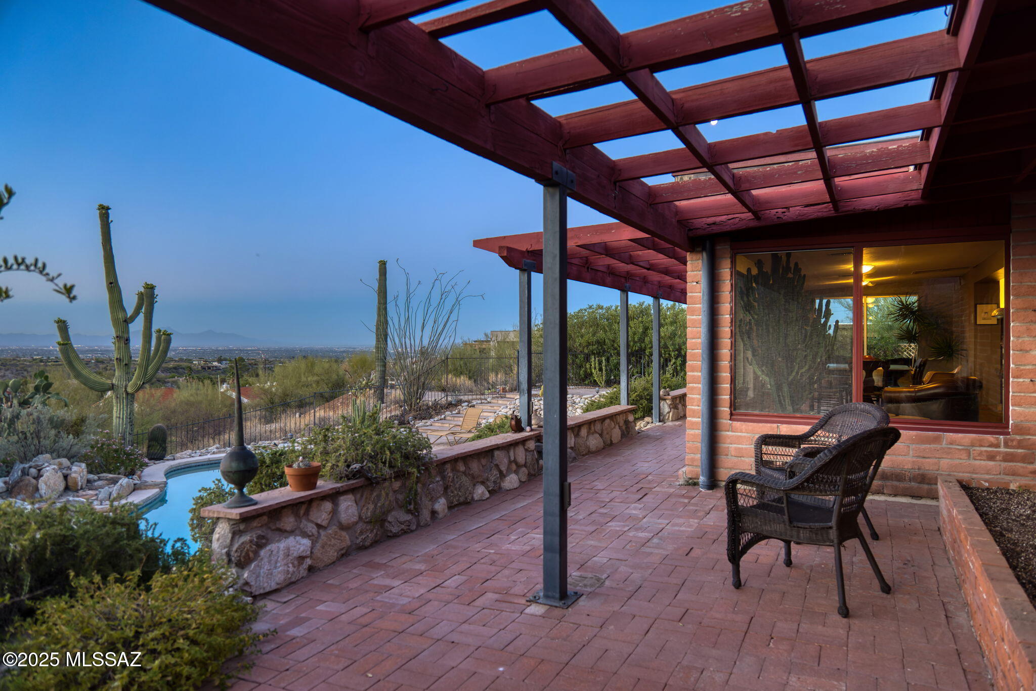 Set high on an elevated lot within the Catalina Foothills, this 1974 burnt adobe home offers sweeping 180 degree views that extend from the rugged peaks of the Catalinas to the glow of the city lights below. Tucked at the end of a quiet cul-de-sac, this property feels both grounded and expansive - its architecture rooted in the desert, its spirit shaped by decades of memory, ritual, and the cadence of Sonoran life. Once inside, generous natural light and thoughtfully framed views define the living spaces - whether it's the mountains illuminated by afternoon sun from the formal living room, or the mesquite filtered light that drifts into the office each day. The open kitchen connects seamlessly to the family room and sunroom, inviting conversation across spaces.