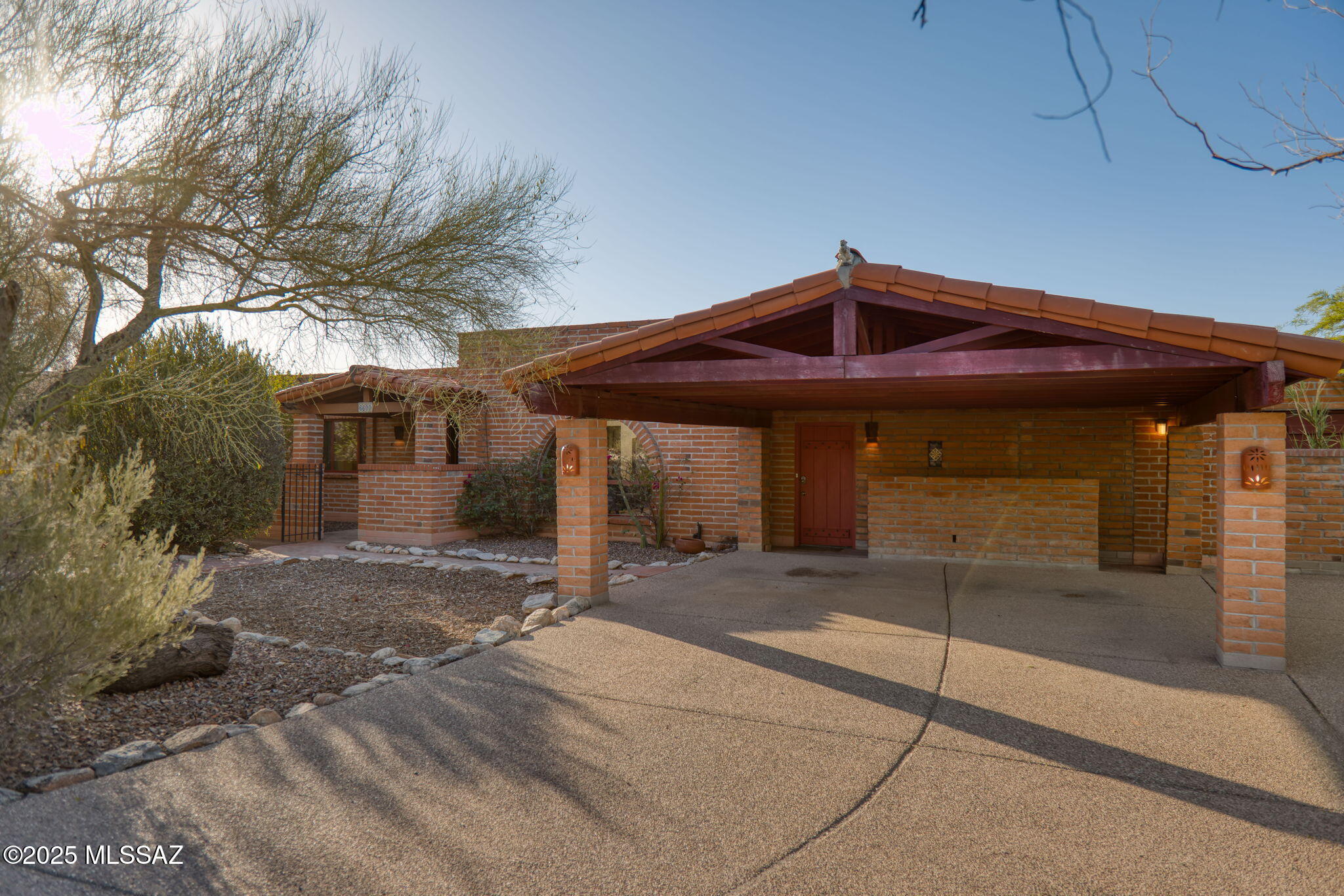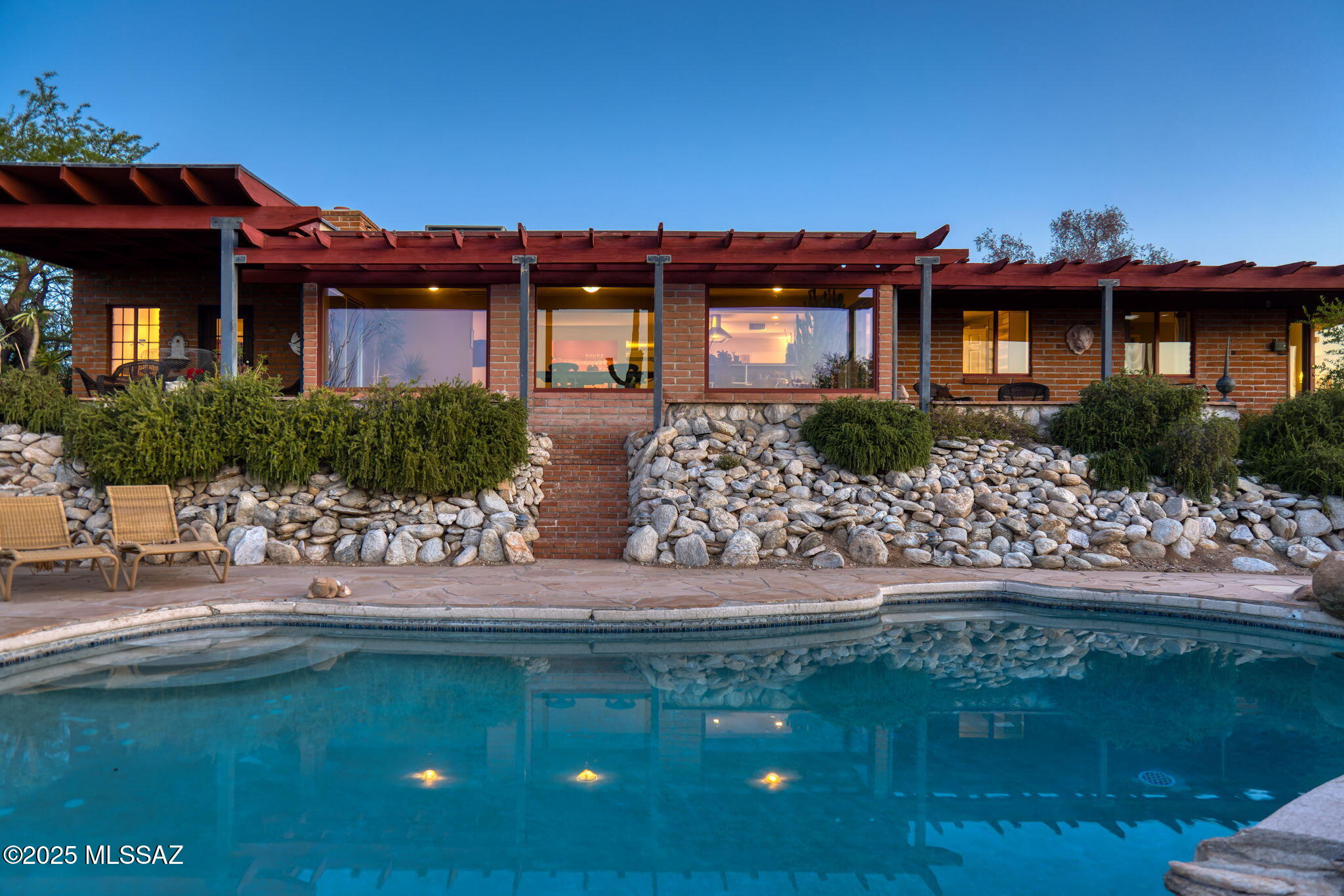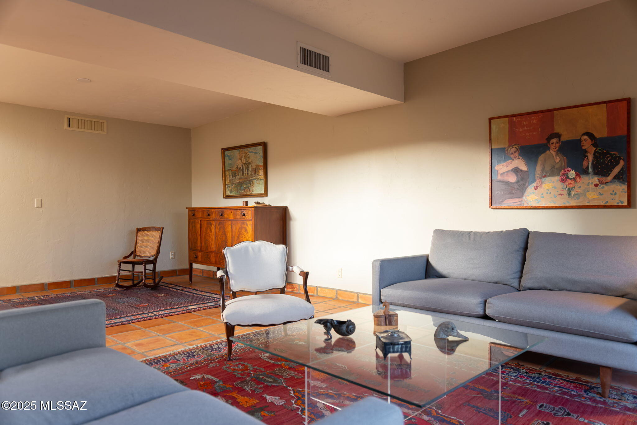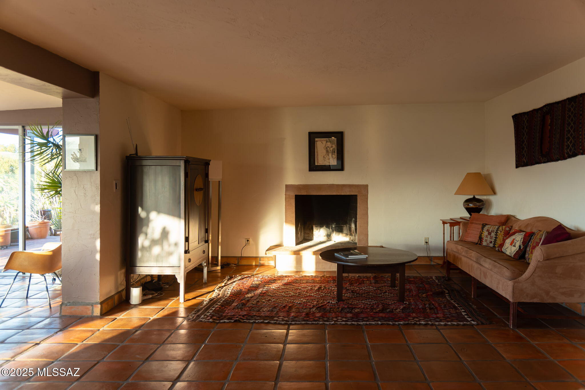 Set high on an elevated lot within the Catalina Foothills, this 1974 burnt adobe home offers sweeping 180 degree views that extend from the rugged peaks of the Catalinas to the glow of the city lights below. Tucked at the end of a quiet cul-de-sac, this property feels both grounded and expansive - its architecture rooted in the desert, its spirit shaped by decades of memory, ritual, and the cadence of Sonoran life. Once inside, generous natural light and thoughtfully framed views define the living spaces - whether it's the mountains illuminated by afternoon sun from the formal living room, or the mesquite filtered light that drifts into the office each day. The open kitchen connects seamlessly to the family room and sunroom, inviting conversation across spaces.