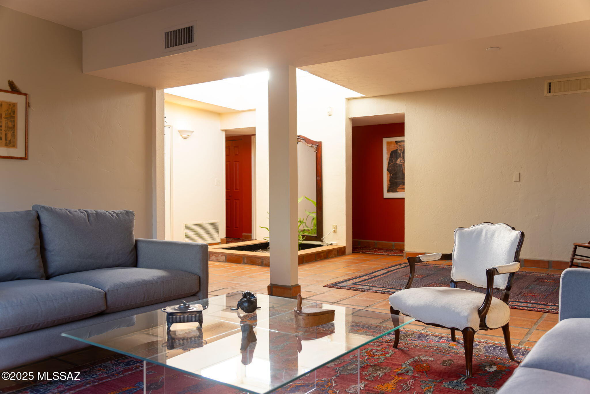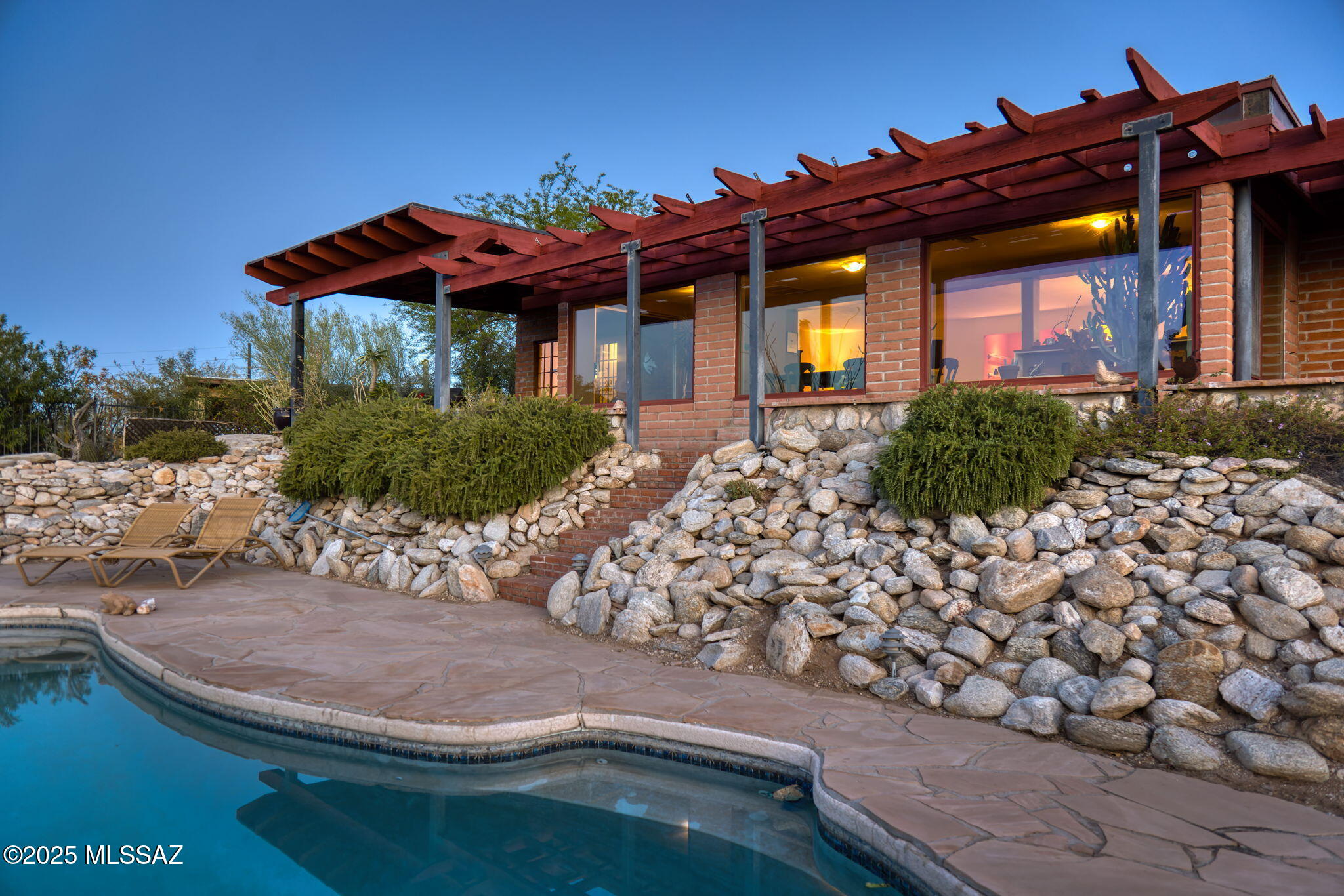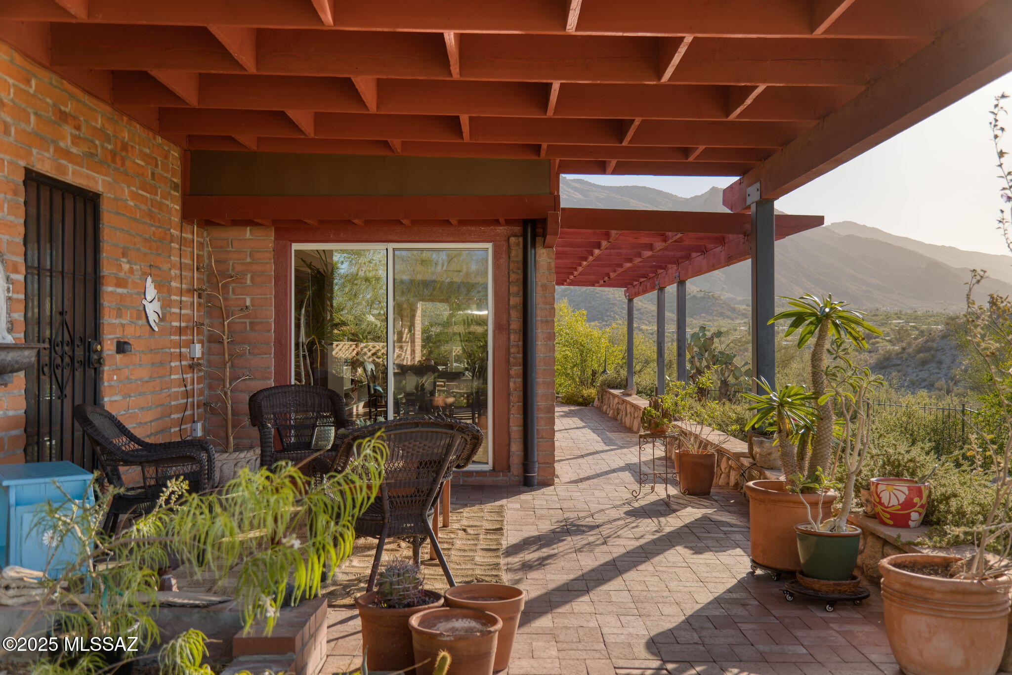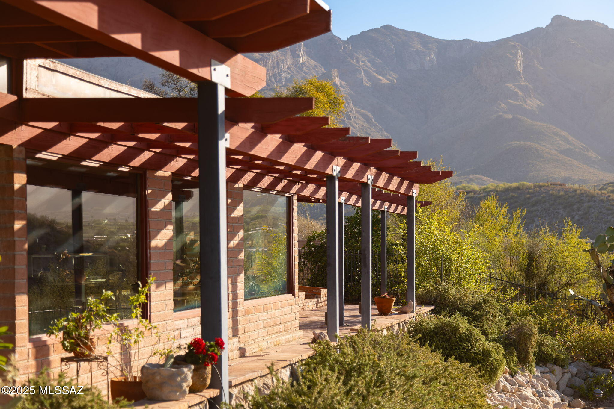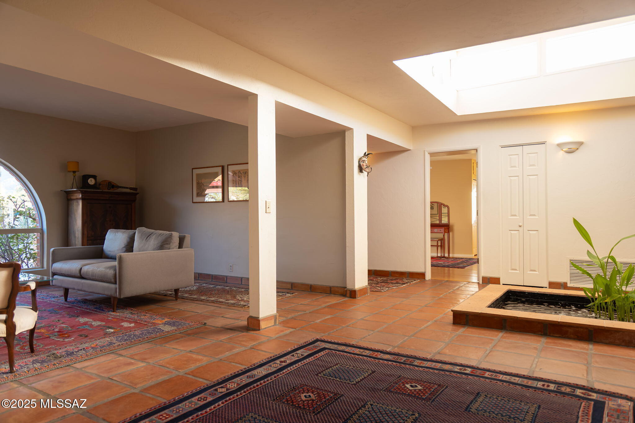 Set high on an elevated lot within the Catalina Foothills, this 1974 burnt adobe home offers sweeping 180 degree views that extend from the rugged peaks of the Catalinas to the glow of the city lights below. Tucked at the end of a quiet cul-de-sac, this property feels both grounded and expansive - its architecture rooted in the desert, its spirit shaped by decades of memory, ritual, and the cadence of Sonoran life. Once inside, generous natural light and thoughtfully framed views define the living spaces - whether it's the mountains illuminated by afternoon sun from the formal living room, or the mesquite filtered light that drifts into the office each day. The open kitchen connects seamlessly to the family room and sunroom, inviting conversation across spaces.