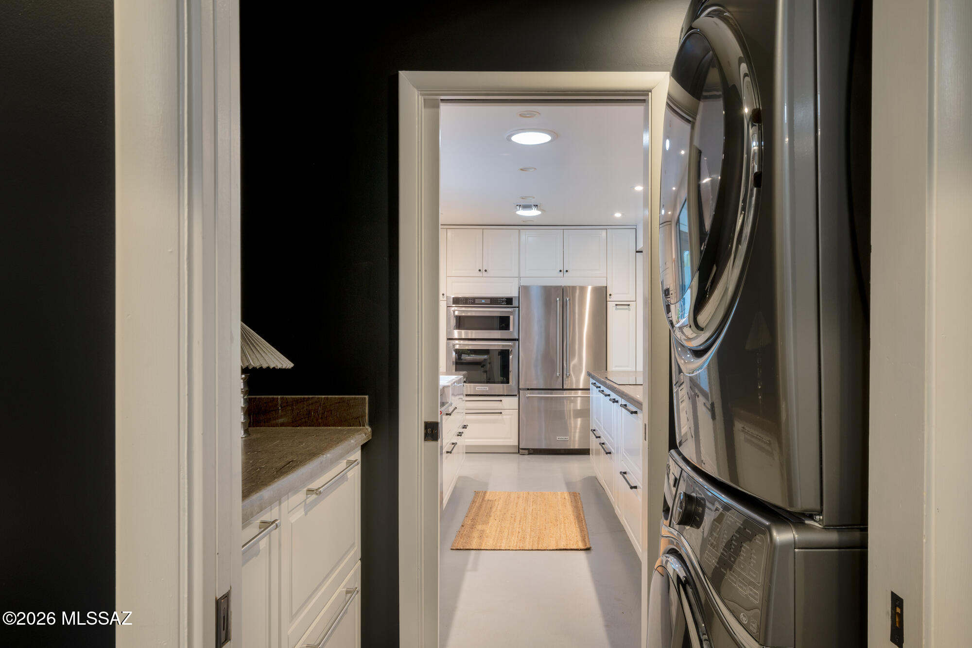 What sets this property apart is how it lives. The main residence offers a primary suite alongside generous living spaces, while an interior connection leads to a fully self-contained second residence--complete with its own kitchen, living area, two bedrooms, and private exterior access. It can function as a split floor plan, a guest house, multi-generational living, or income-producing rental, without compromising the integrity of the home. From the street, it reads as a single residence. Close to La Encantada, and Chuck Huckelberry Loop, a 50+ mile paved network ideal for biking, running and walking